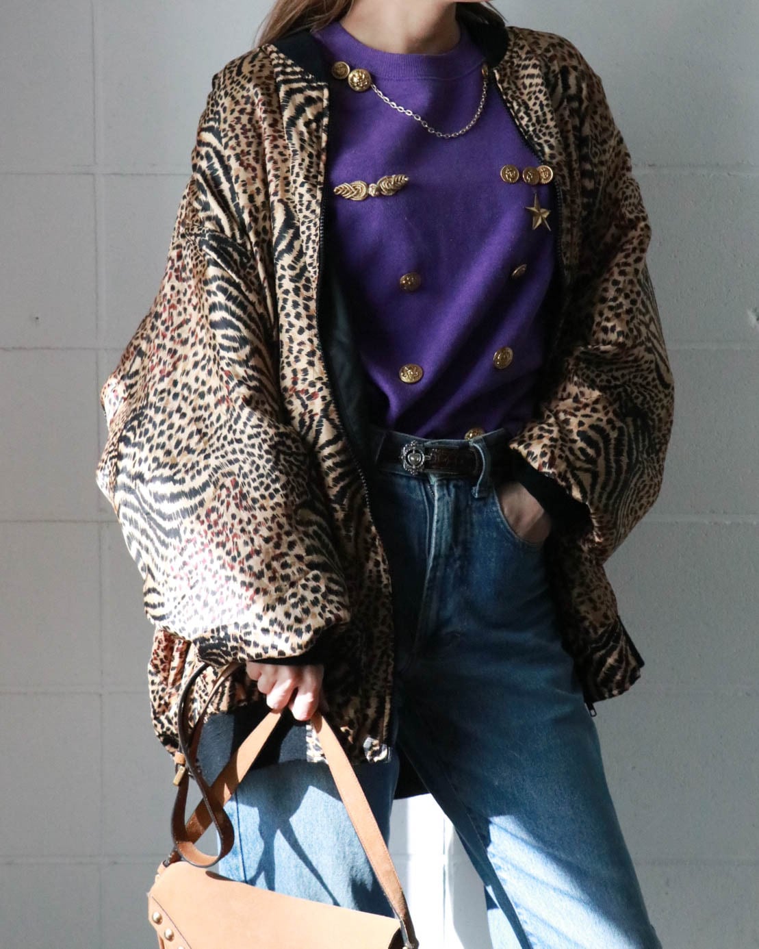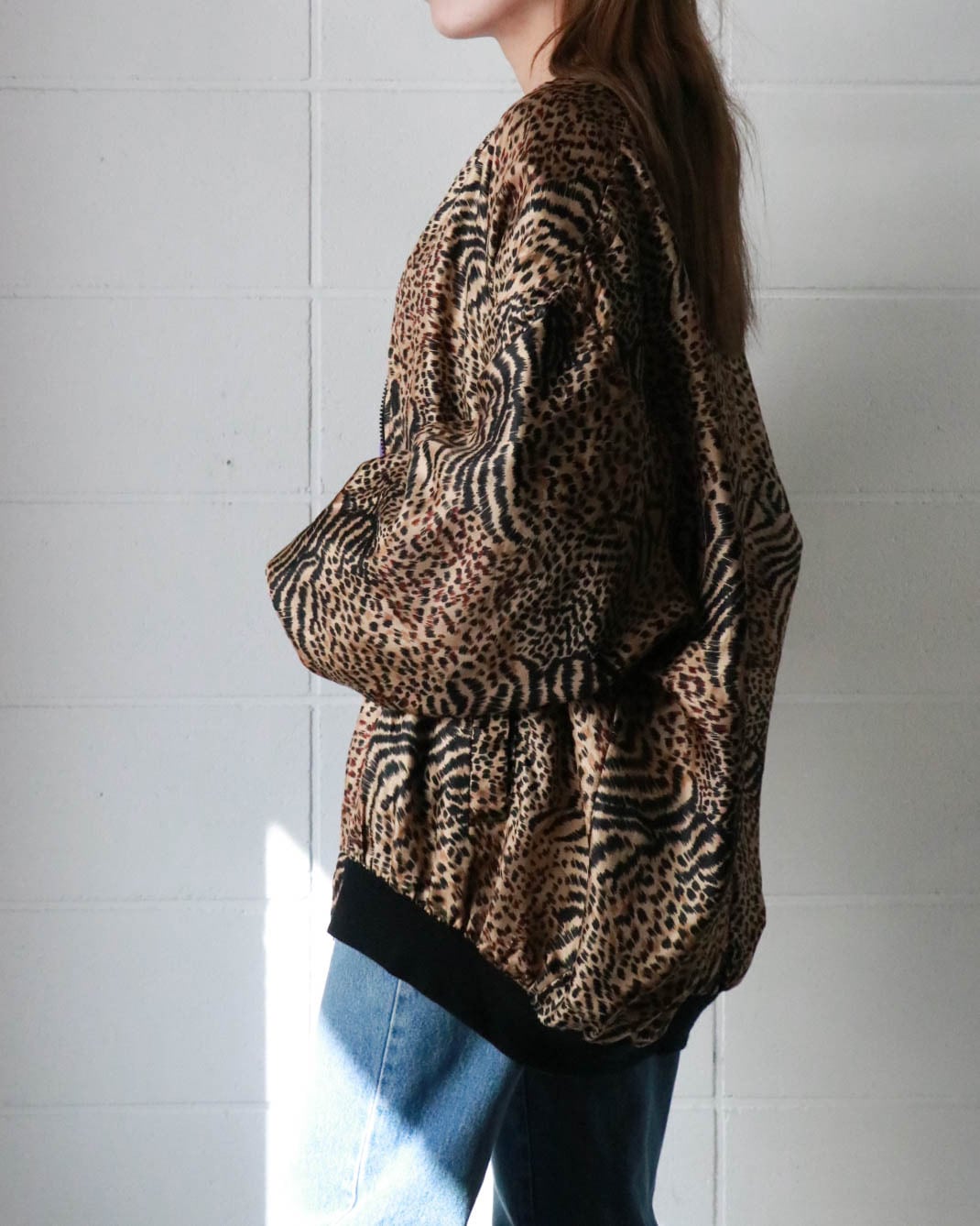 ボトムとのバランスが楽しめるオーバーサイズのレオパード柄ブルゾン。