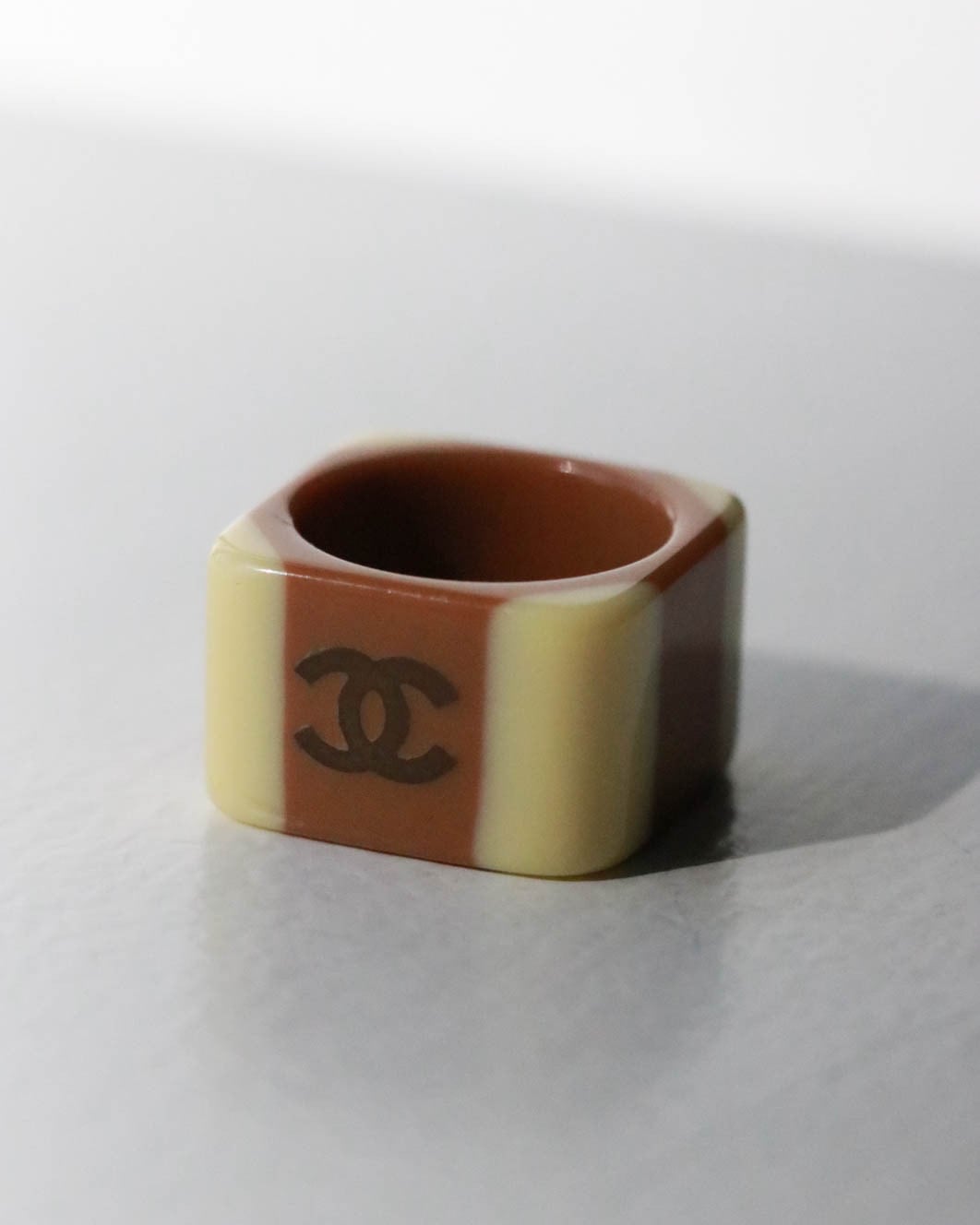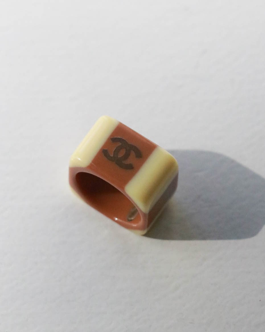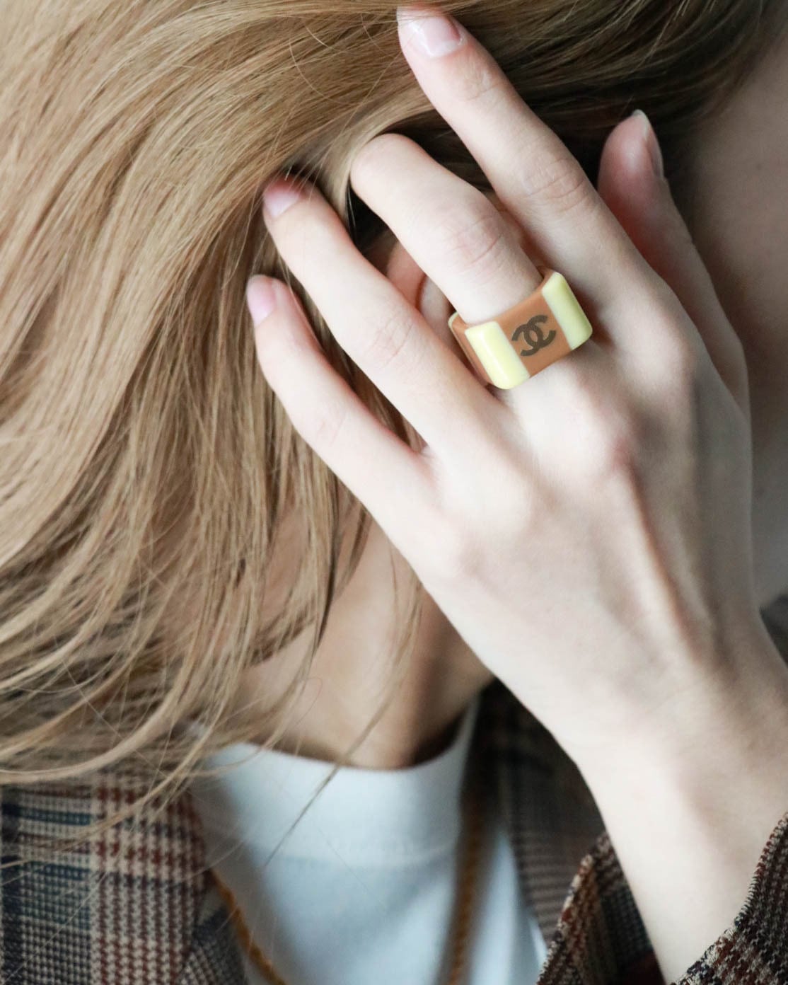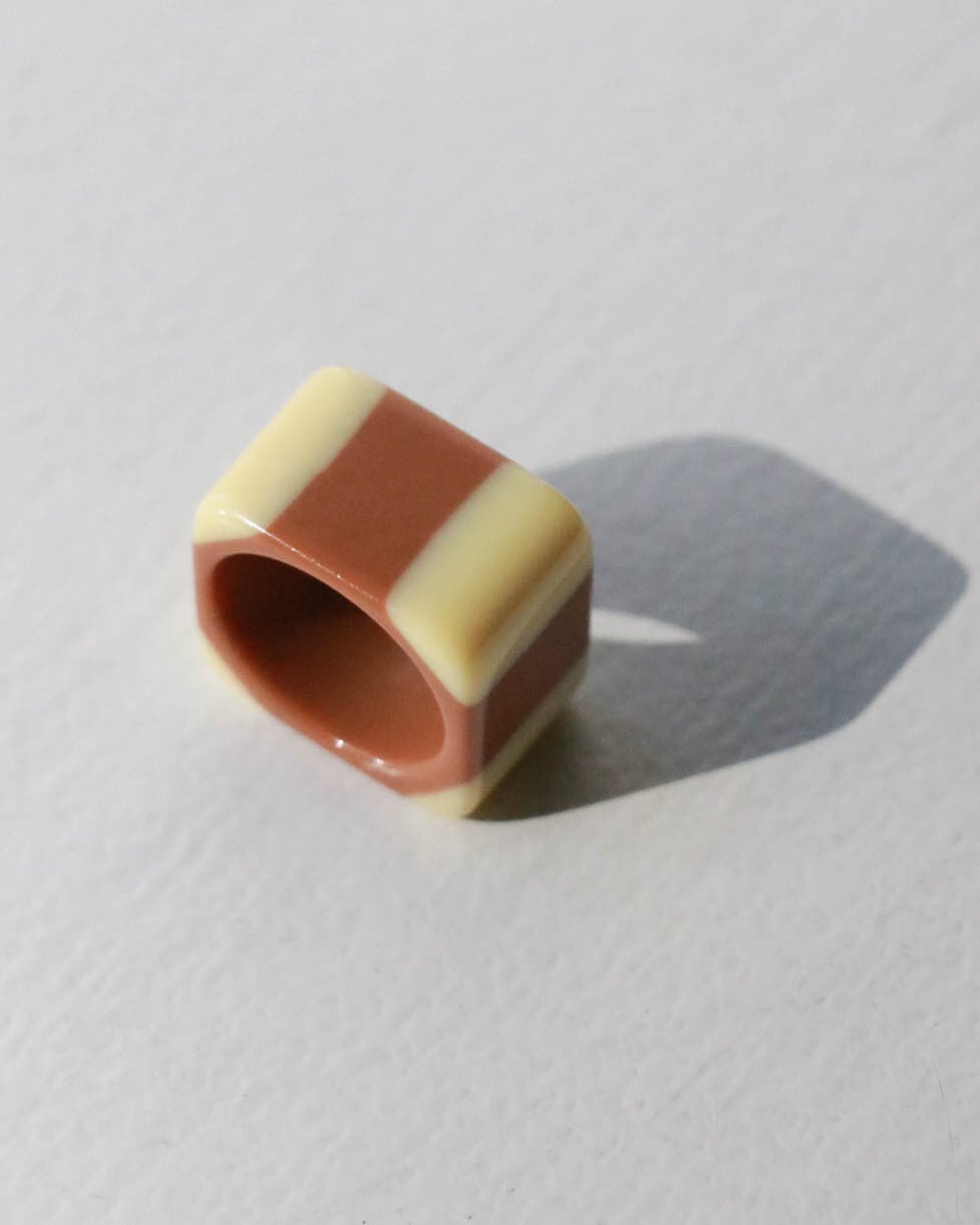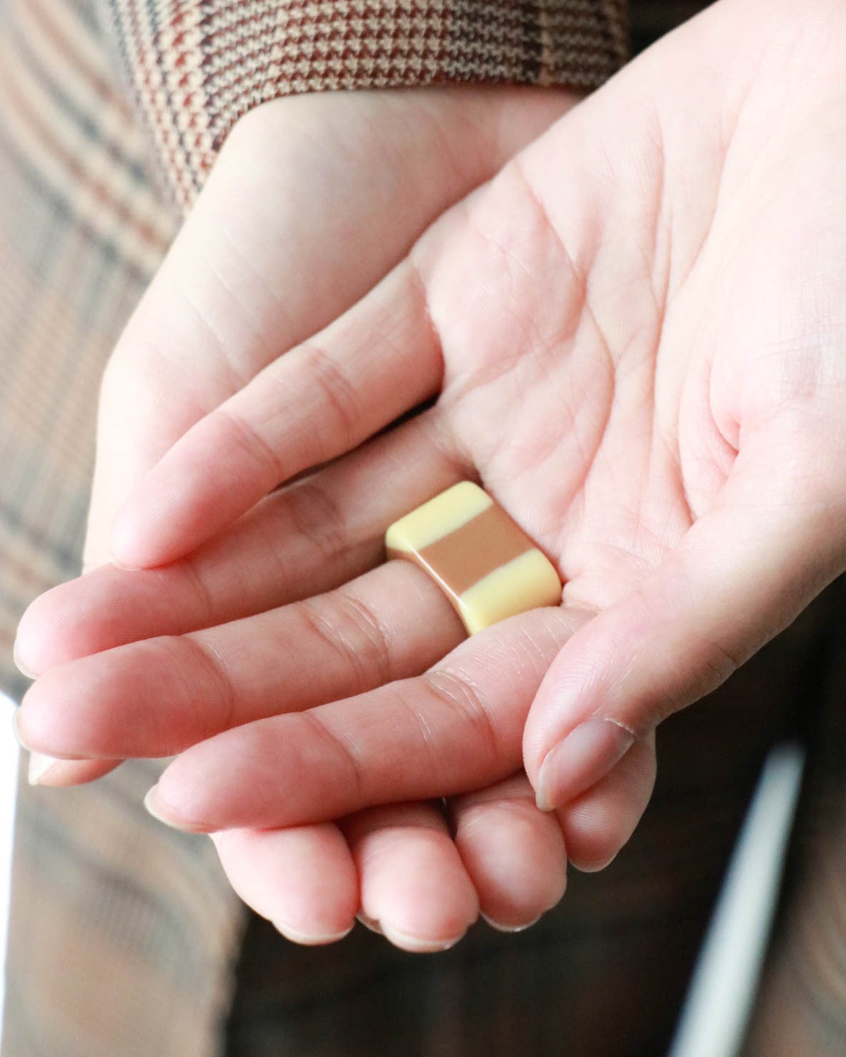 ころっとしたフォルムでとても可愛らしく、キャメル×ベージュの配色で、カジュアルにつけれるリングです。