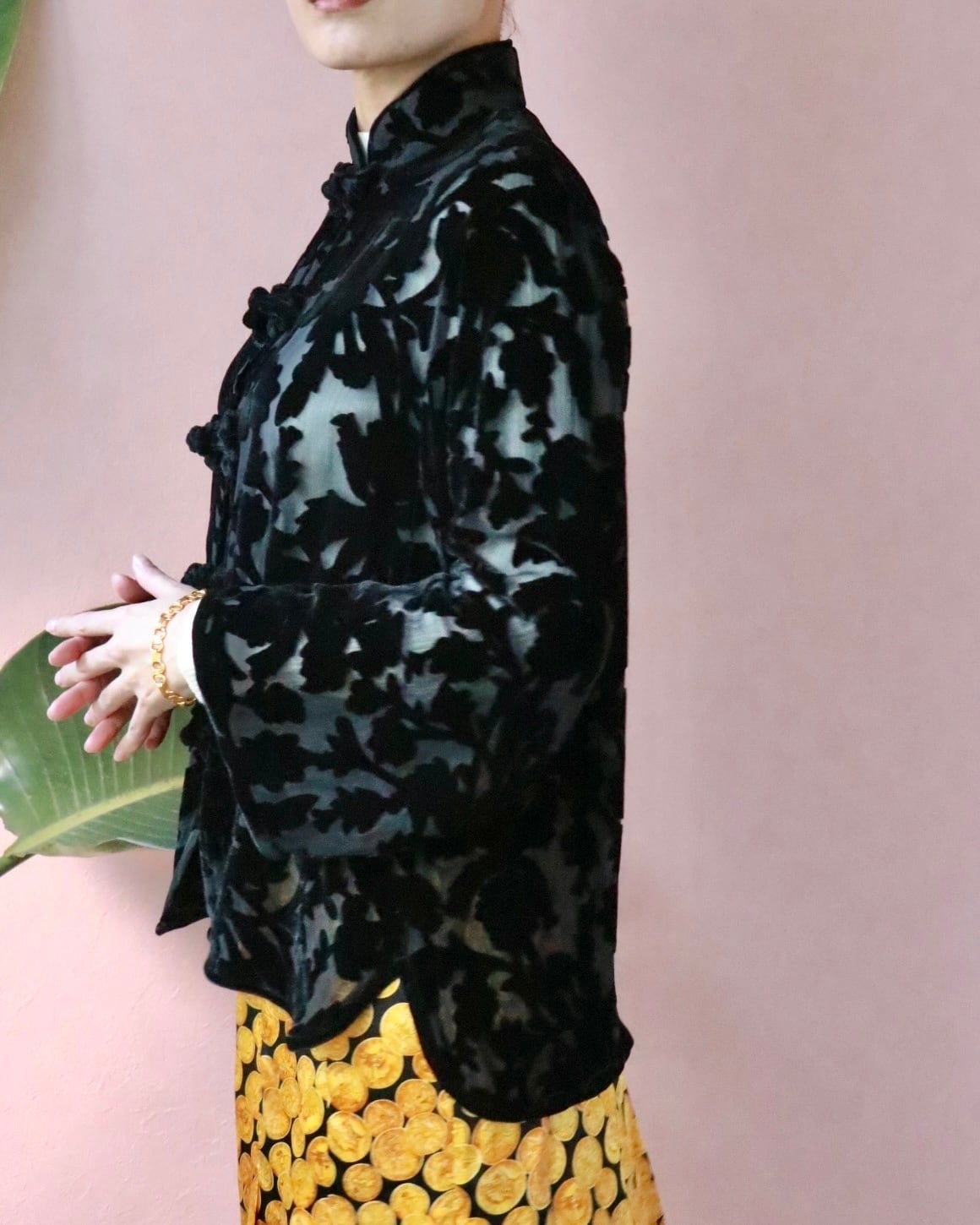 クラシカルなチャイナディテールを、透け感でモダンにアップデート。
