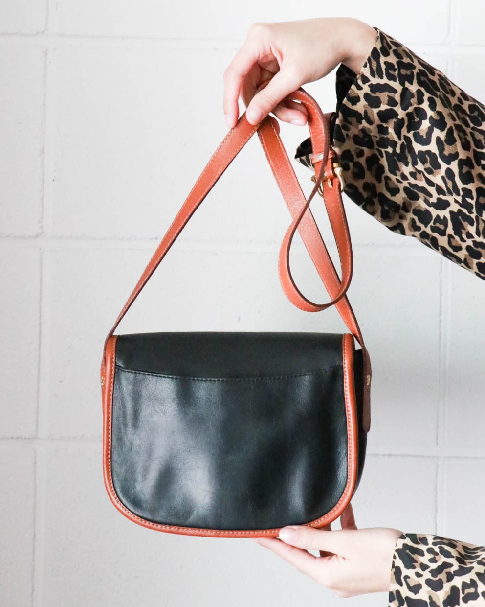 オールドセリーヌのブラックxブラウンのバイカラーバッグ。
