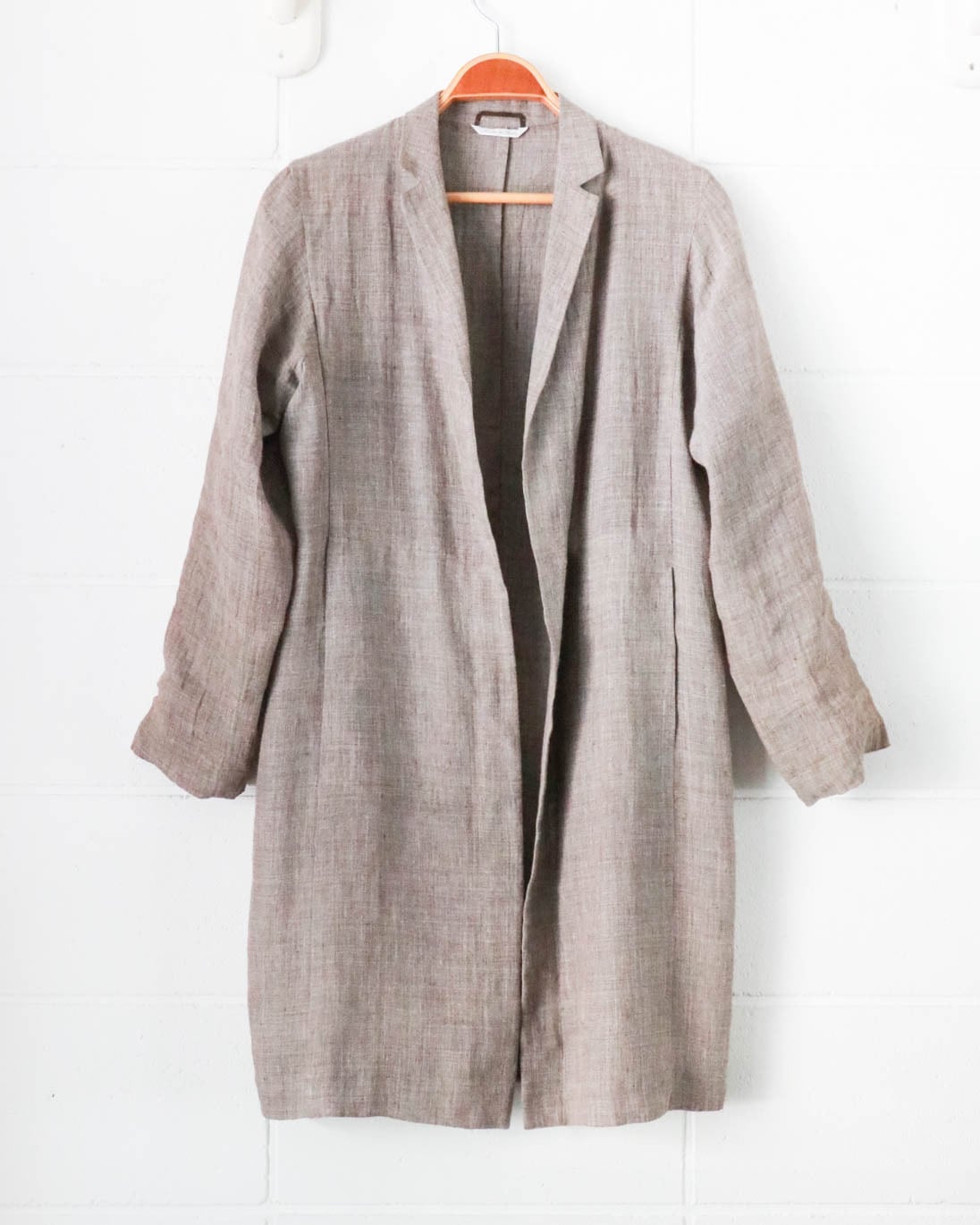 ゆとりのあるサイズ感がこなれた印象に。春夏の軽羽織として大活躍します。