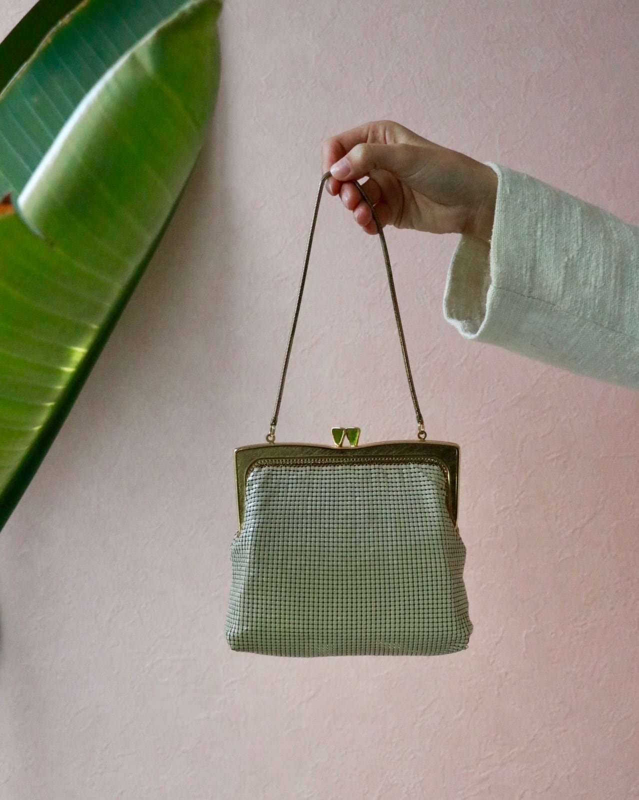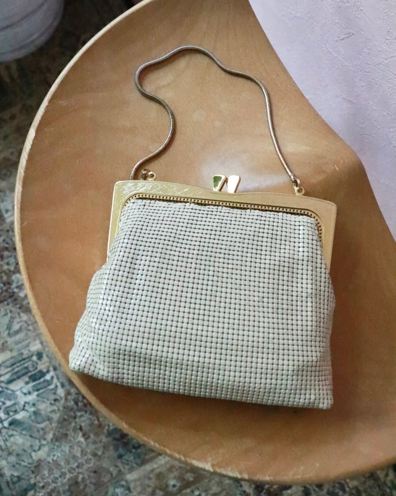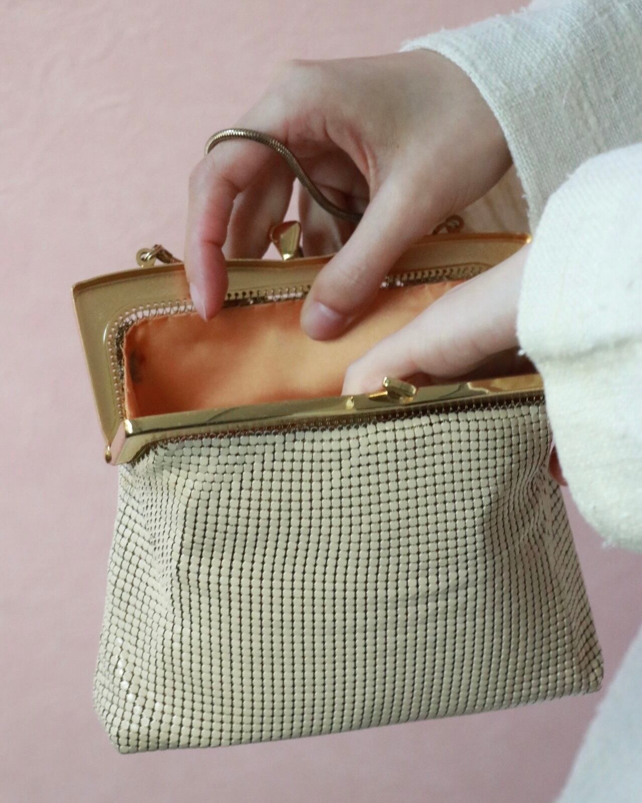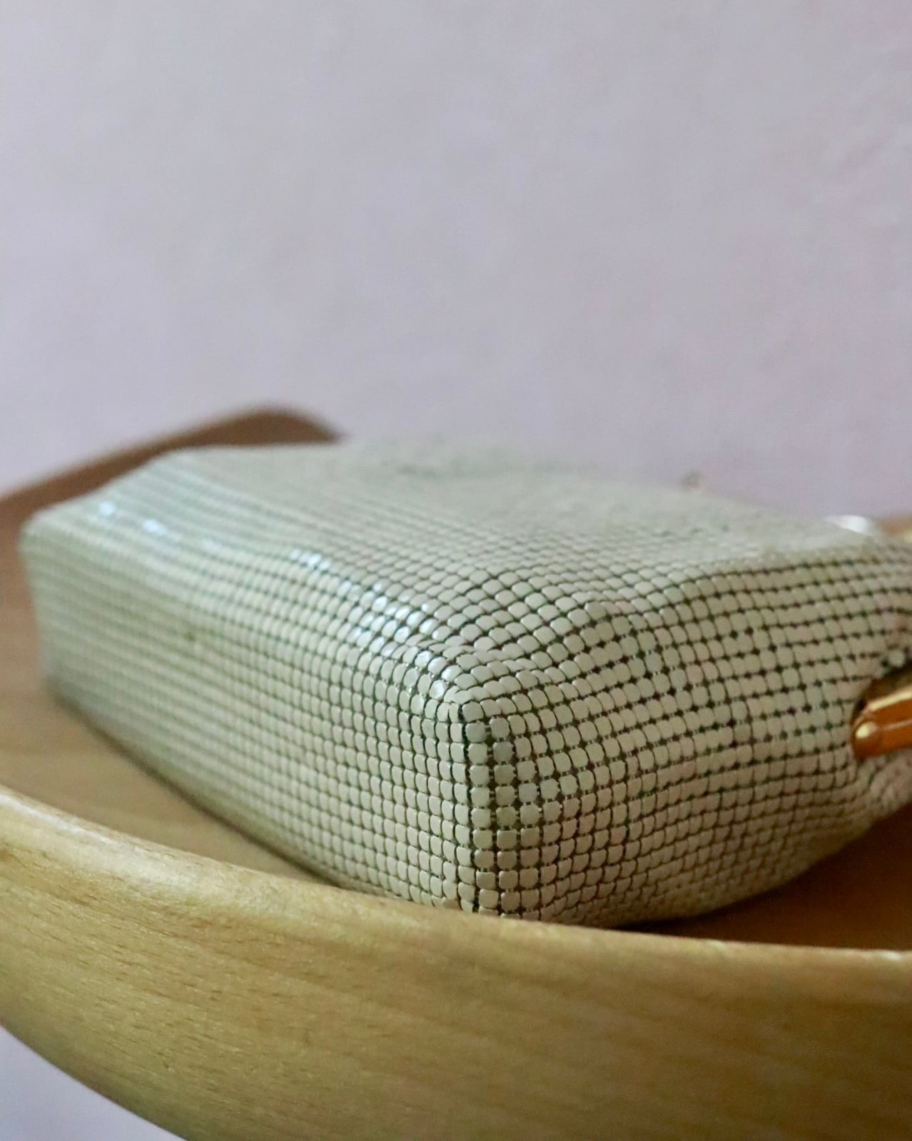 エレガントなホワイトベージュの艶やかなバッグは、オケージョン問わずコーディネートのアクセントになります。ゴールドチェーンが華やかです。