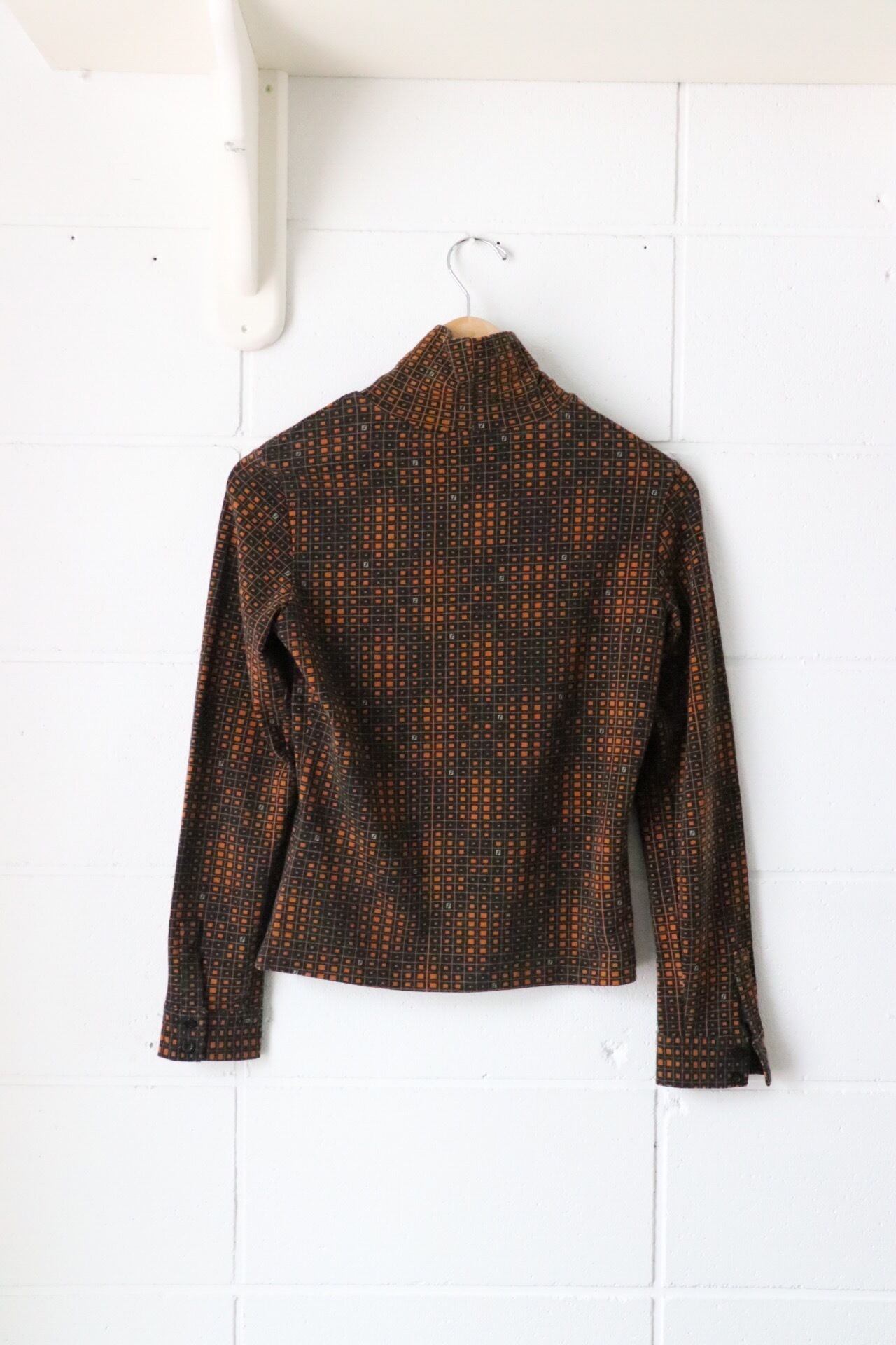 黒地にブラウンのスクエア柄がこれからの季節にぴったりのトップス
