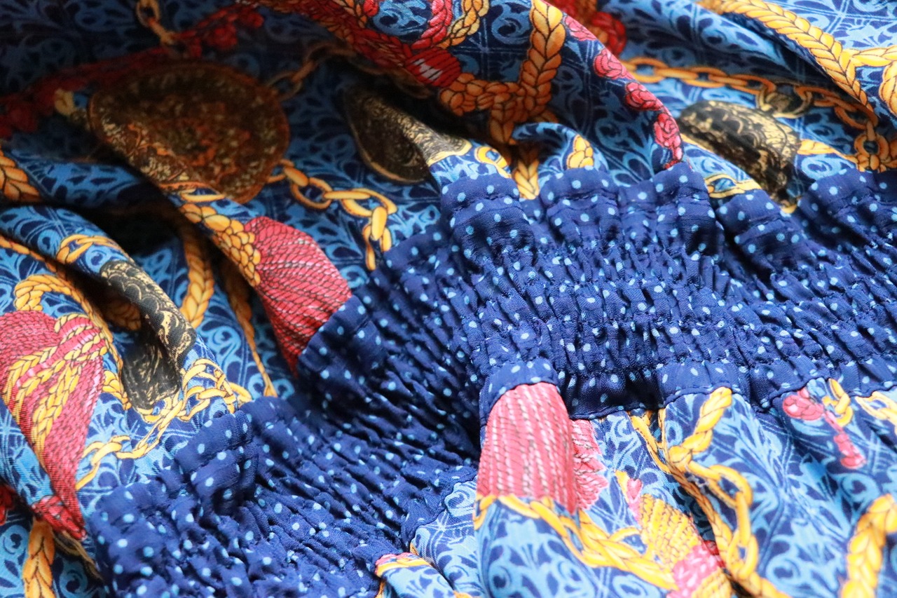 色鮮やかな図柄と特徴的なディテールに目を奪われてしまうこちらのワンピースは、Diane Freisのもの。