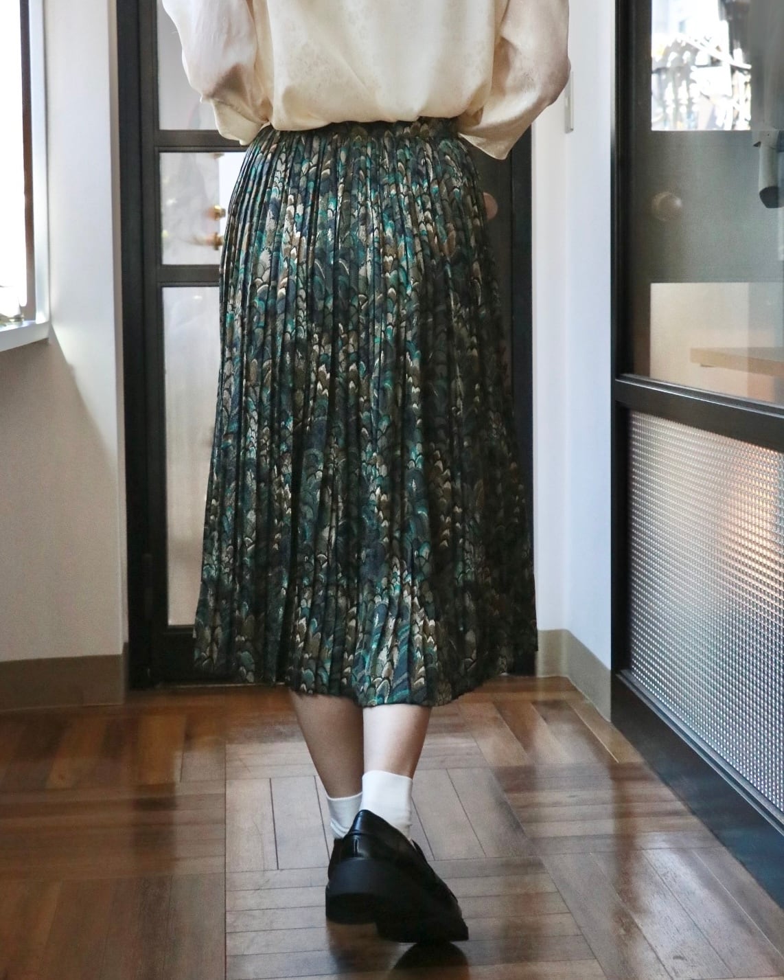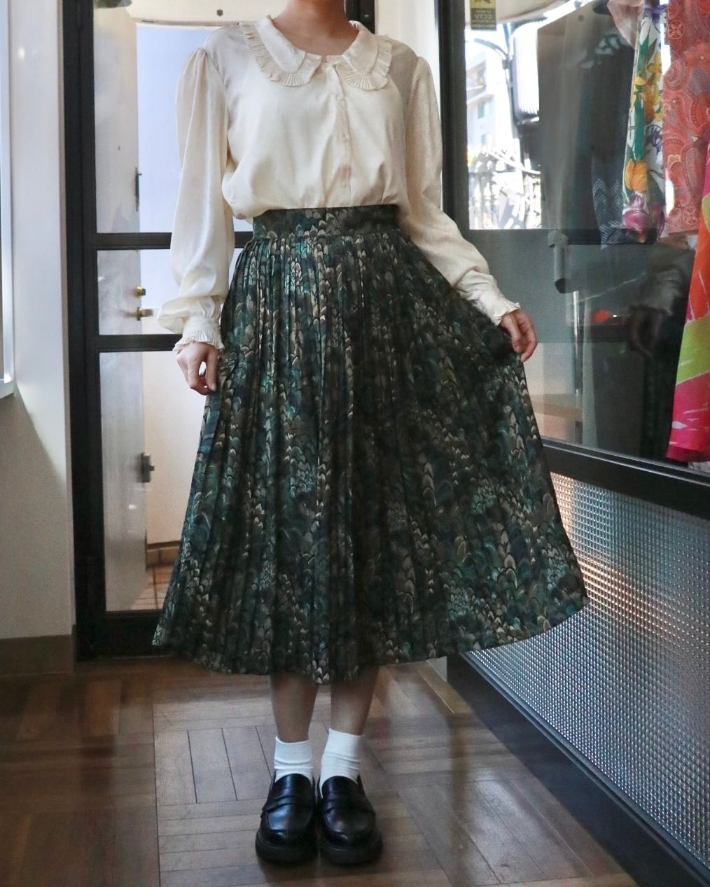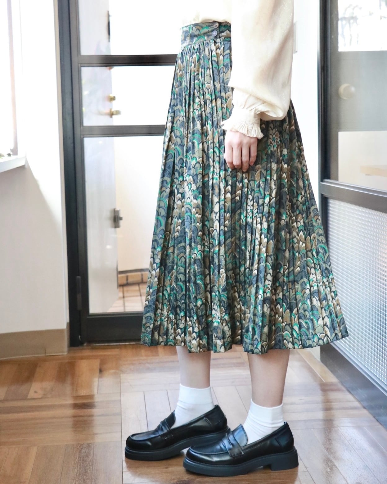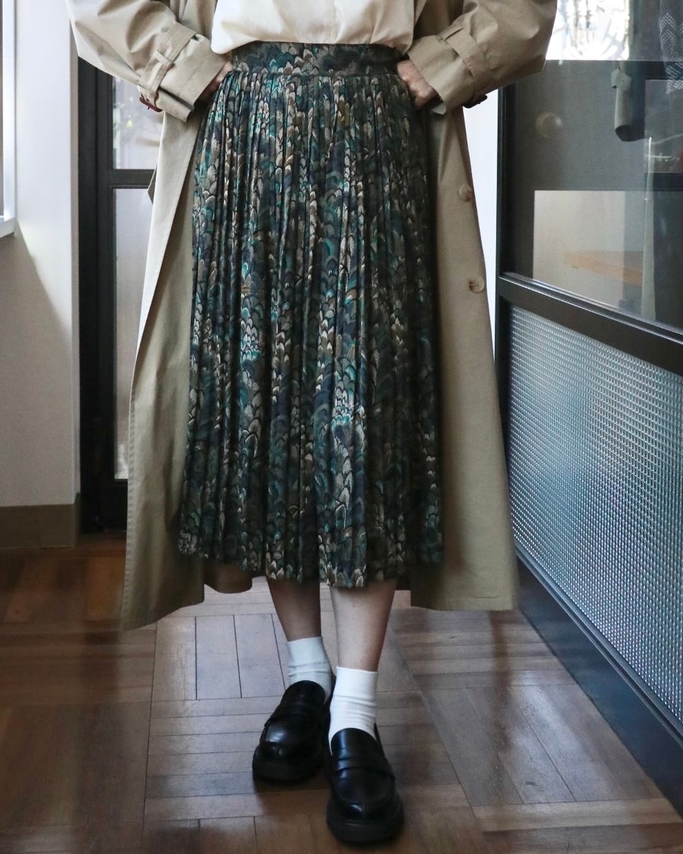 シンプルなトップスと合わせるだけで、スタイルが完成する一枚です。