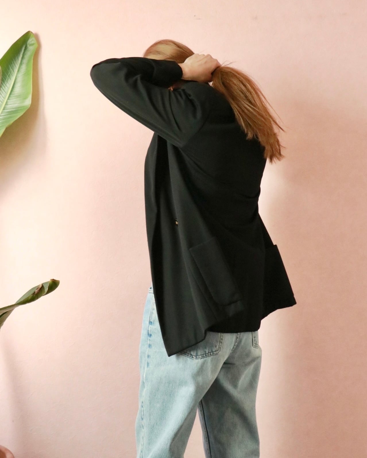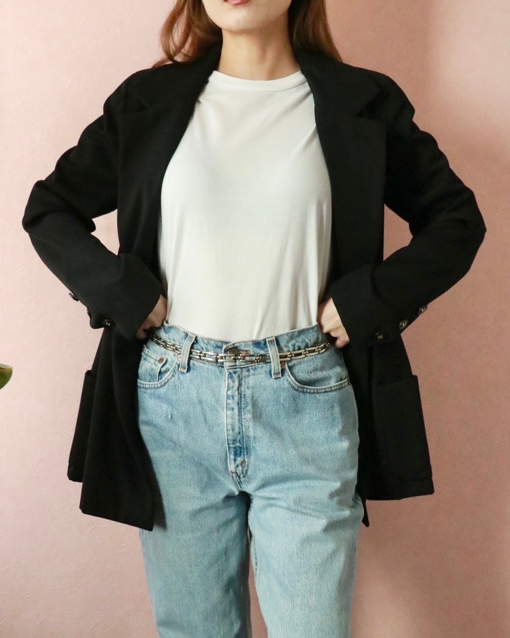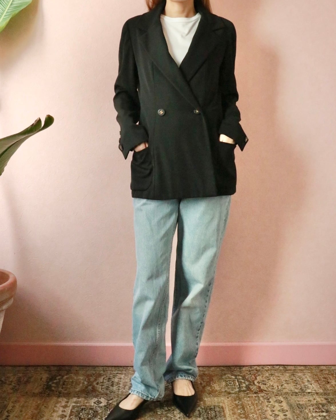 ココマークボタンが映えるクラシックなテーラードシルエット。