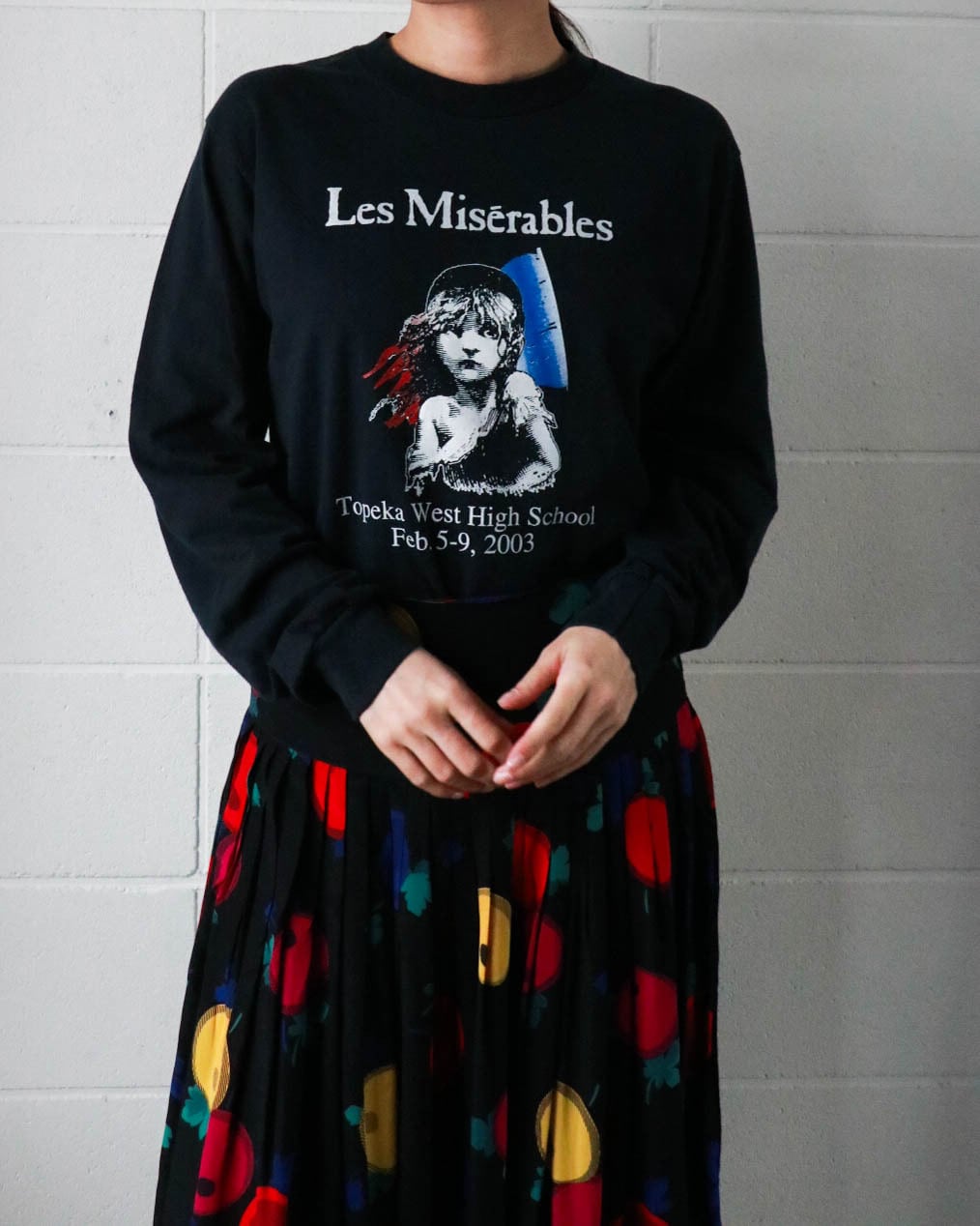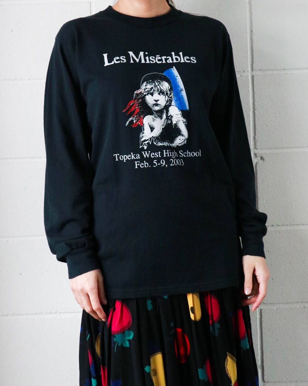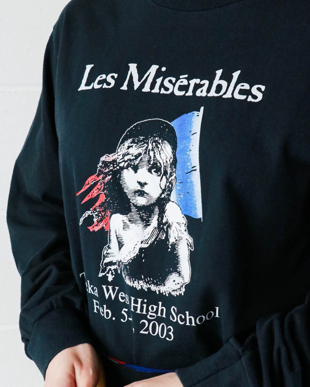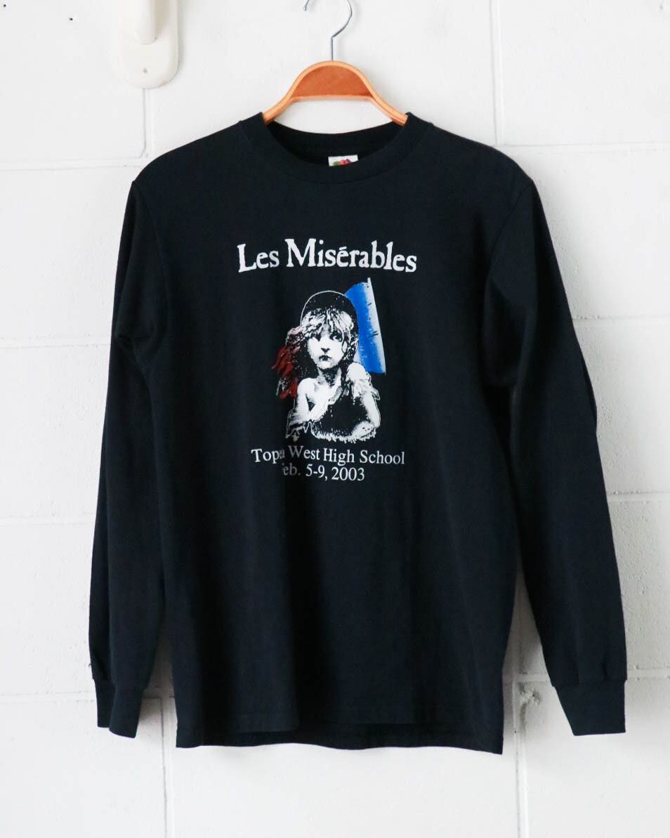 ヴィクトル・ユゴーが1862年に発表したフランスの長編小説で、日本ではミュージカルや映画としても愛される名作、『レ・ミゼラブル』。こちらは2003年の長袖Tシャツ。女性に丁度いいサイズ感でブラックカラーですが程良いエイジングが嬉しい。こなれ感のある1着です。
