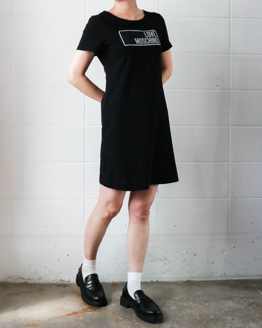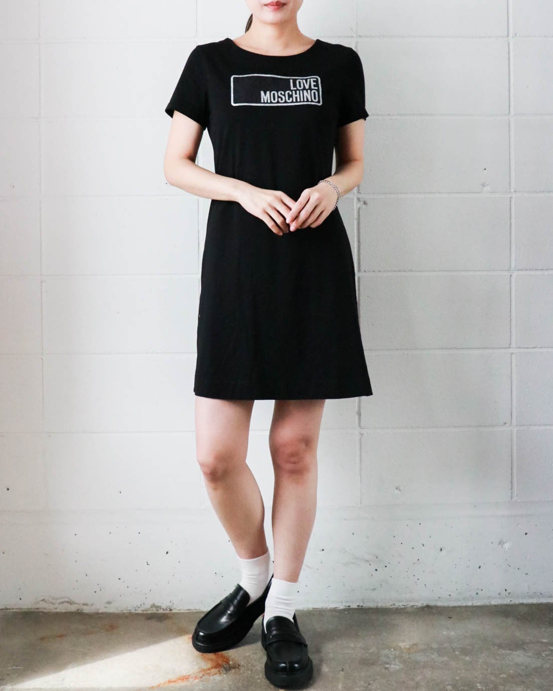 黒地の中にほんのり光る”LOVE MOSCHINO”の文字が