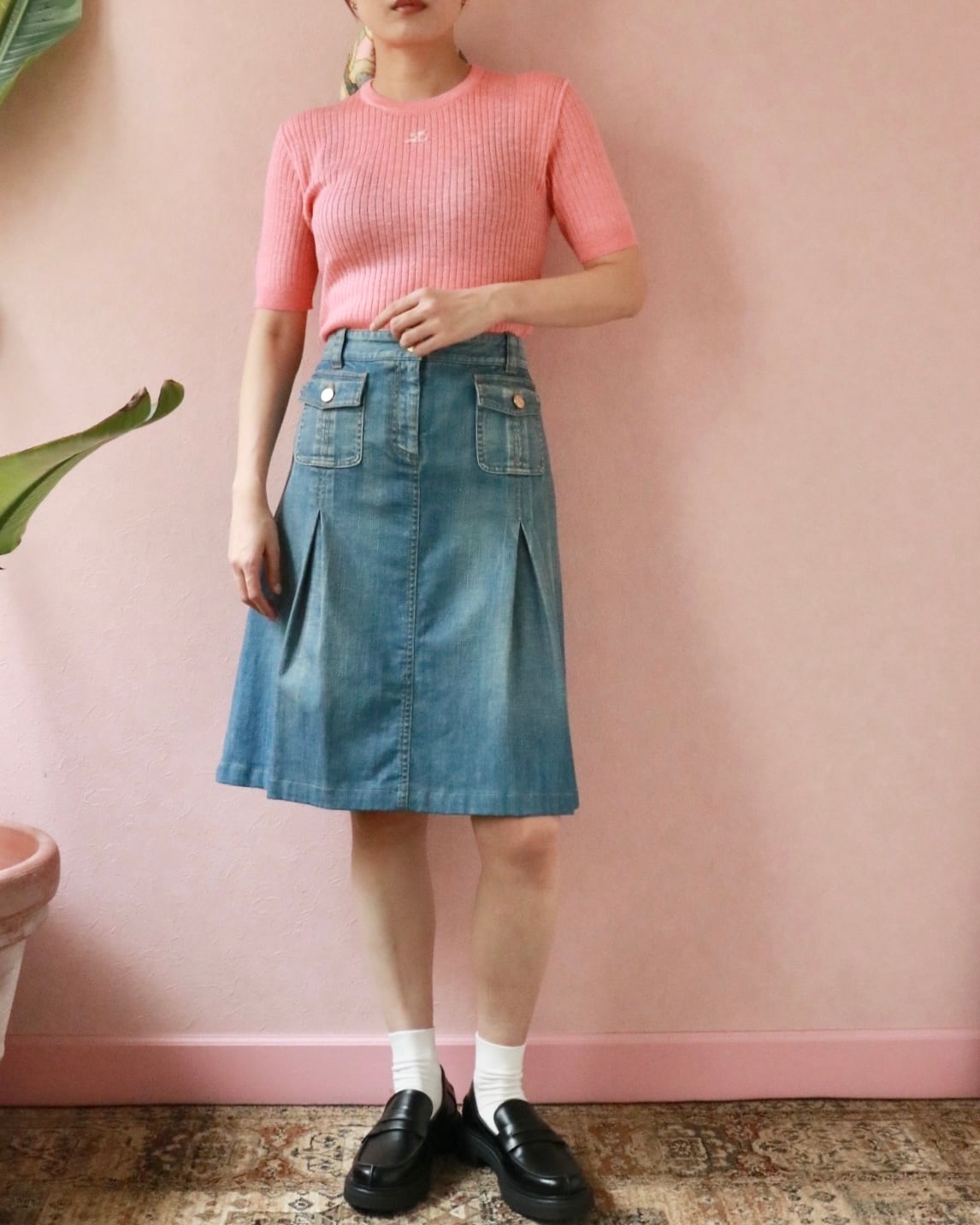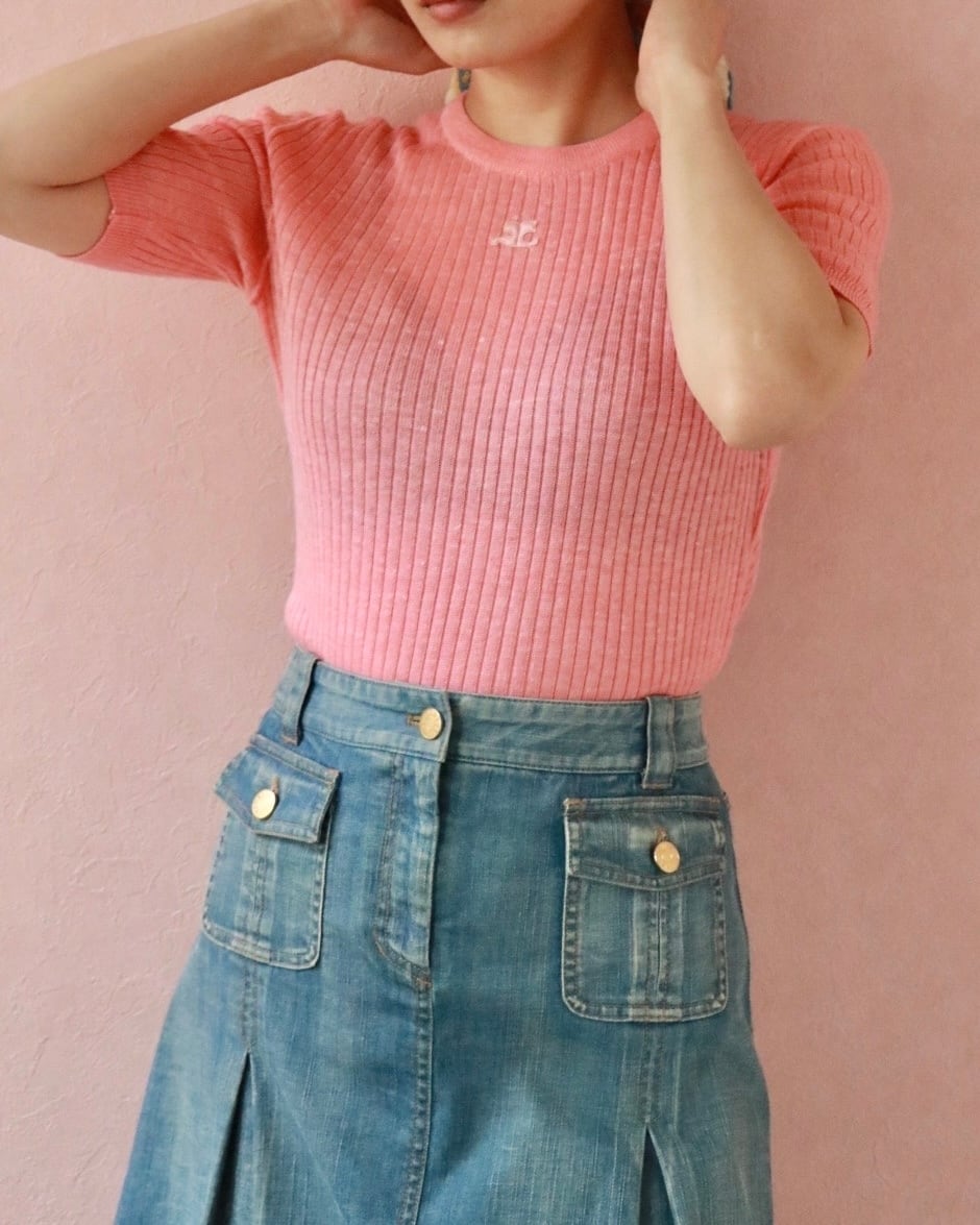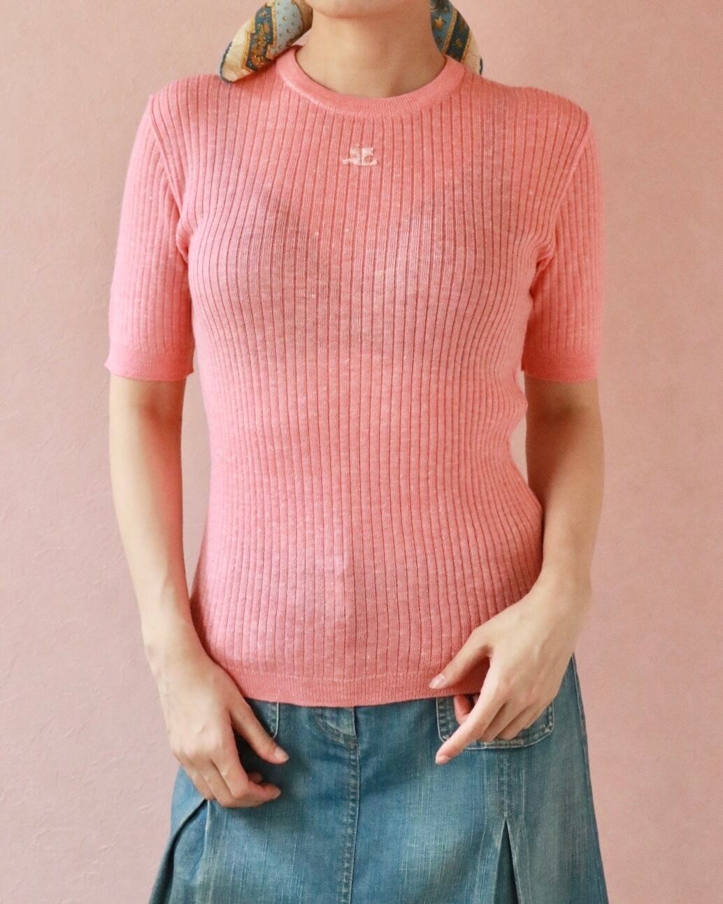 Courreges coral pink knit top