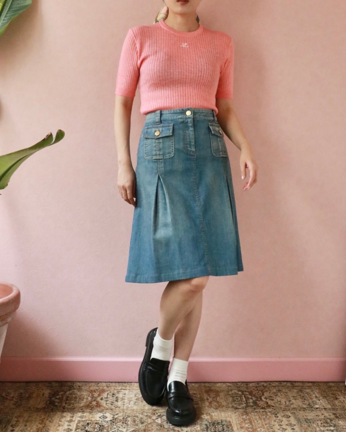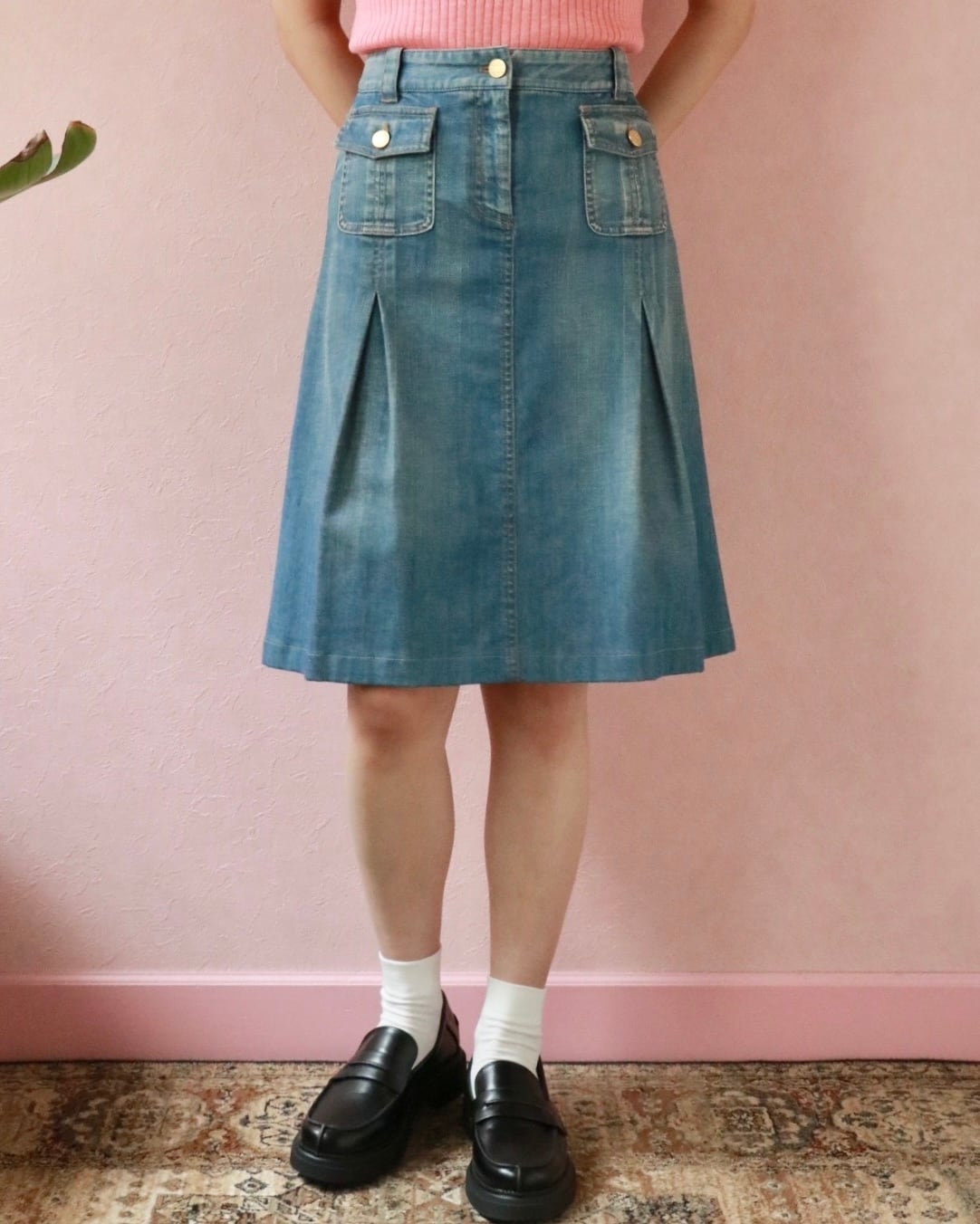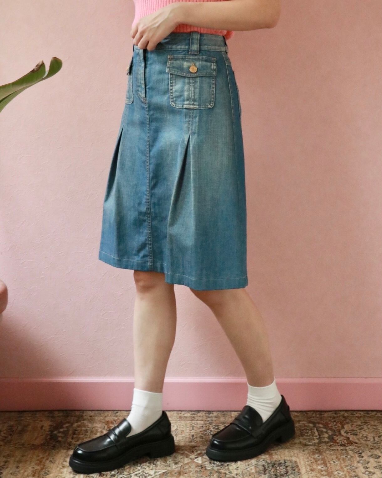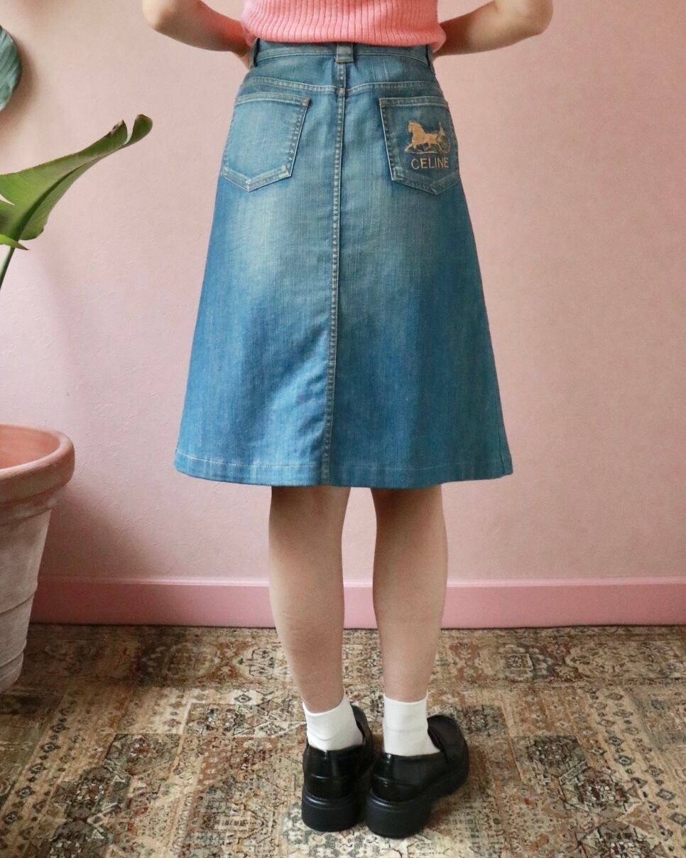 クラシカルなAラインにサイドタックがほどこされたセリーヌのデニムスカート。