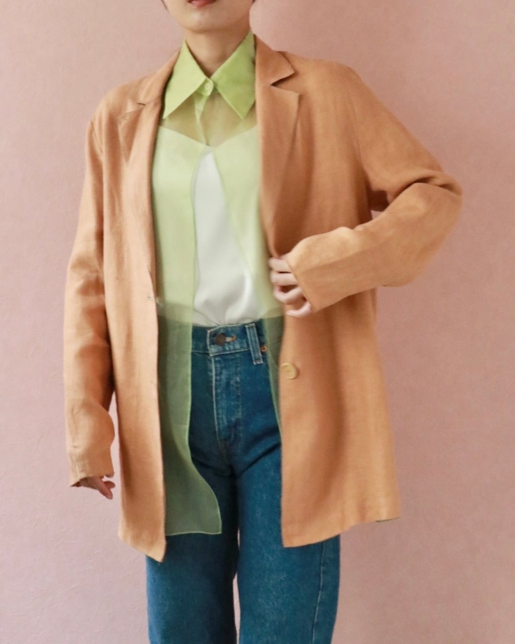 ナチュラルな風合いと柔らかなアプリコットベージュのトーンが