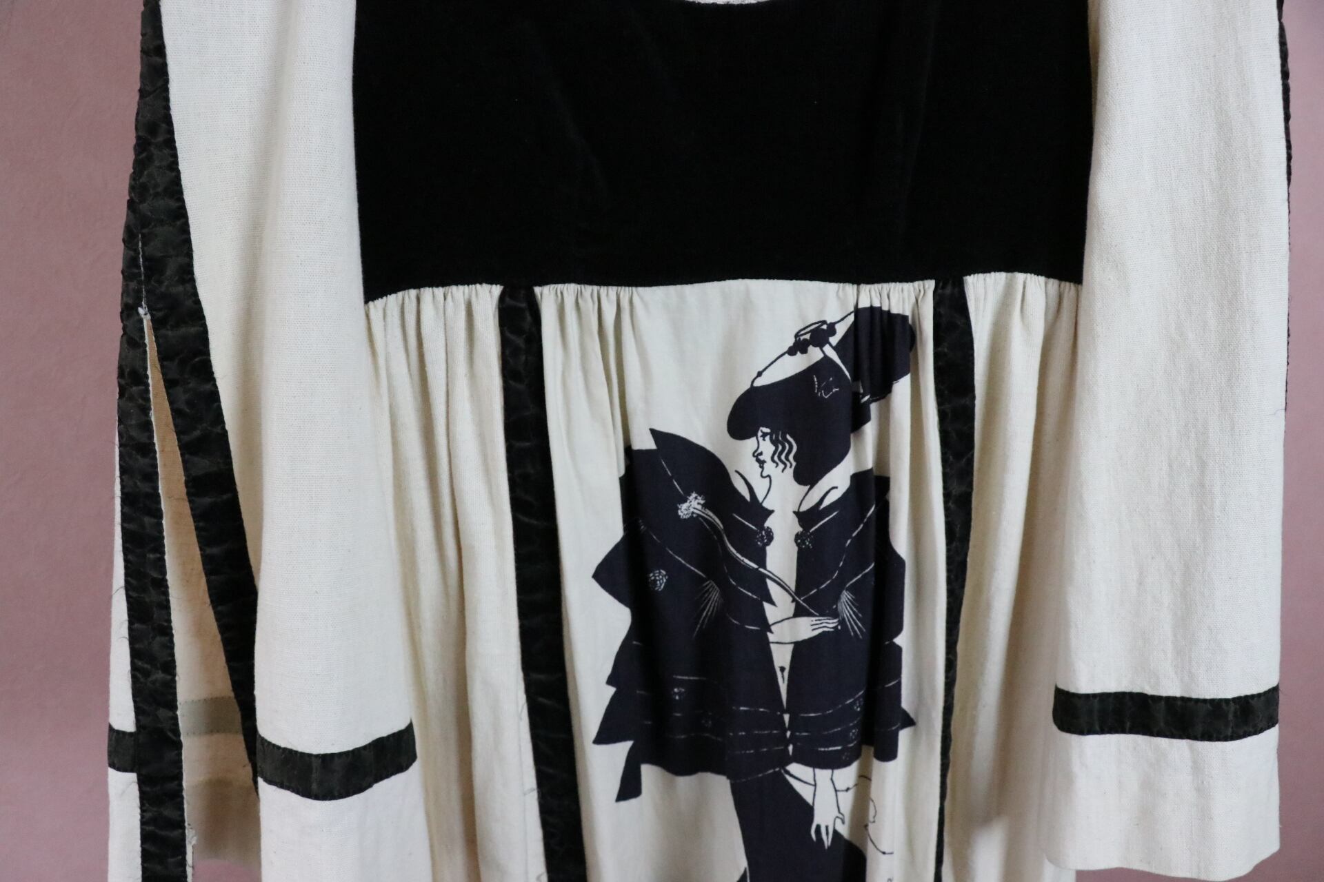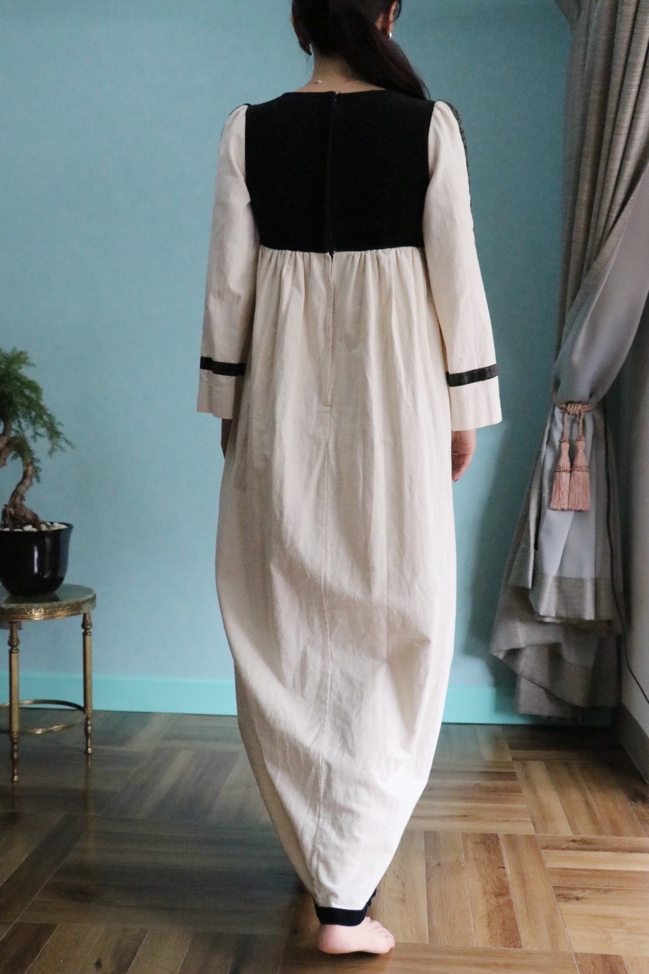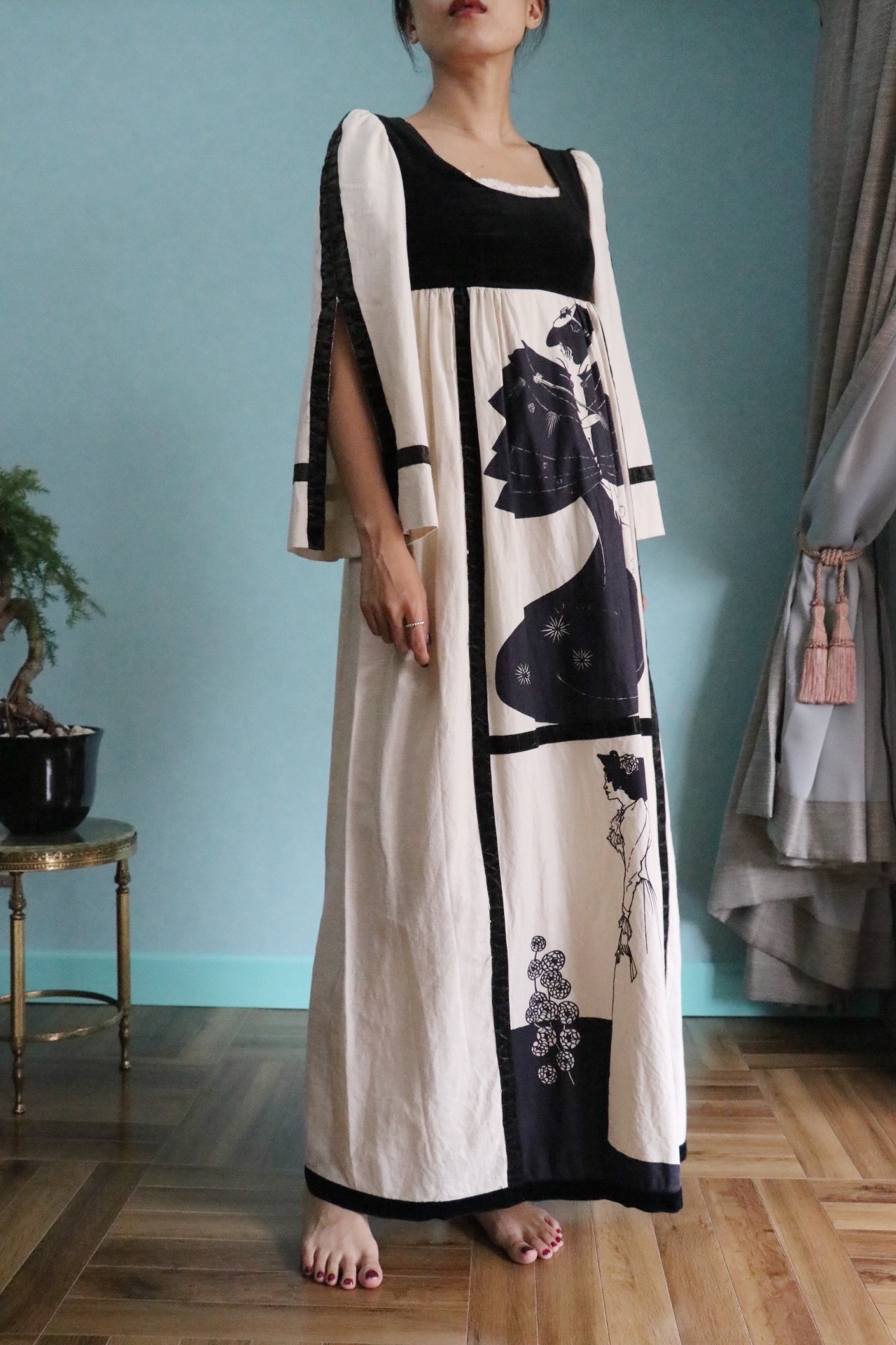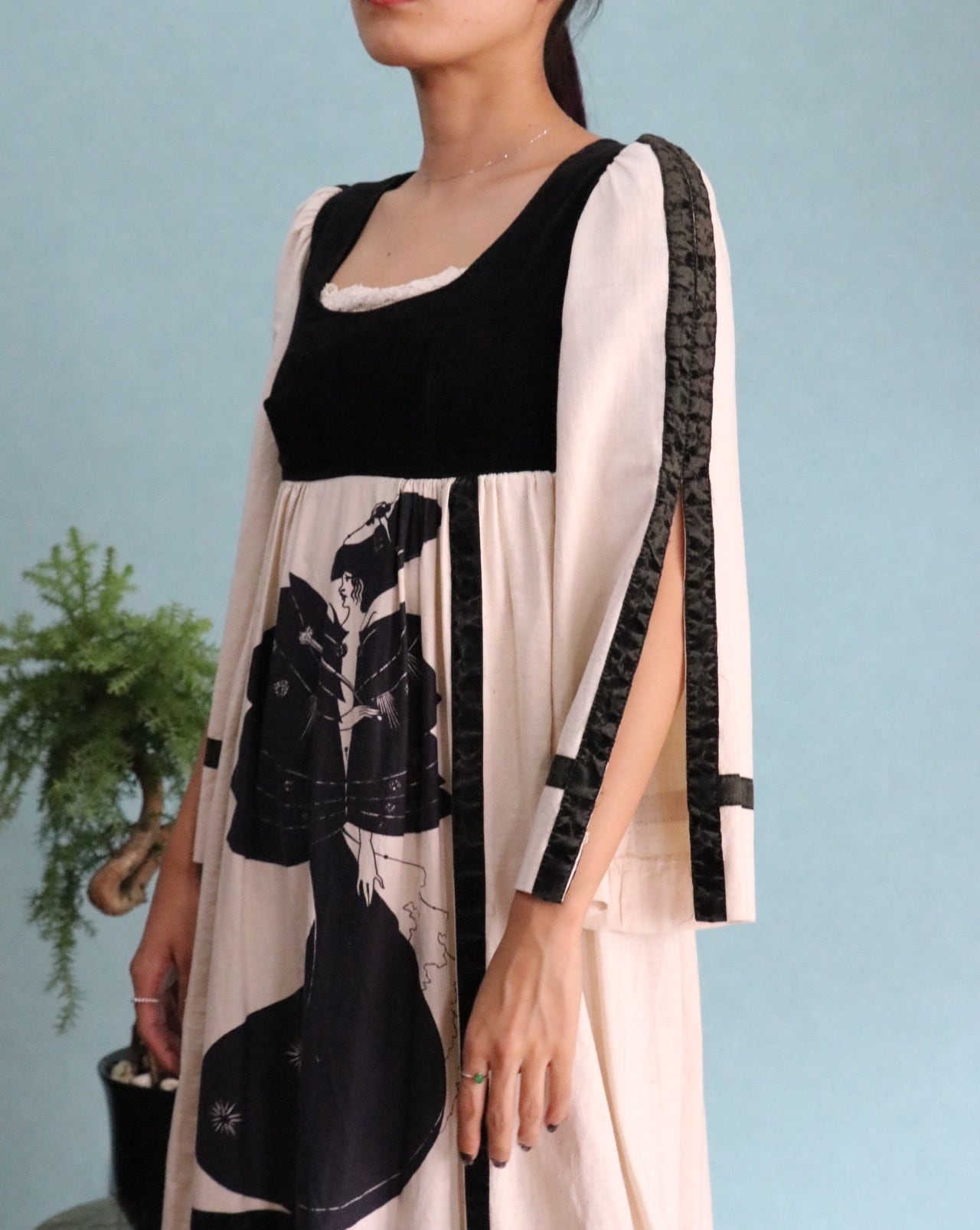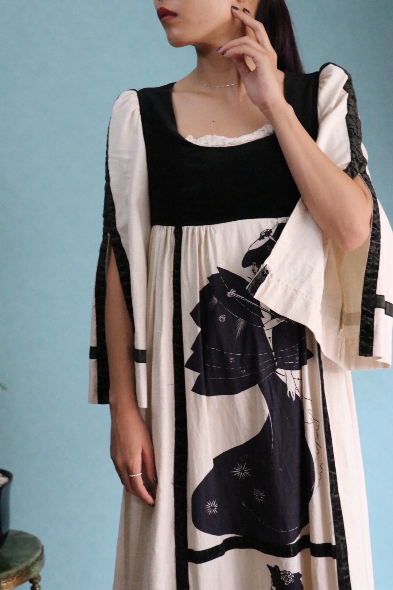 70's cotton slashed sleeve dress