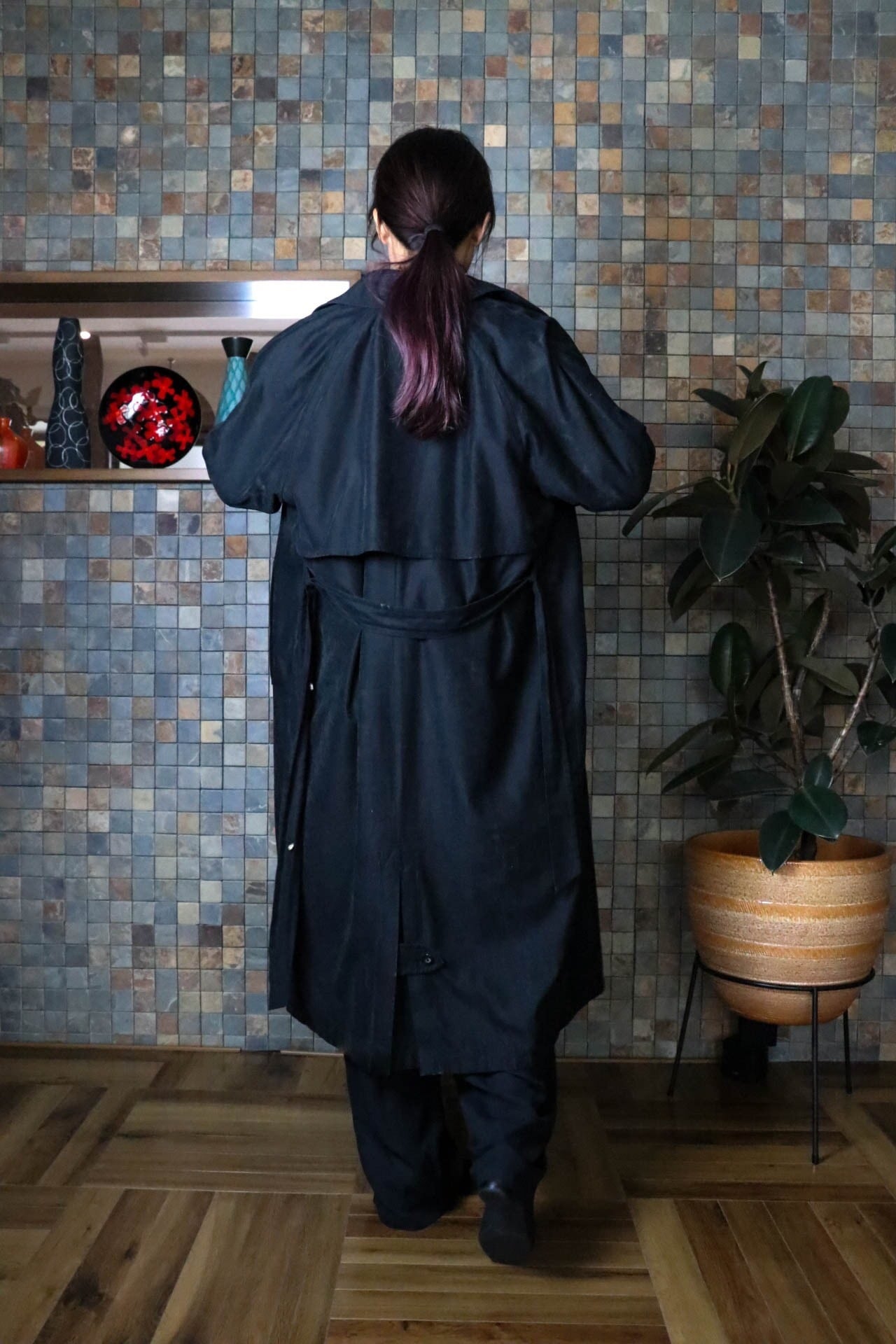 女性の柔らかさを演出しつつオールブラックのロング丈は