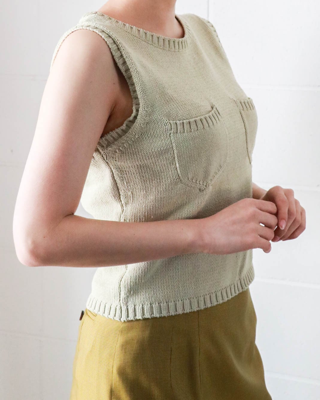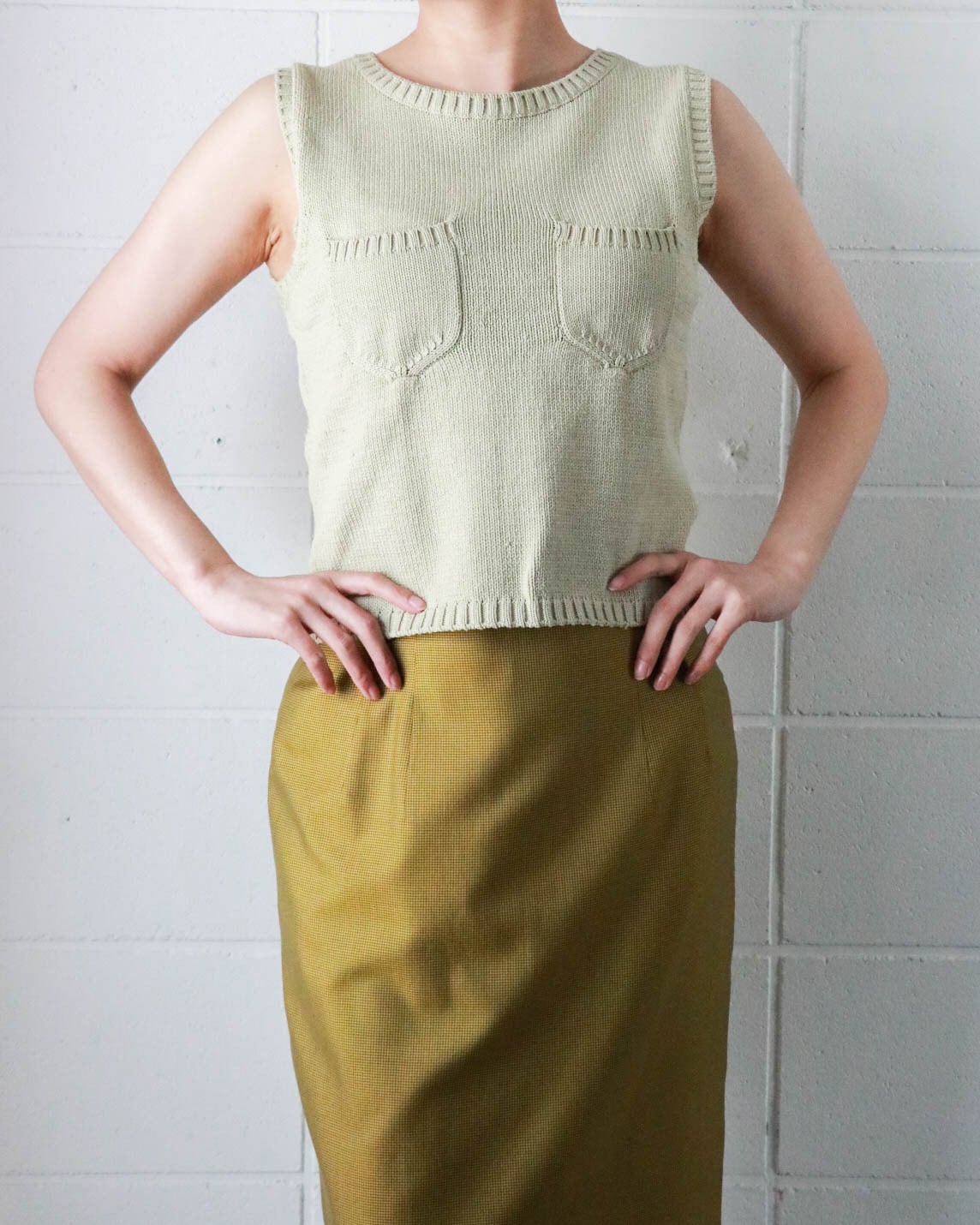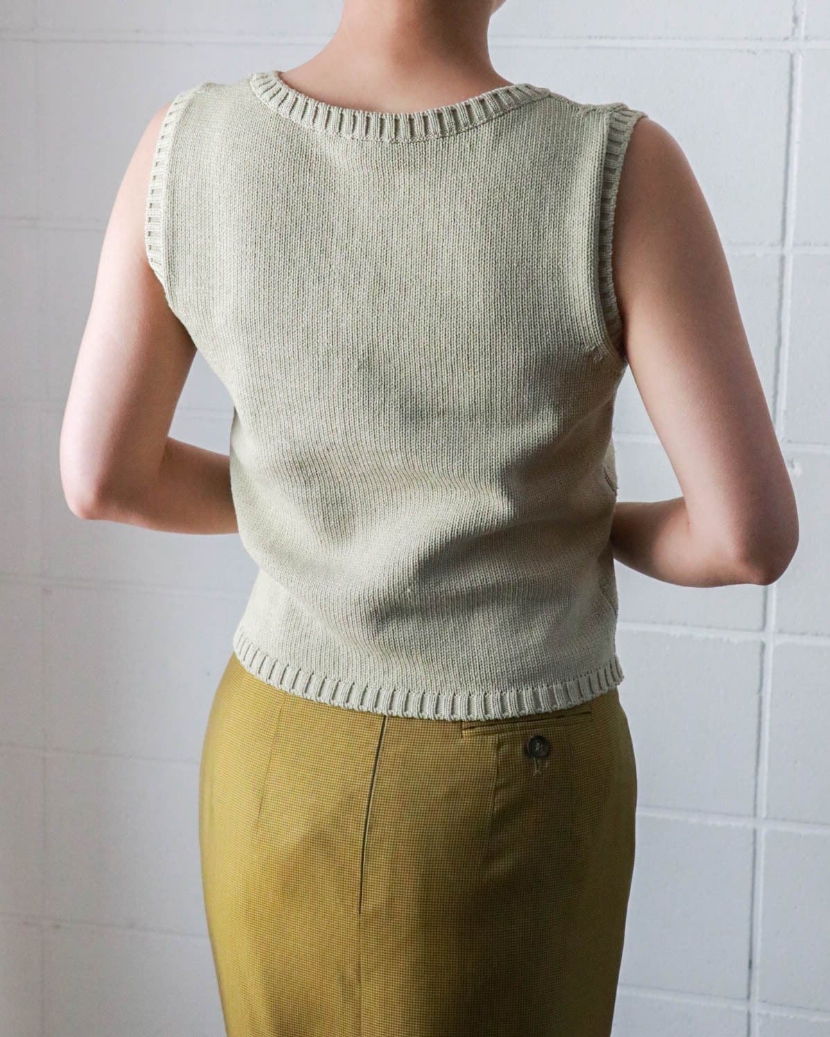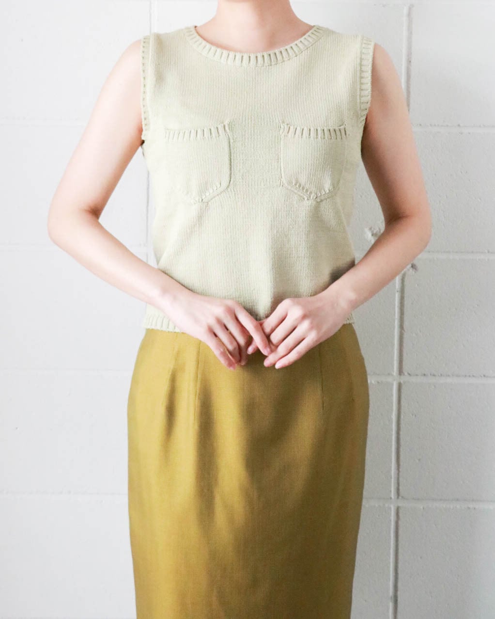 柔らかなライトグリーンが印象的なMade in Italy のニットトップス。