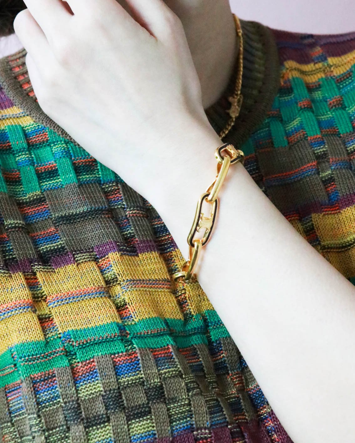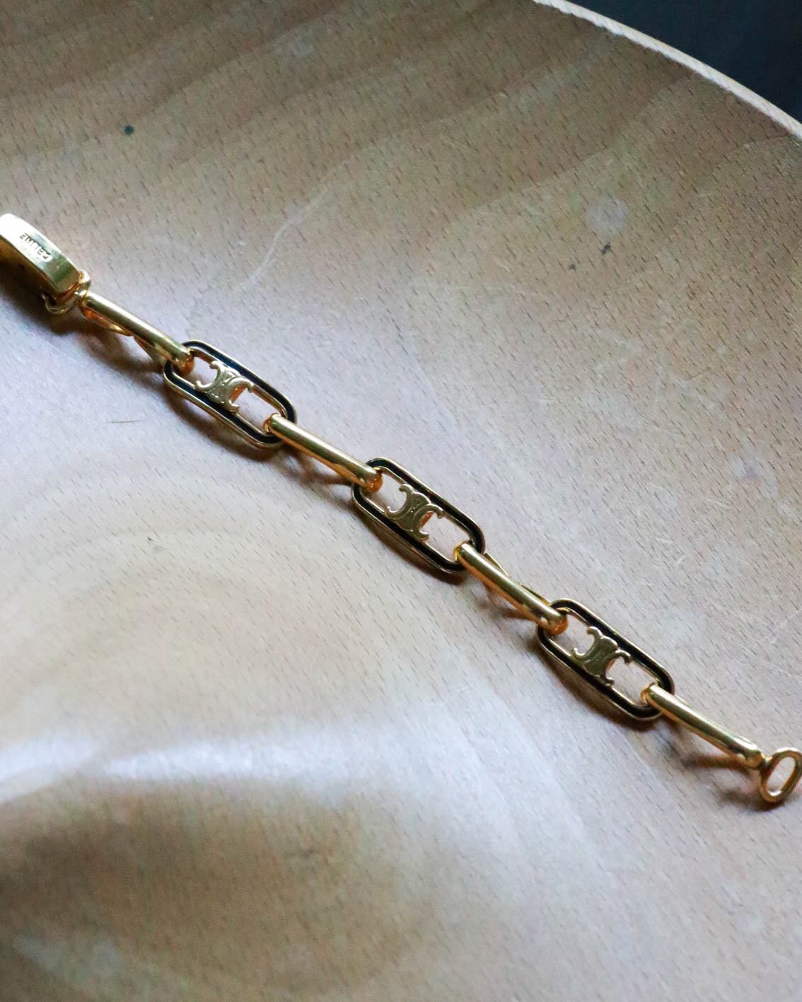 手元を華やかにみせてくれるセリーヌのブラック×ゴールドのブレスレットが入荷。連なるトリオンフが印象を残すデザインで、個性を演出してくれます。
