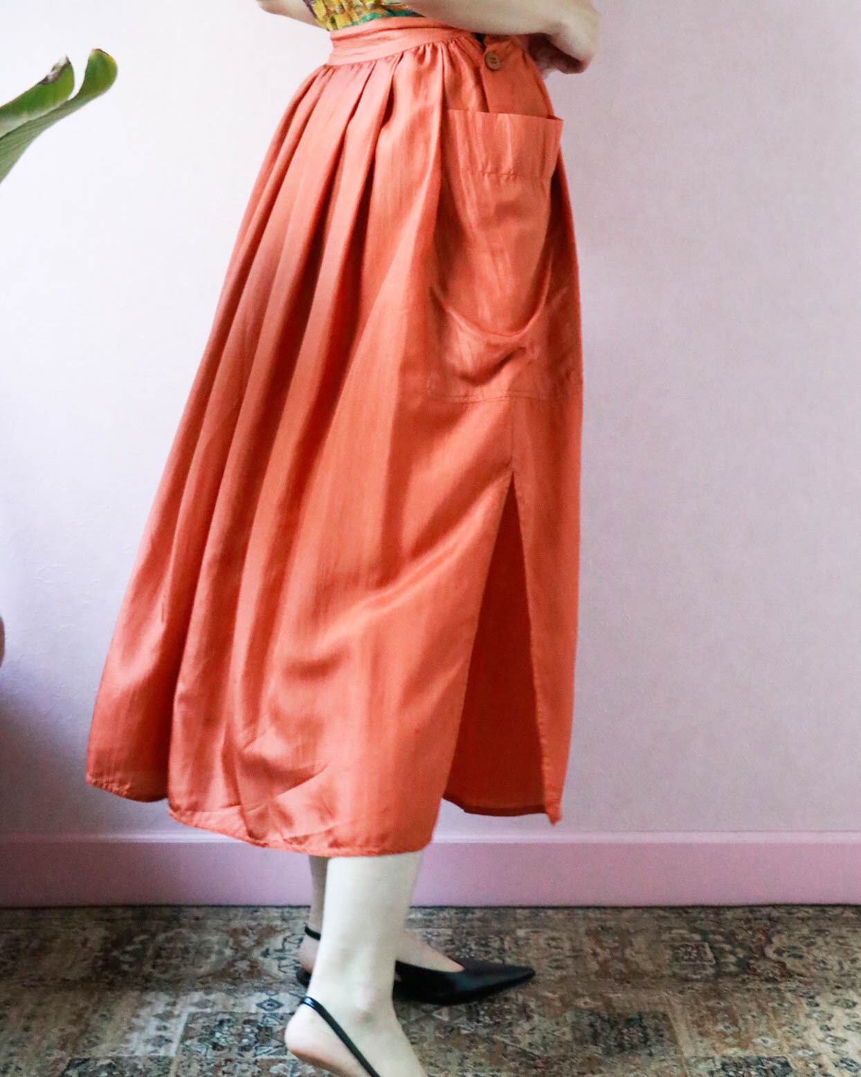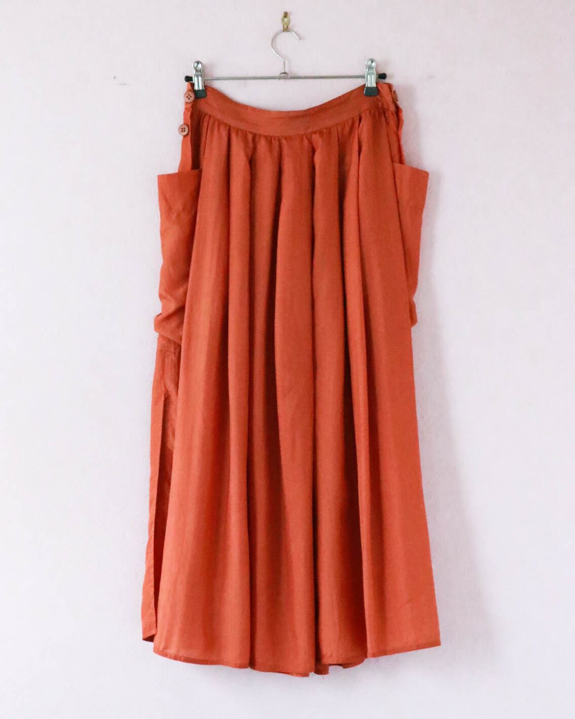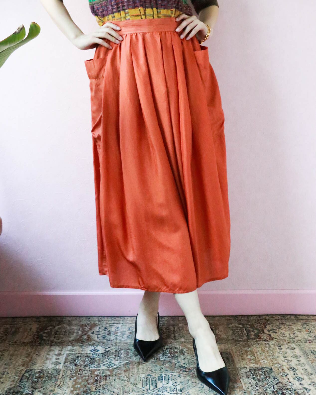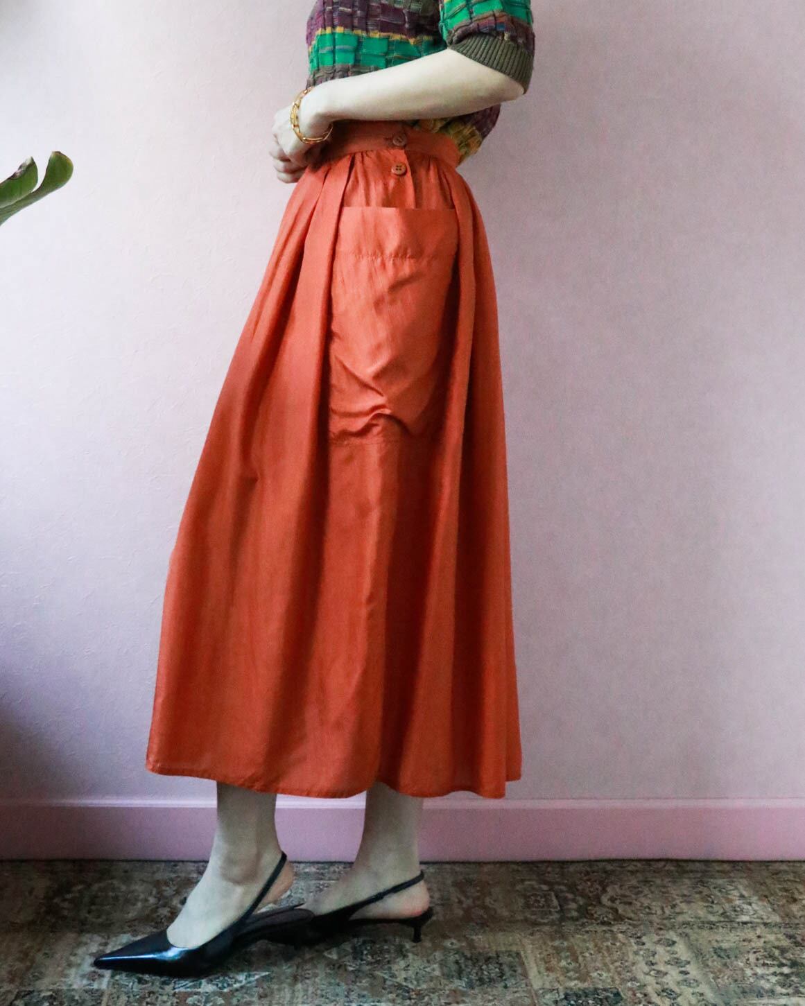 ふんわりとしたフォルム、軽やかなシルク素材で着心地快適なイタリア製スカートが入荷しました。動くたびにフェミニンなシルエットが生まれるのが楽しくてついスキップしたくなるよう。しっとりとしたオレンジ色が大人の初夏を感じさせます。