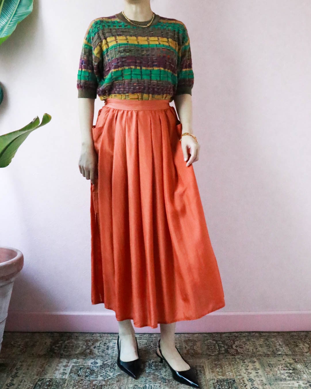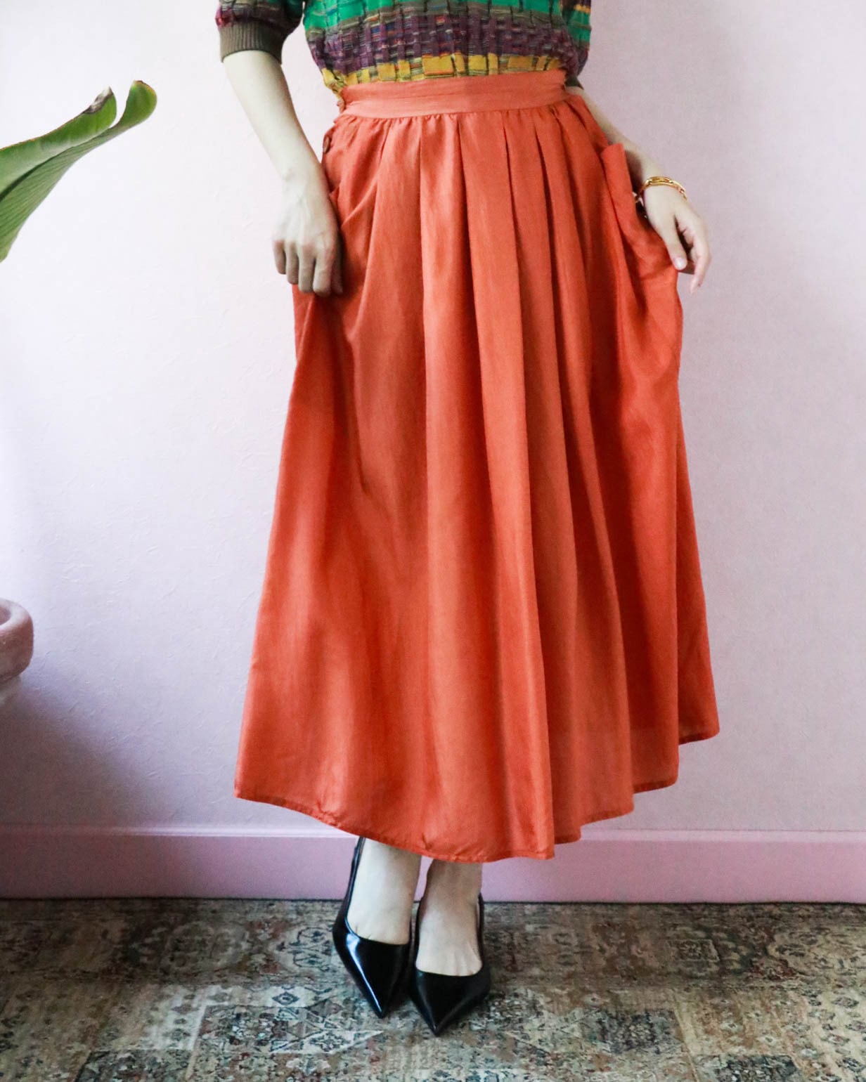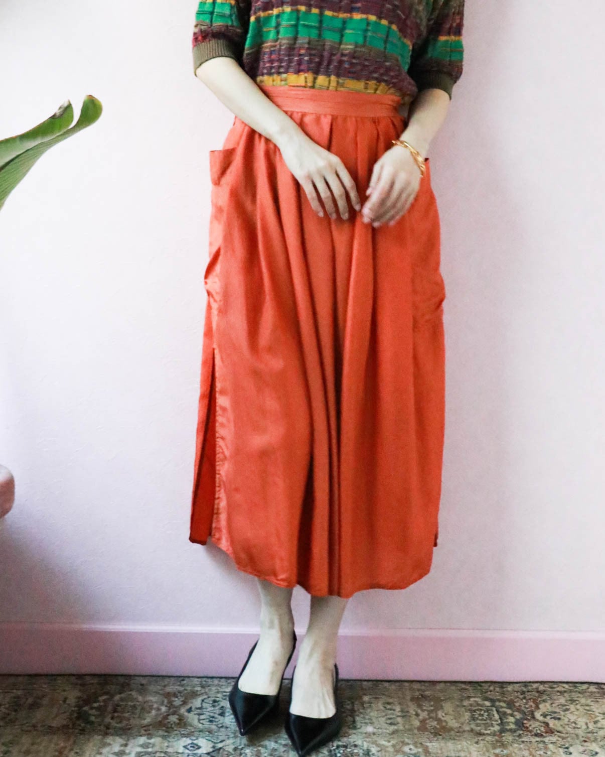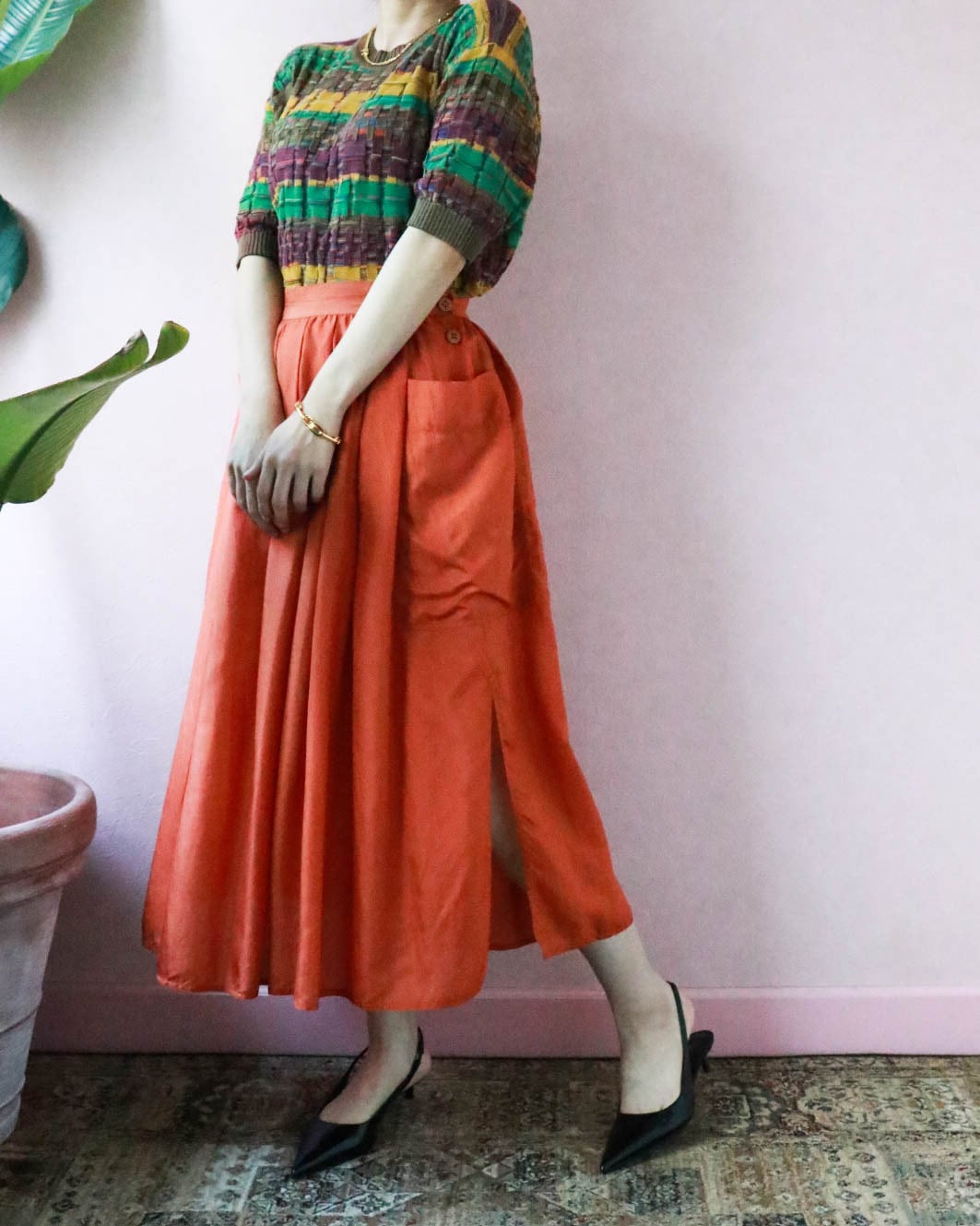ふんわりとしたフォルム、軽やかなシルク素材で着心地快適なイタリア製スカートが入荷しました。動くたびにフェミニンなシルエットが生まれるのが楽しくてついスキップしたくなるよう。しっとりとしたオレンジ色が大人の初夏を感じさせます。