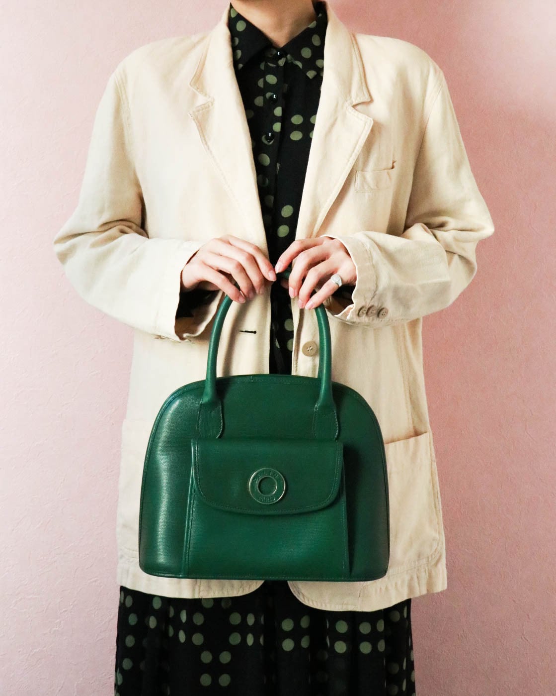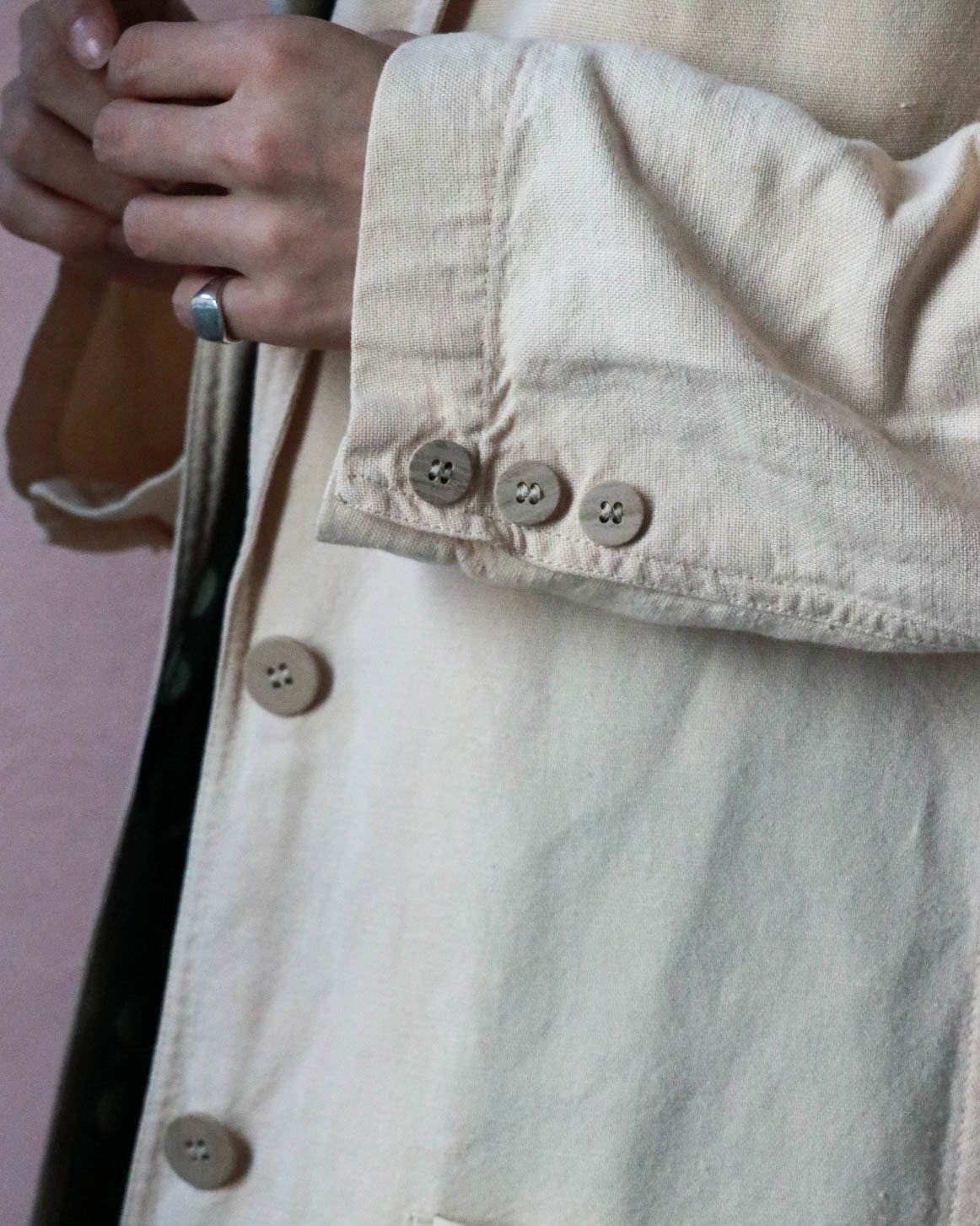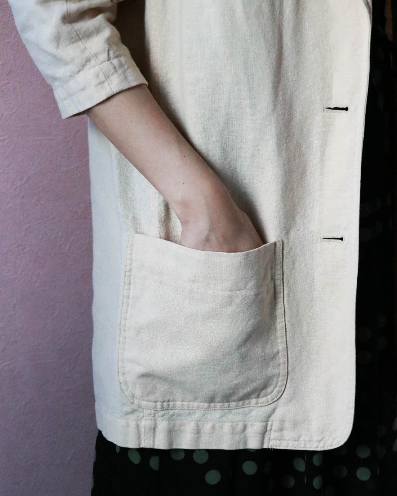 クリームベージュの優しい色合いのジャケット