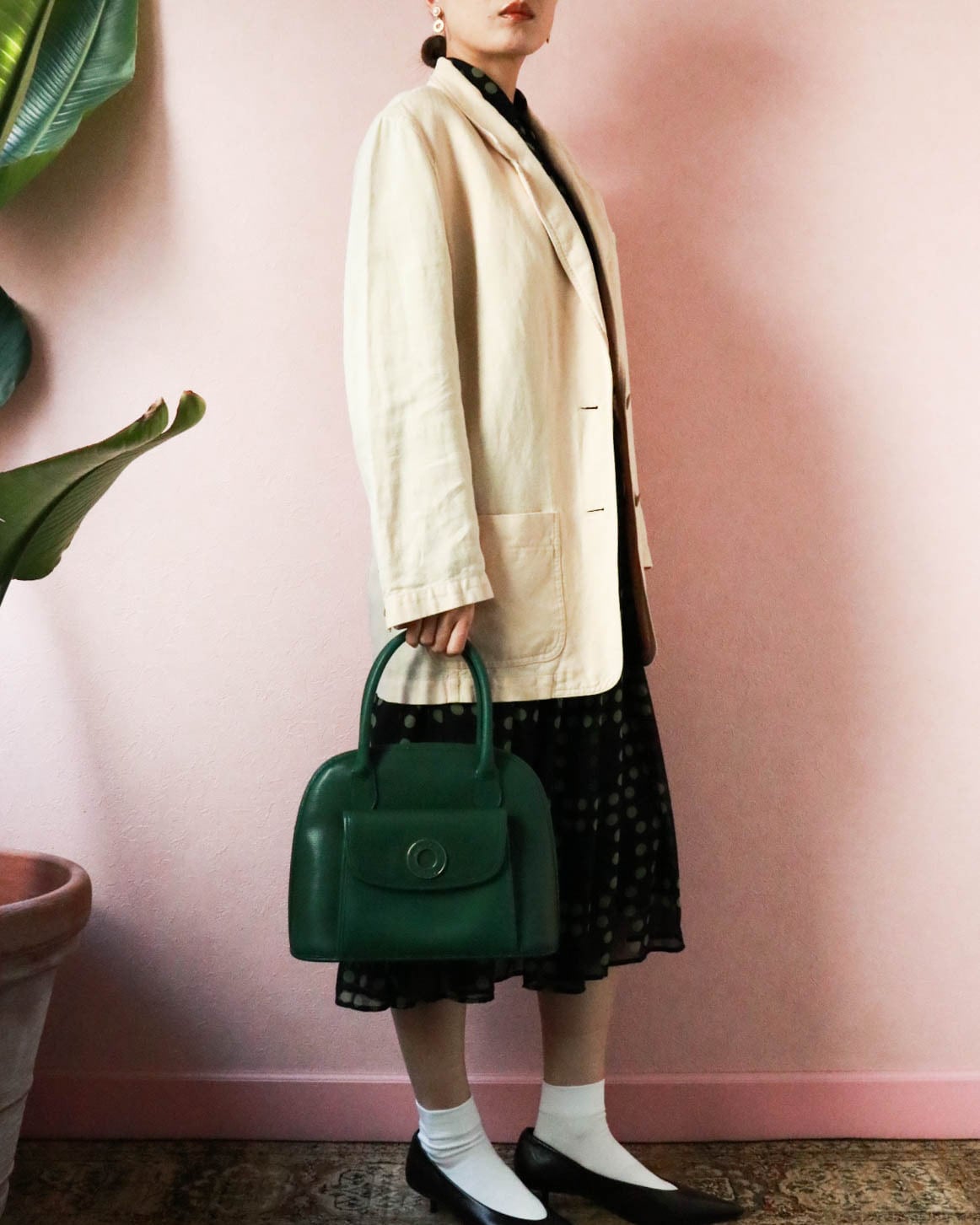 ダブルジャケットなので、クラシカルな雰囲気のお洋服に合わせて