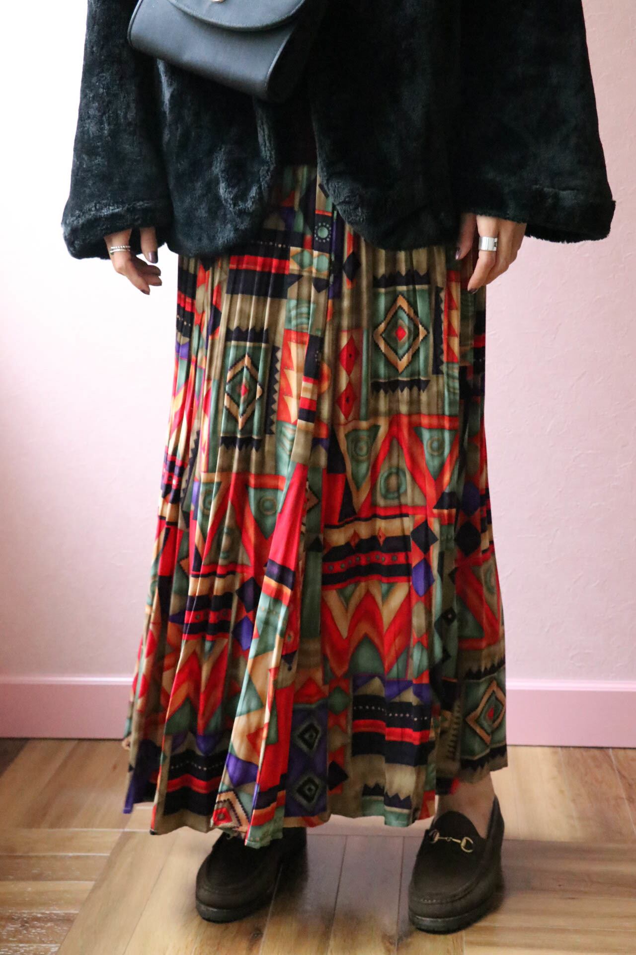 歩くたびに上品に靡く秋カラープリントのvinatgeスカート