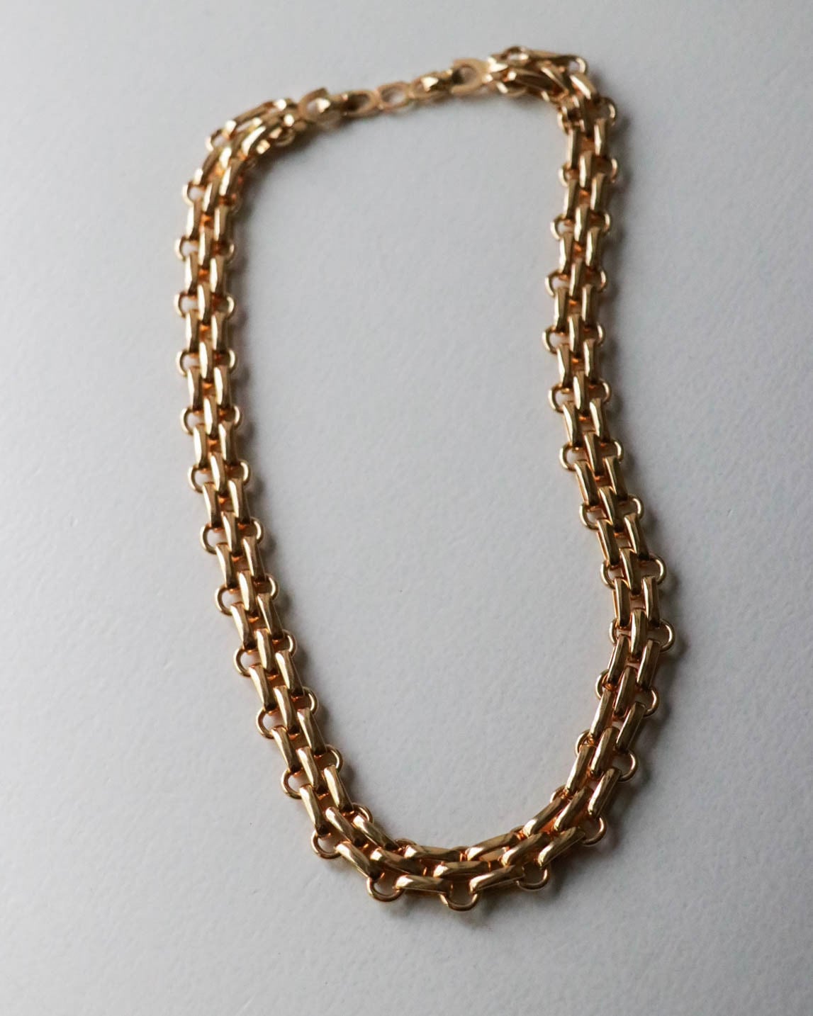 ゴールドの複雑な編みが織りなすデザインが魅力のヴィンテージネックレス。
