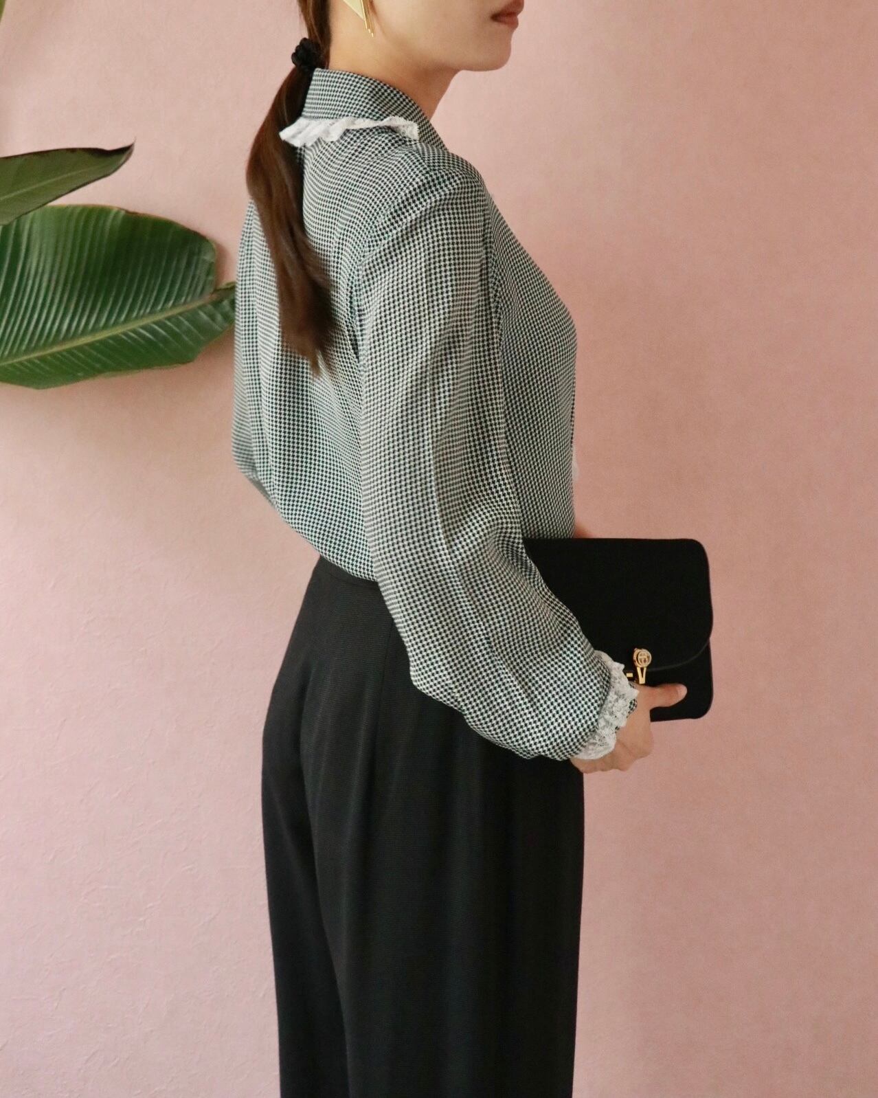 一見ドーリーなレースのディテールですが合わせるボトムスで印象がだいぶ変わる一着。