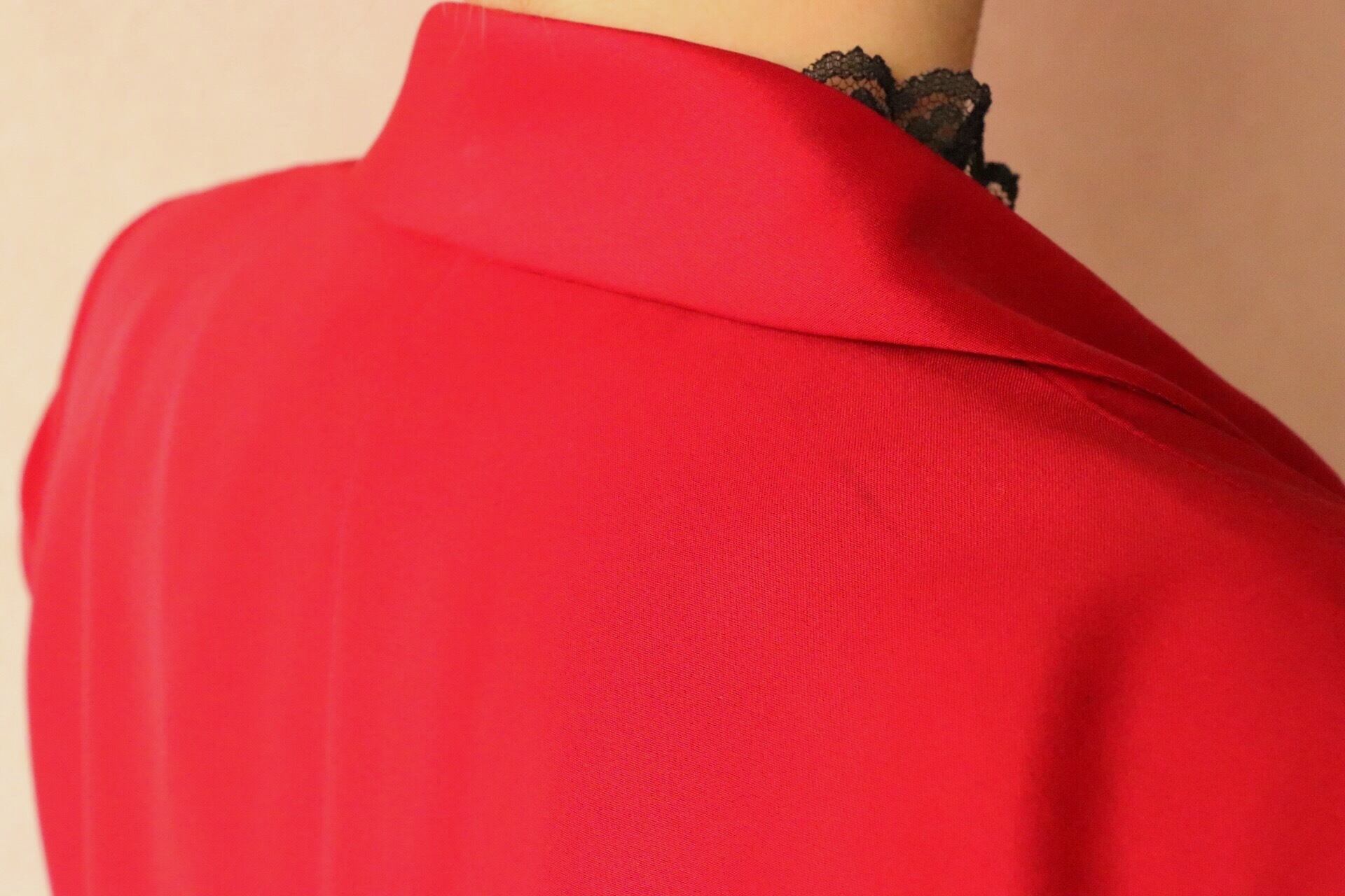 シルク100%の上質なマテリアルが素材特有の光沢感を放ち、ウエストに入ったダーツと相まって身体のラインをより美しく仕上げます。