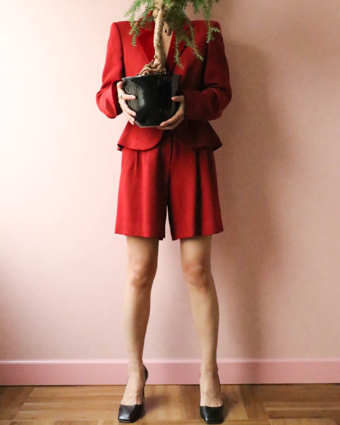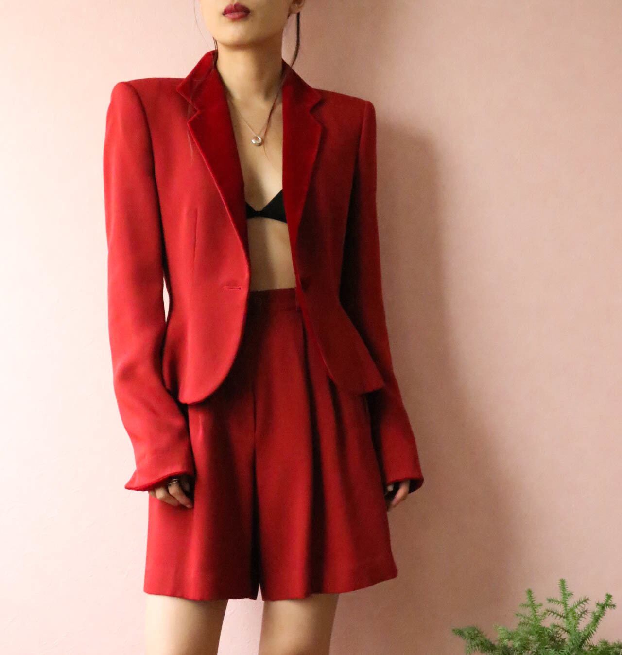 洗練されたレッドカラーがモードな印象のARMANIショートパンツです。