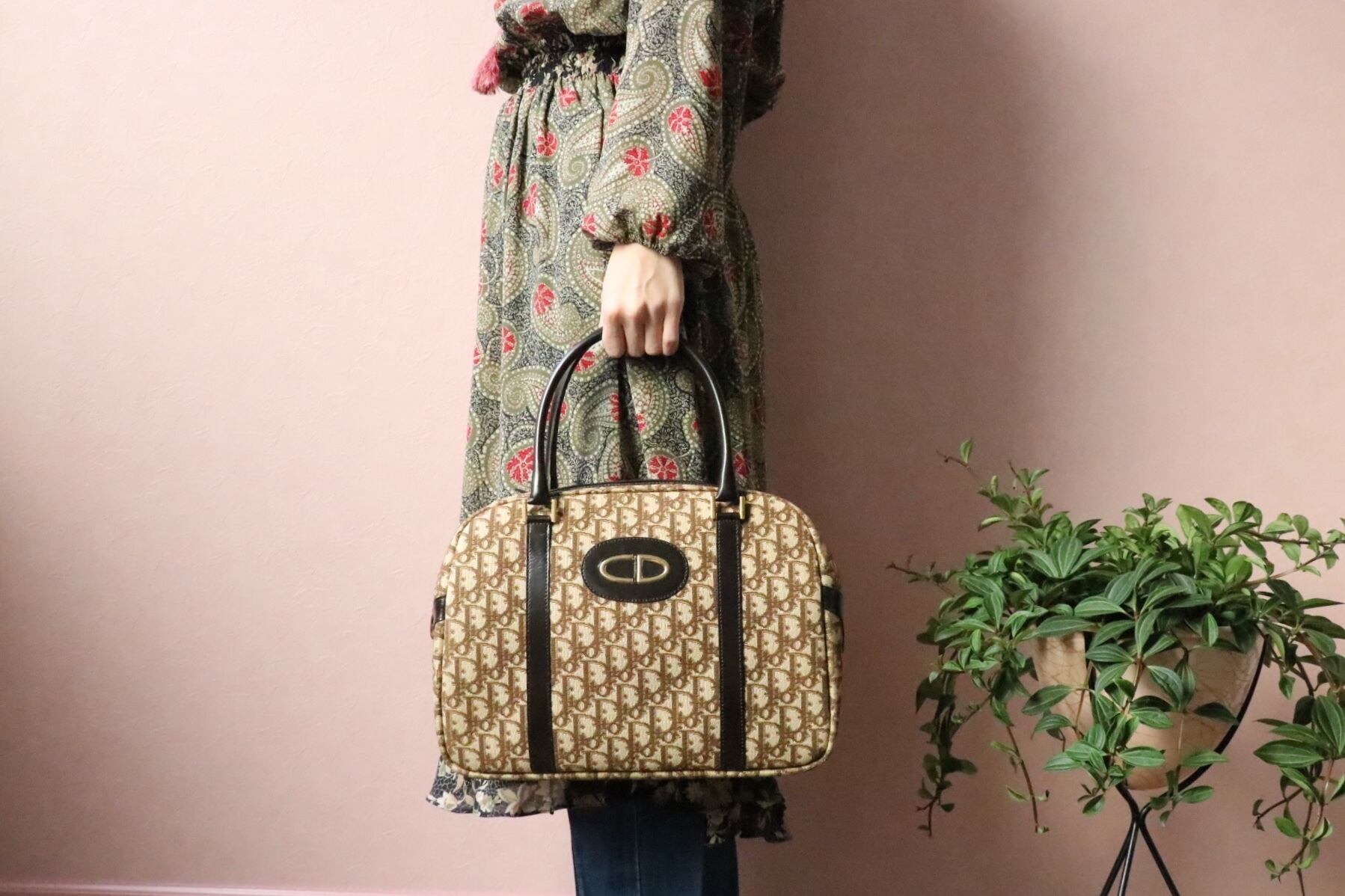 職人の手により丁寧に仕上げられたジャガード生地が魅力のディオールトロッターシリーズ。こちらは70〜80年代のレアな丸型ボストンバッグです。