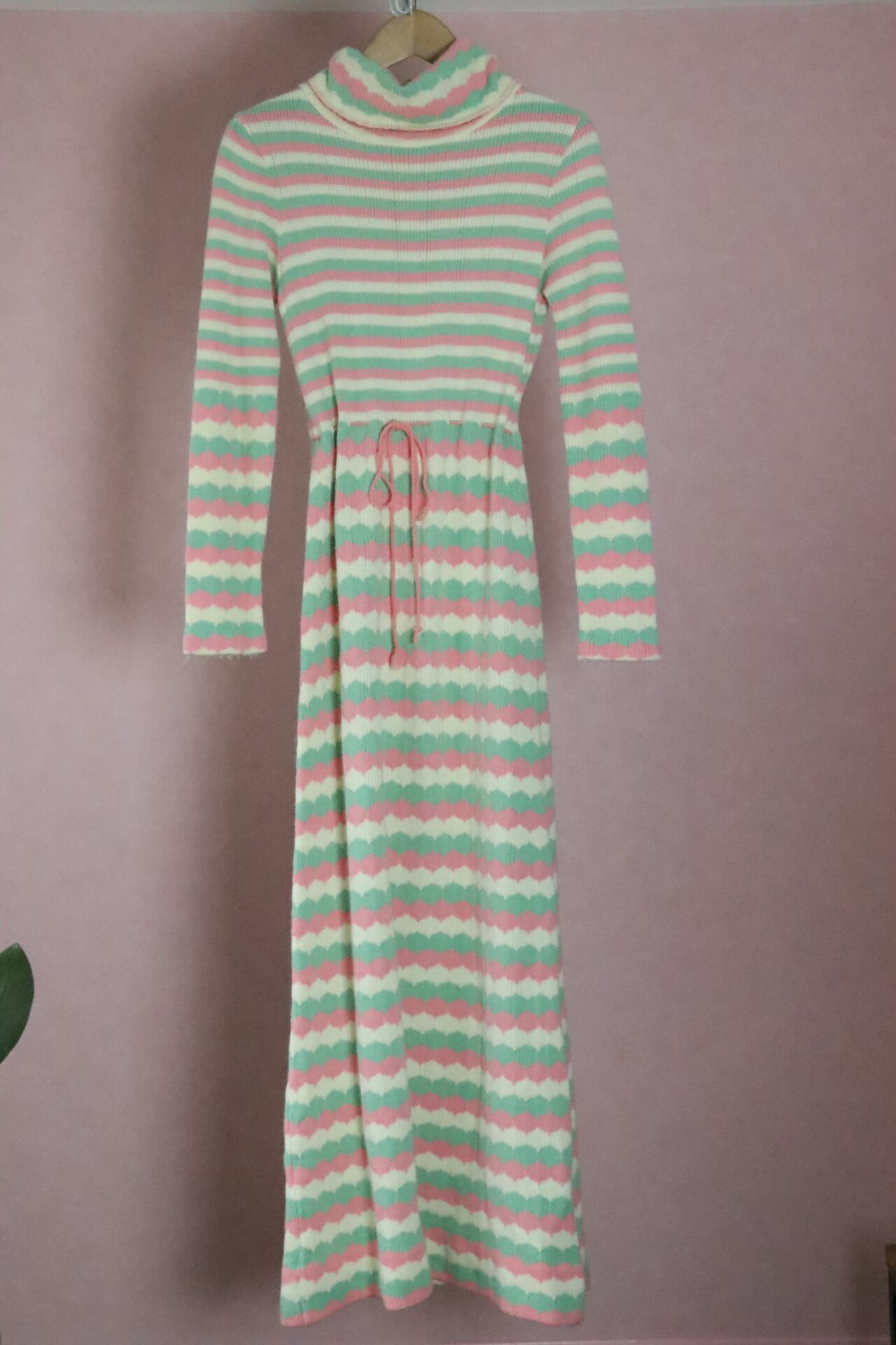 70's Pastel border long knit dress
