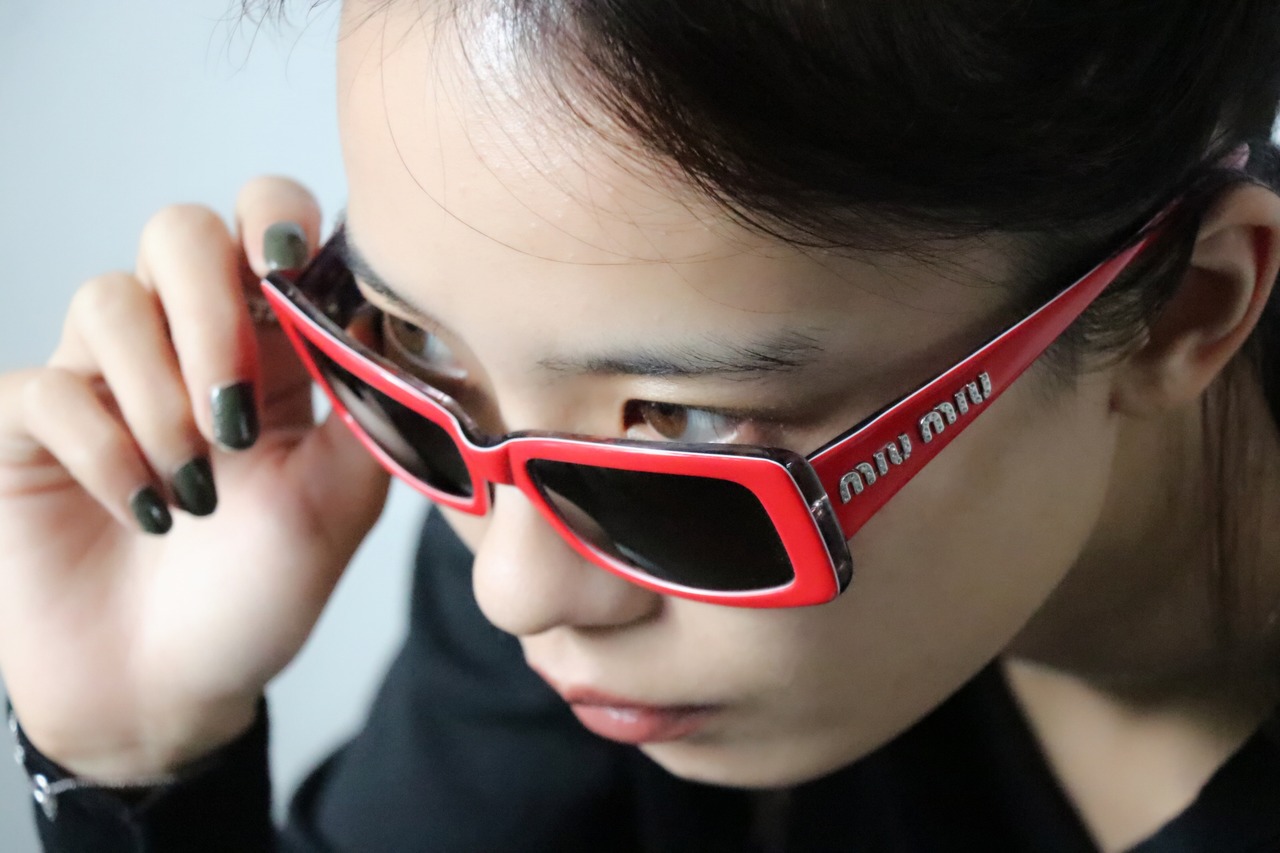 フューチャリスティックなムードを放つこちらのサングラスは、Miu Miuのもの。
