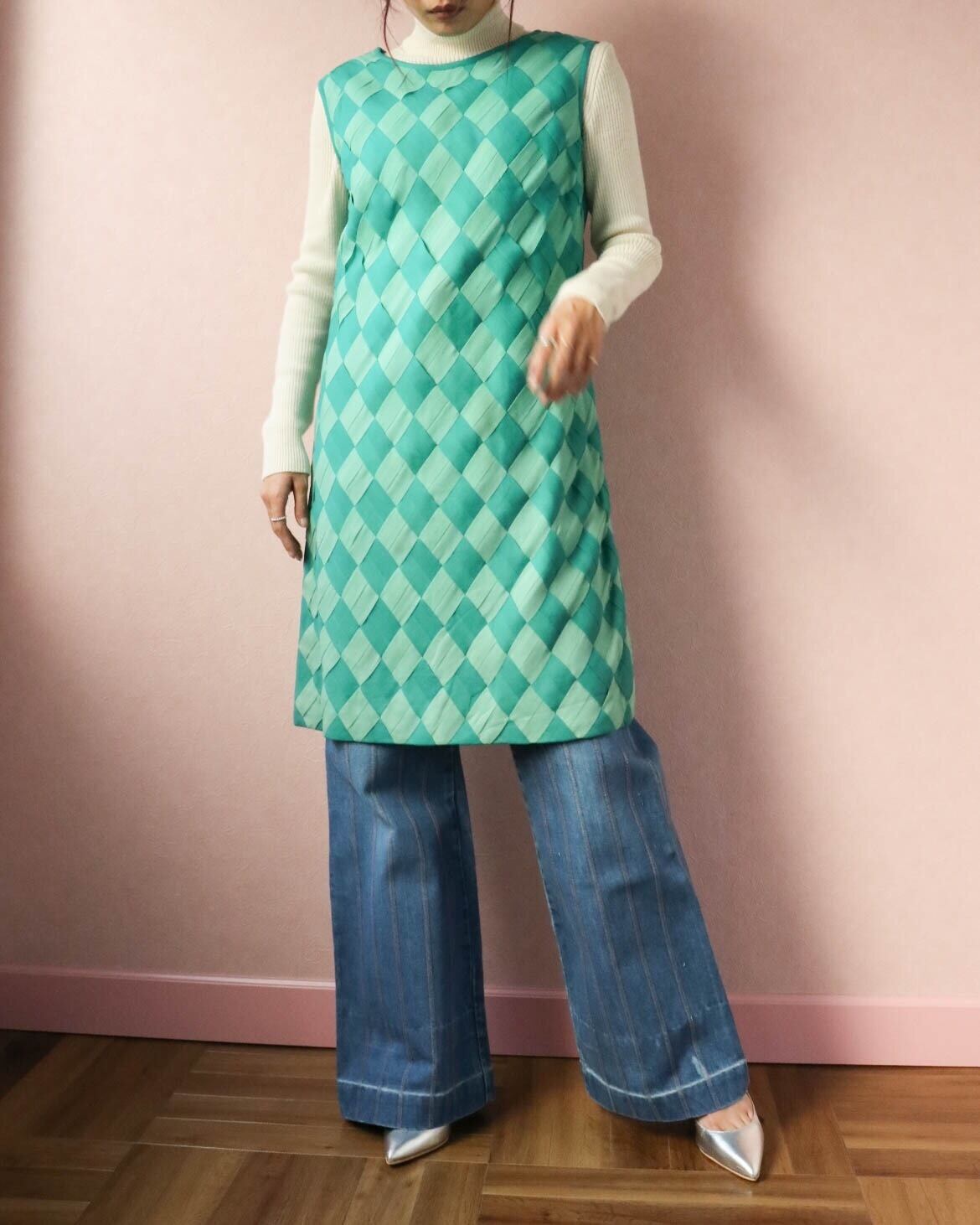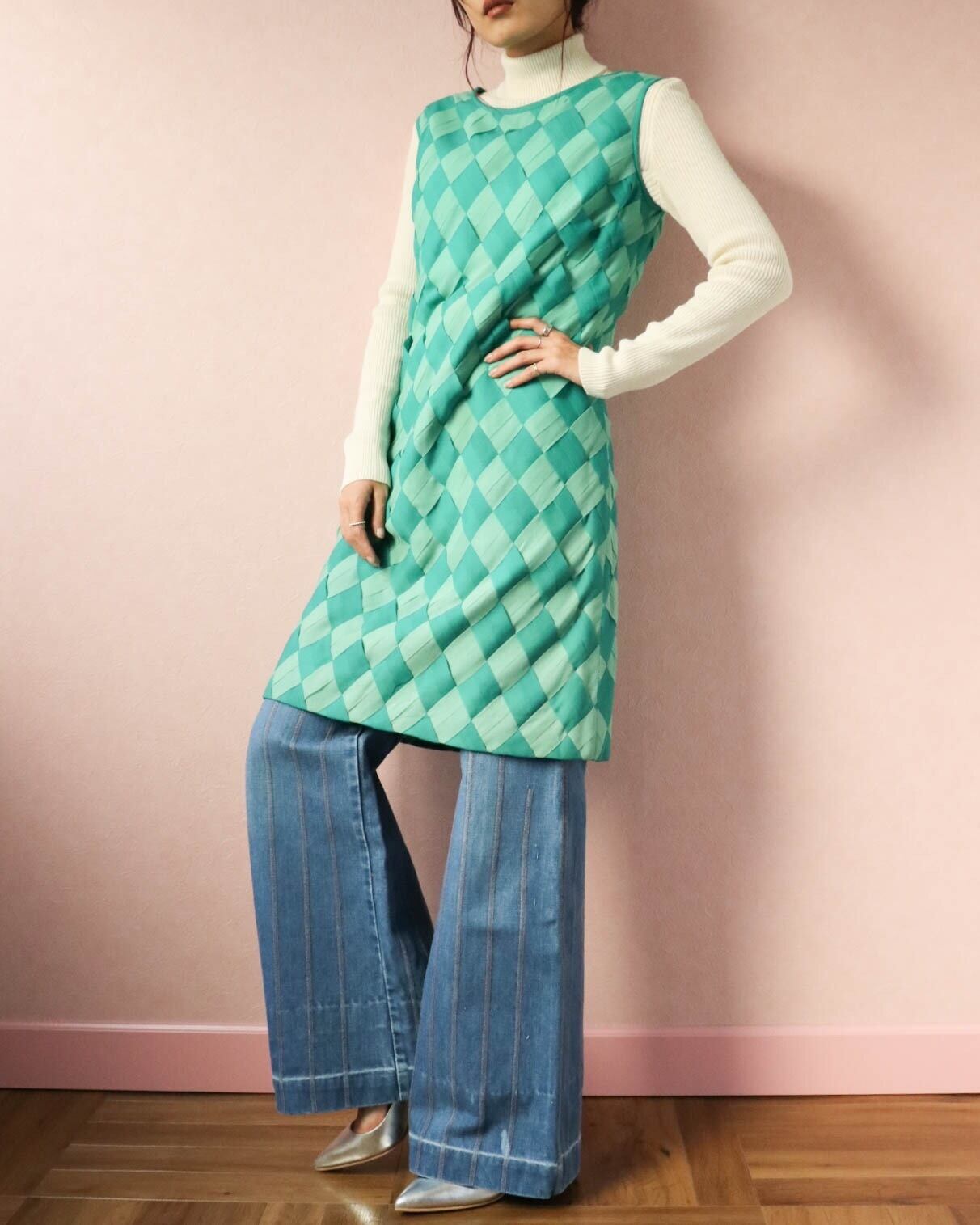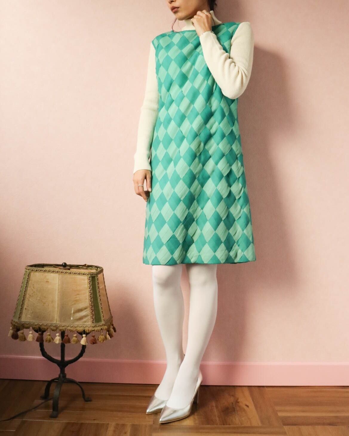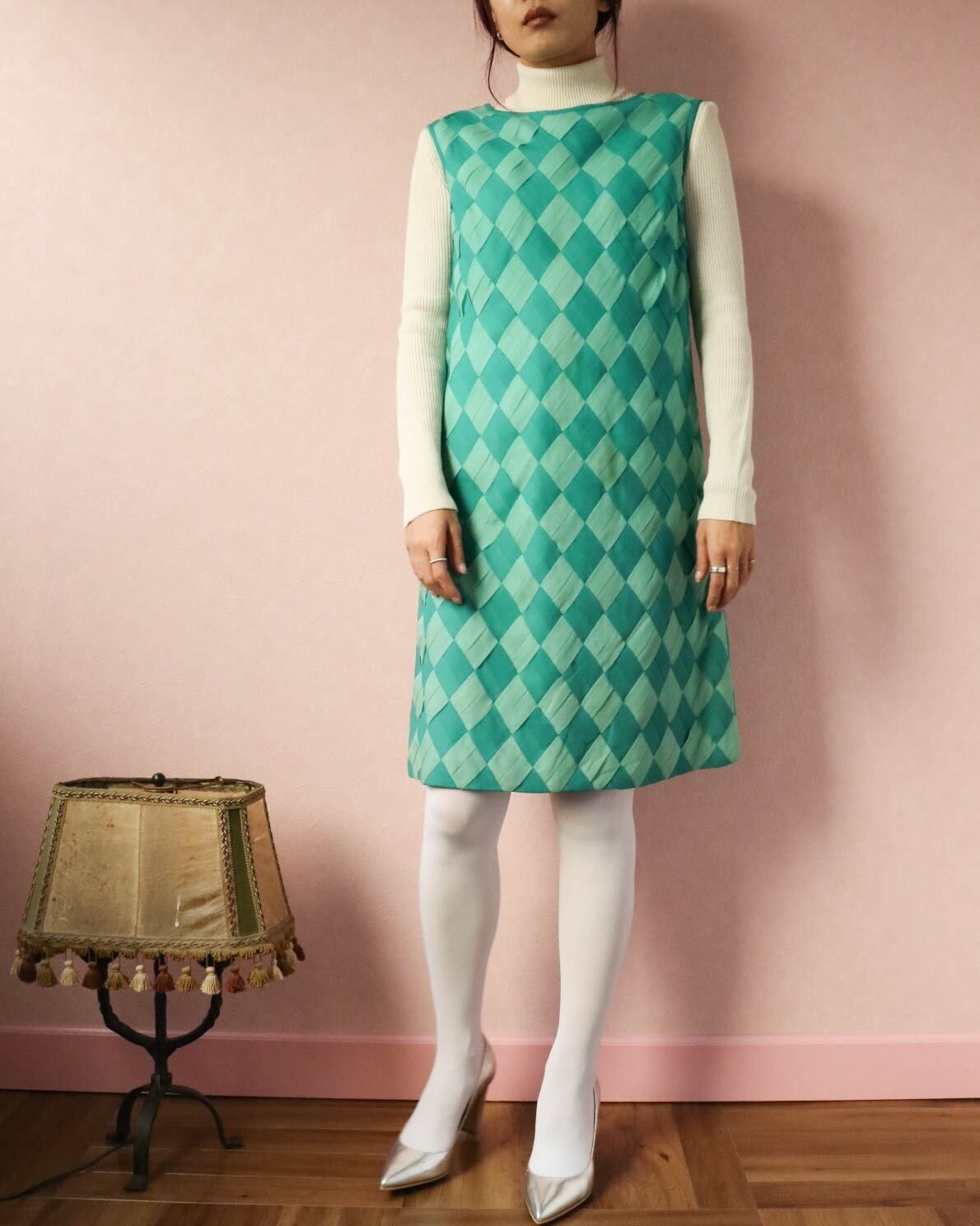 シルクの繊細な生地をアーガイル風に折り重ねたドレスは60年代のvintage!