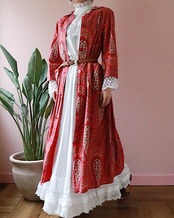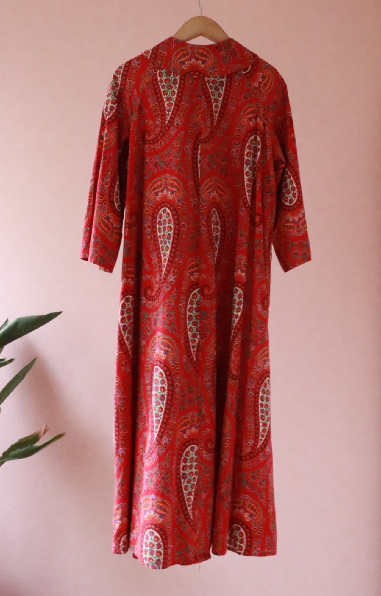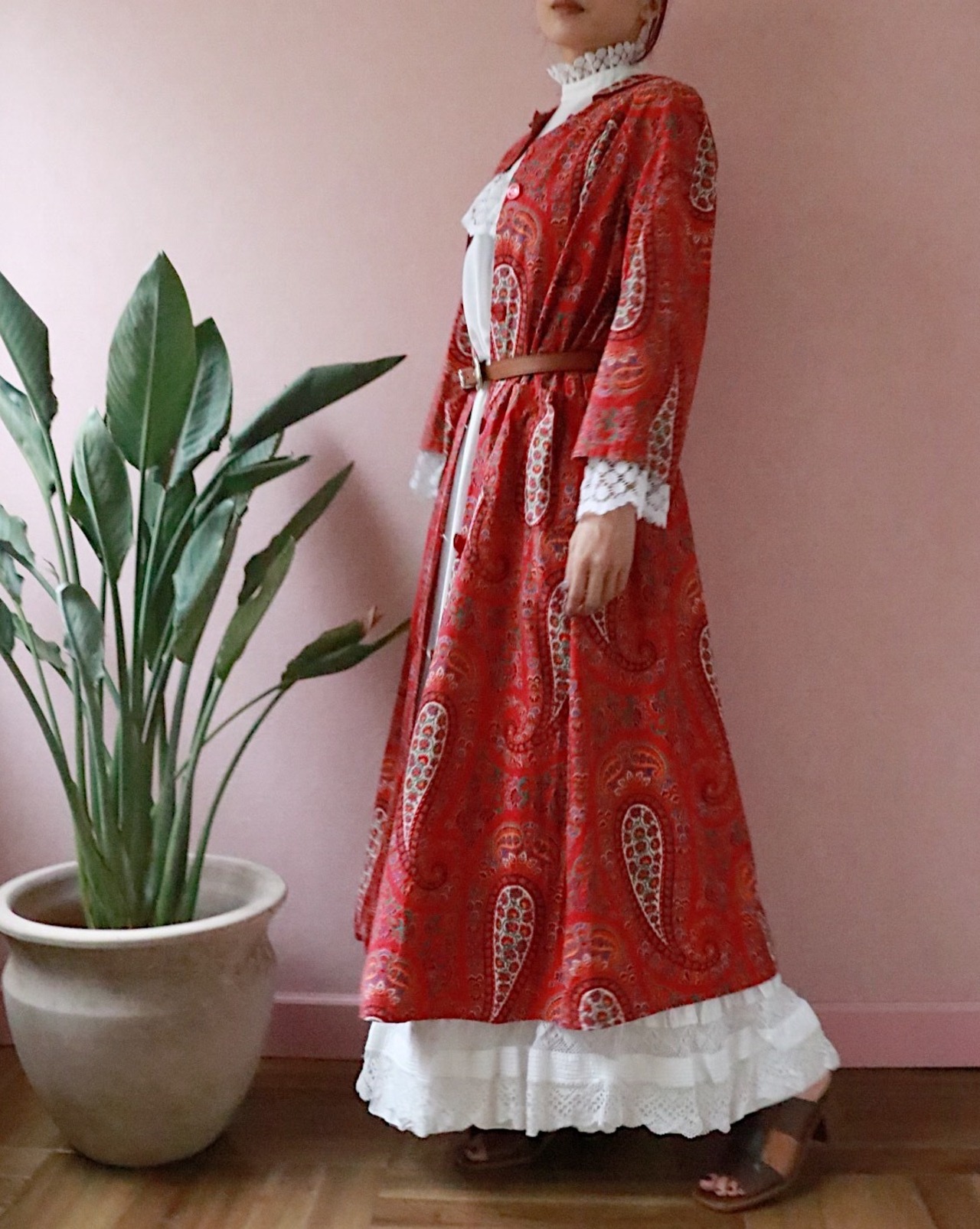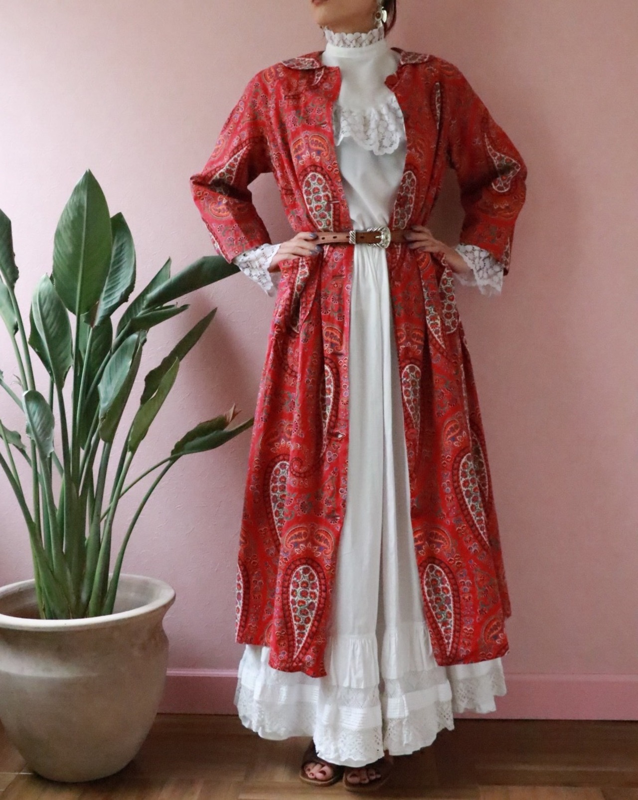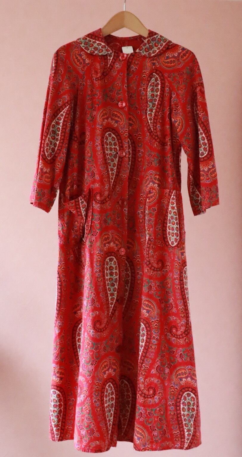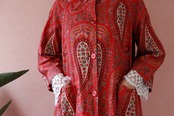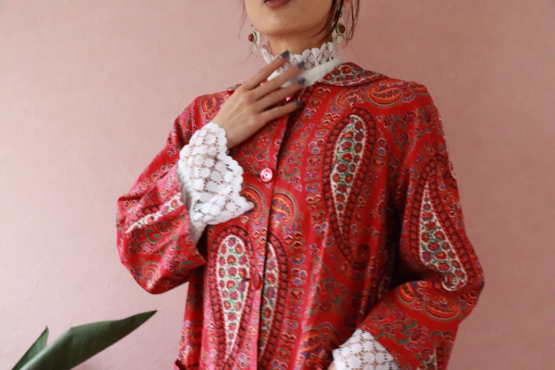 赤いペーズリーのロングコートは70年代のvintage