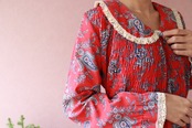 朱赤のガーゼ生地が肌にここちよく一枚でさらりと着たい。