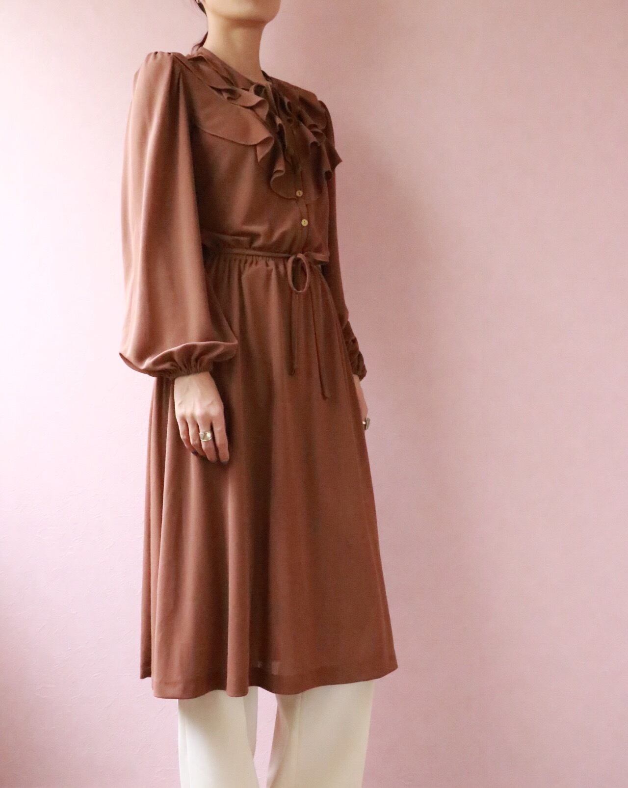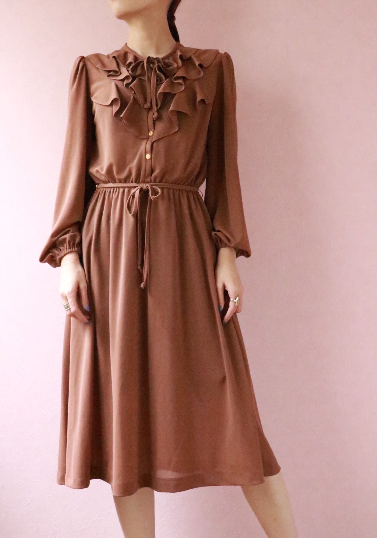 70's brown frill dress