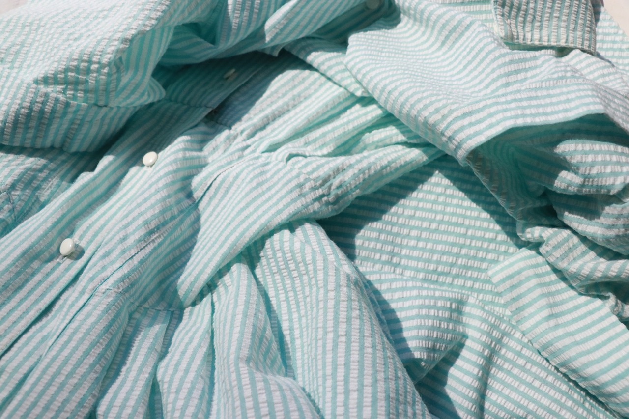 春夏の眩しい陽光が似合う、爽やかなストライプ柄のワンピース。