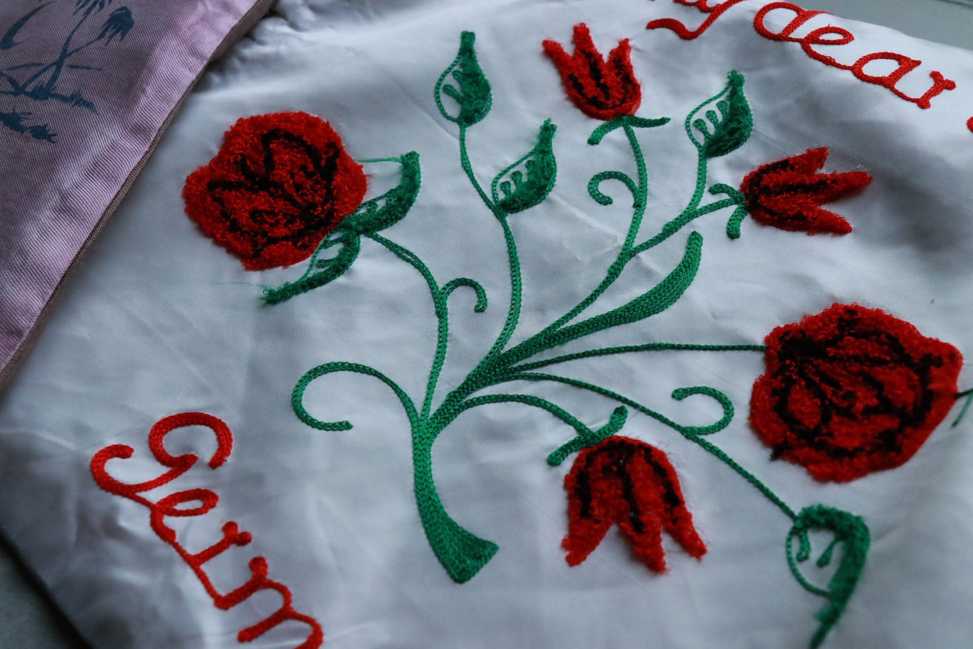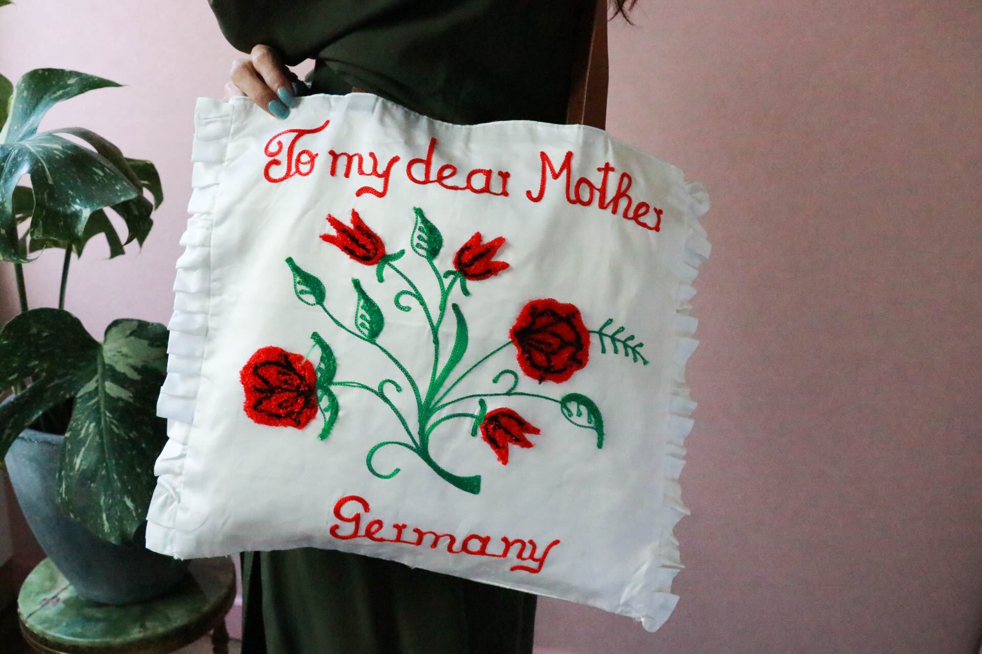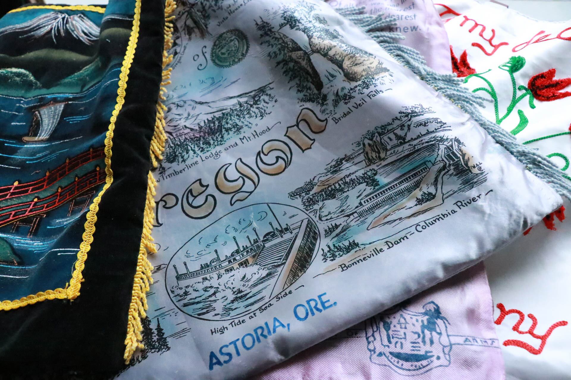 ピローケース又はピローカバーと呼ばれ、当時アメリカやヨーロッパではお土産品の1つとして送り合うのが流行していました。