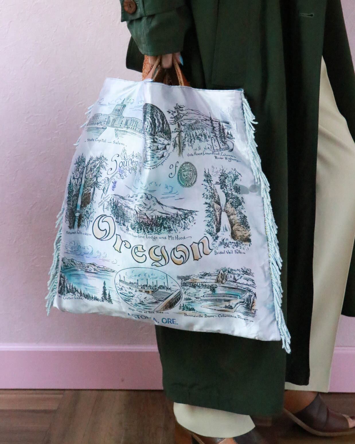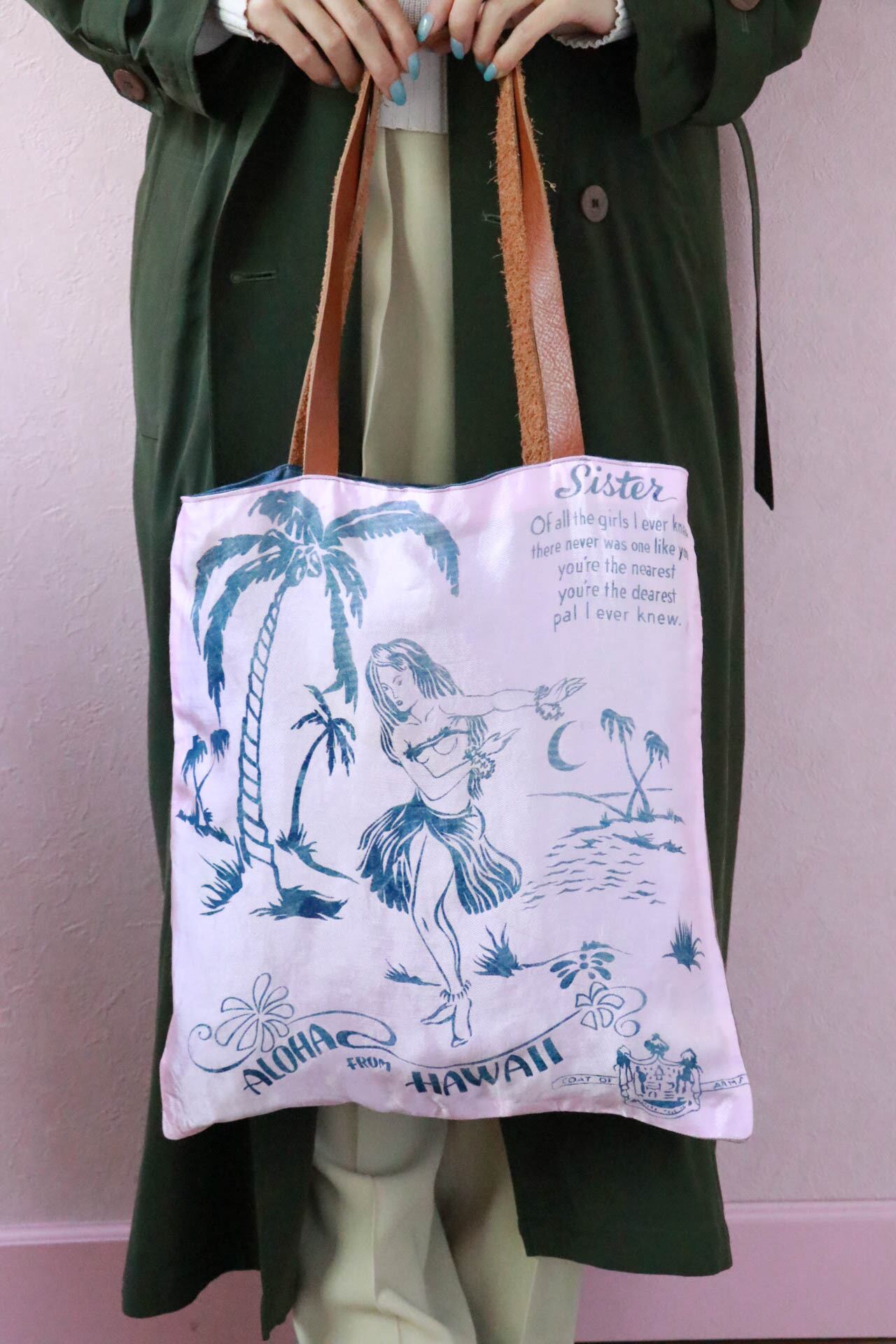 現在でも、コレクターアイテムとして人気なピローカバー。トートバックとして使えるなんてとても贅沢です!