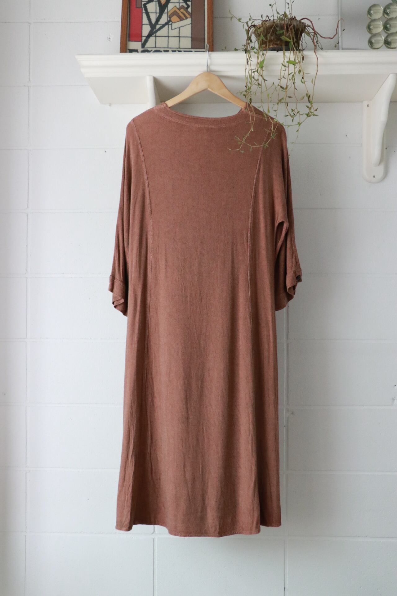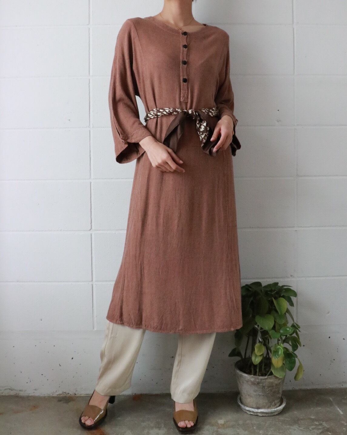 肌触りのいいソフトな生地が特徴のブラウンロングドレス