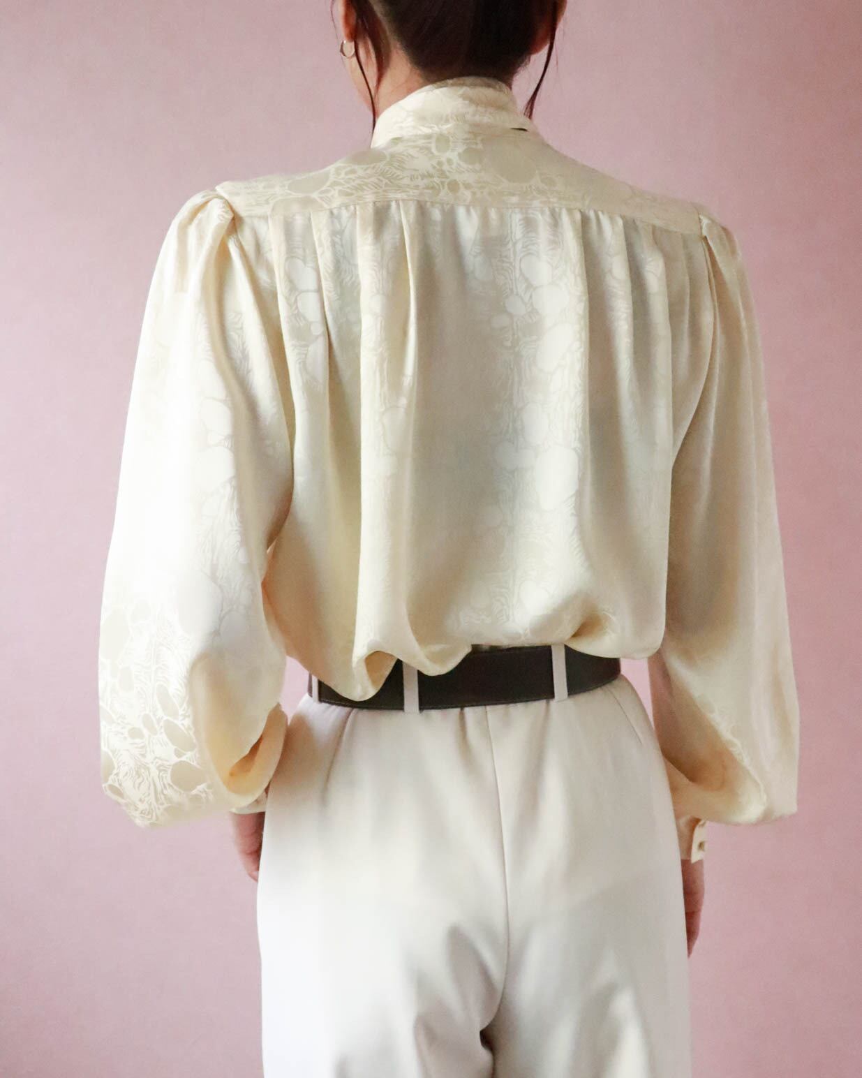 しっとりとしたシルク素材の中にメリハリをつけてくれるカフスとボリューミーなボウタイの存在