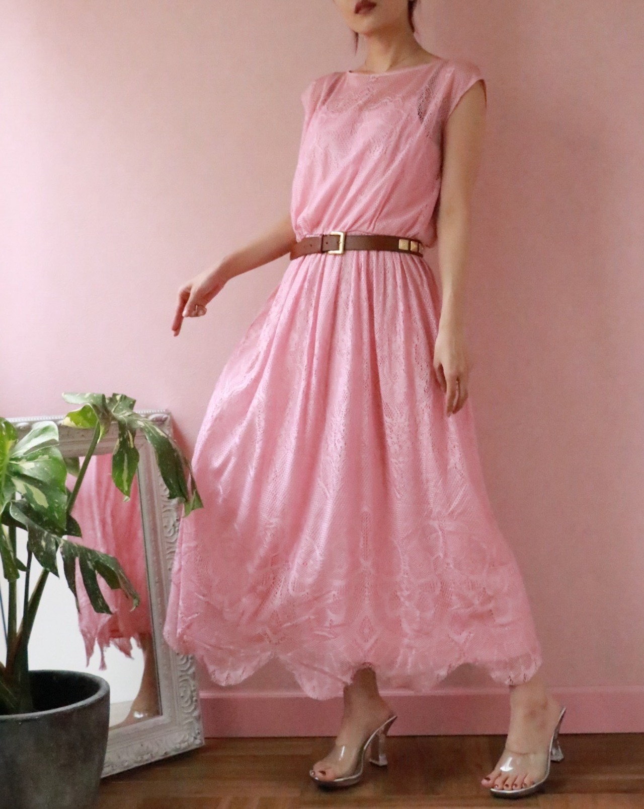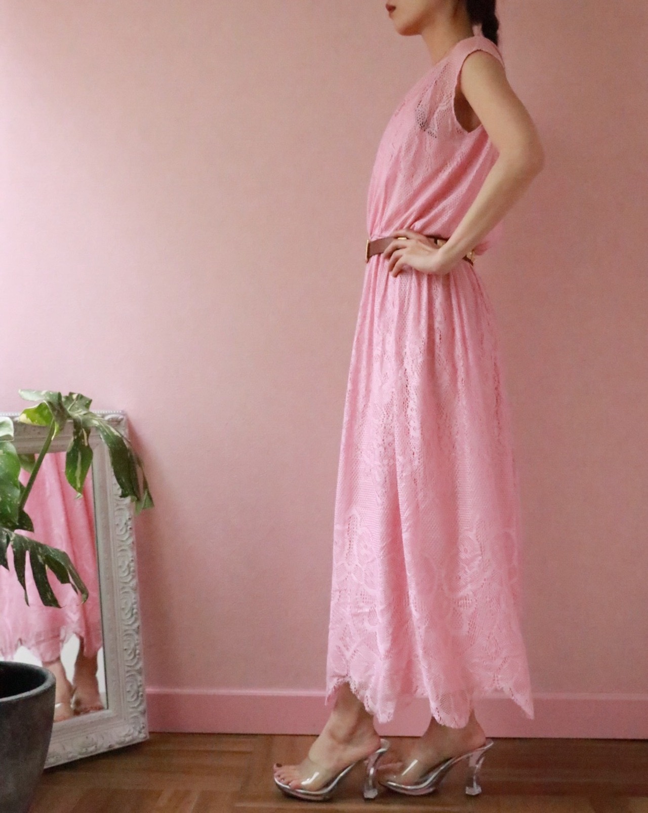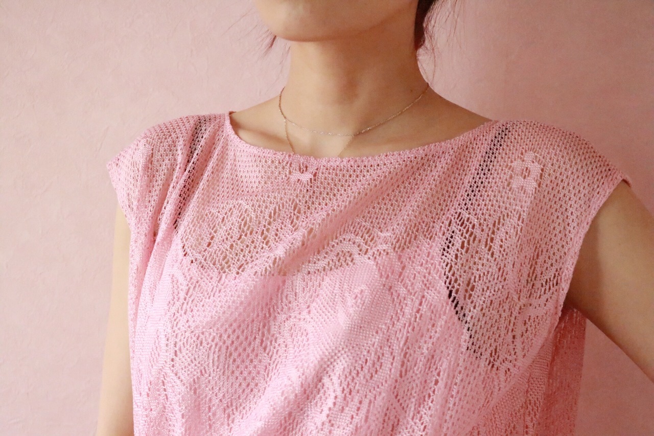 涼しげな細かい目のレースはよく見ると大輪の花模様。
