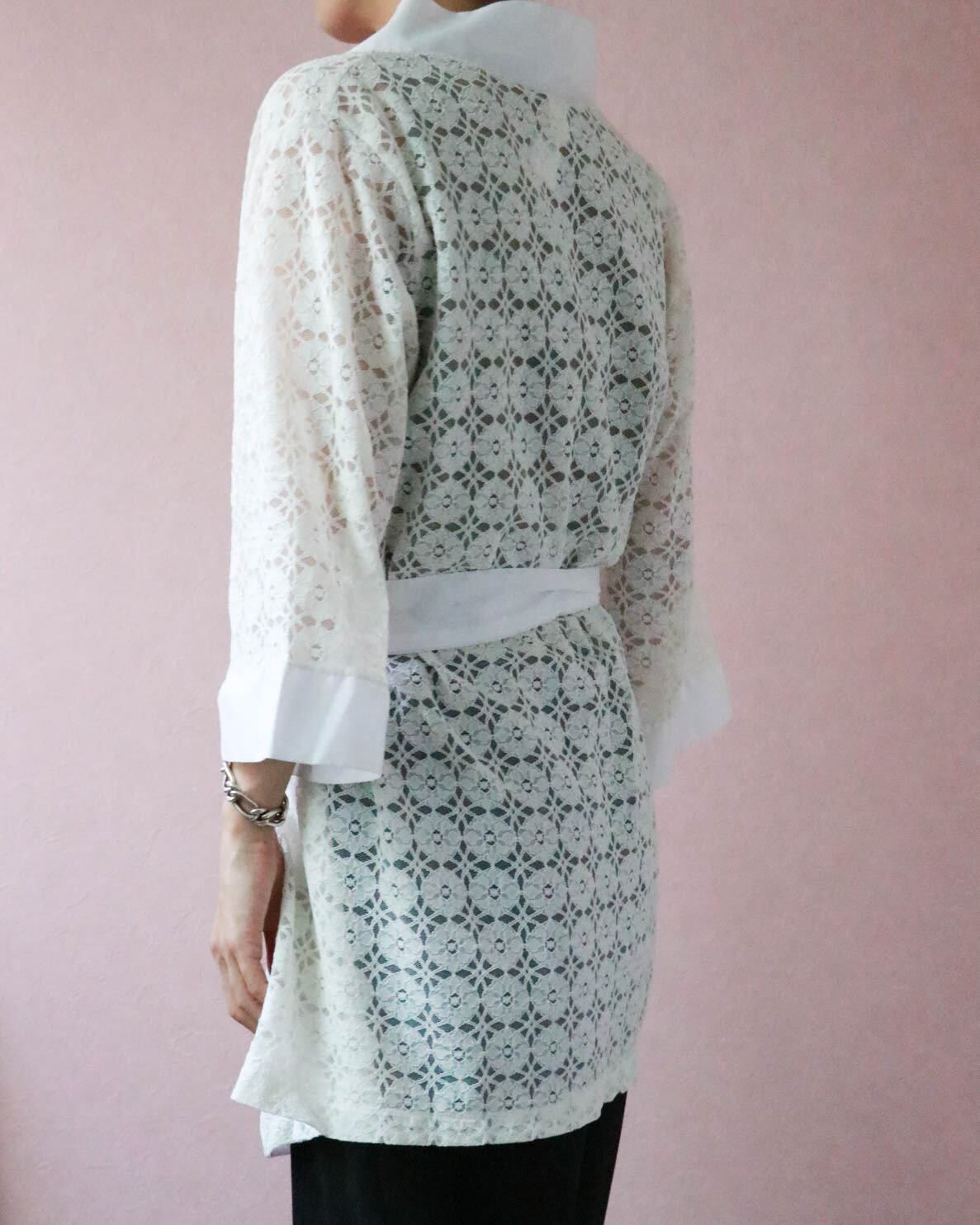 ホワイトカラーと総レースが春夏ムードを涼しげに高めてくれる70年代のガウンです。