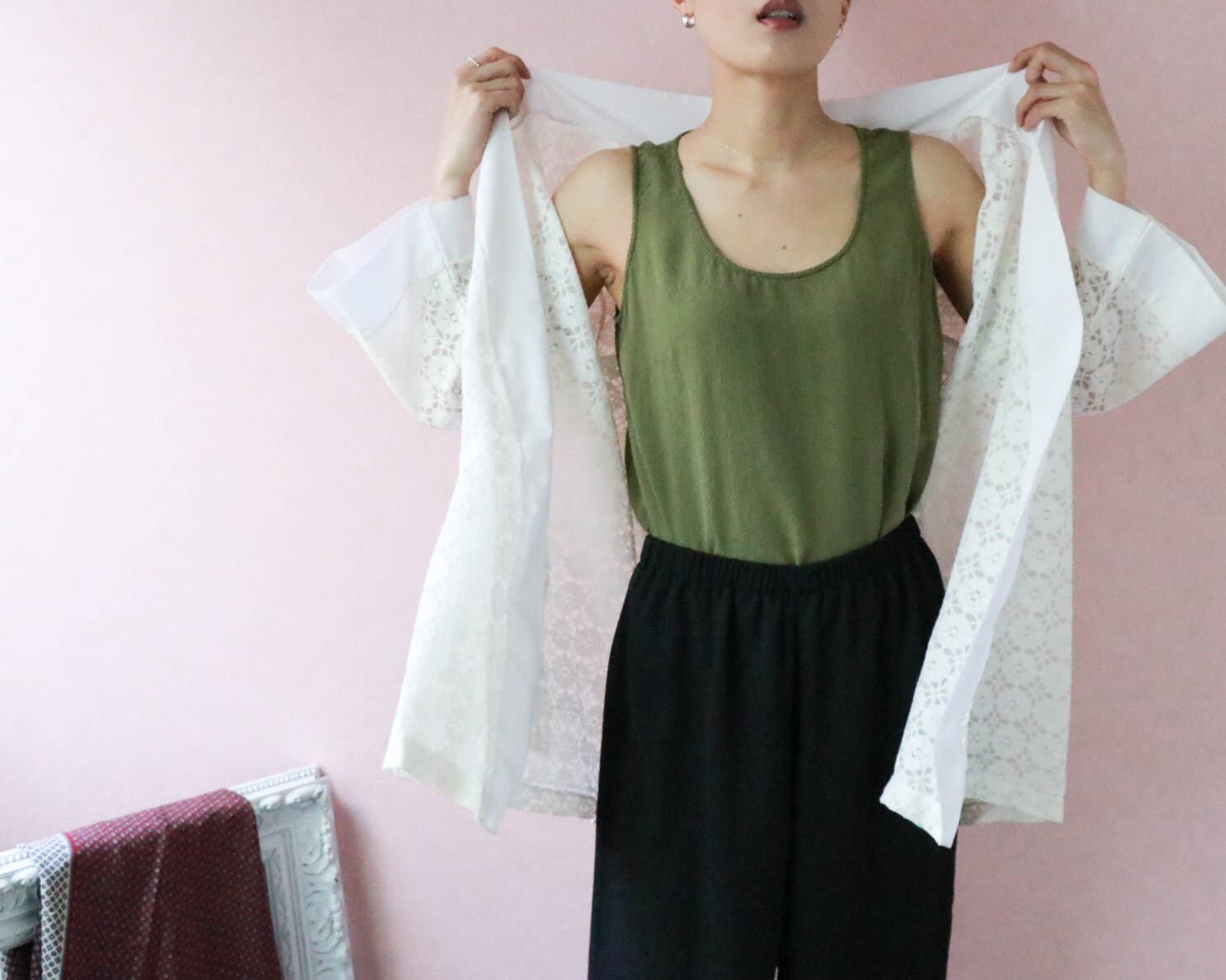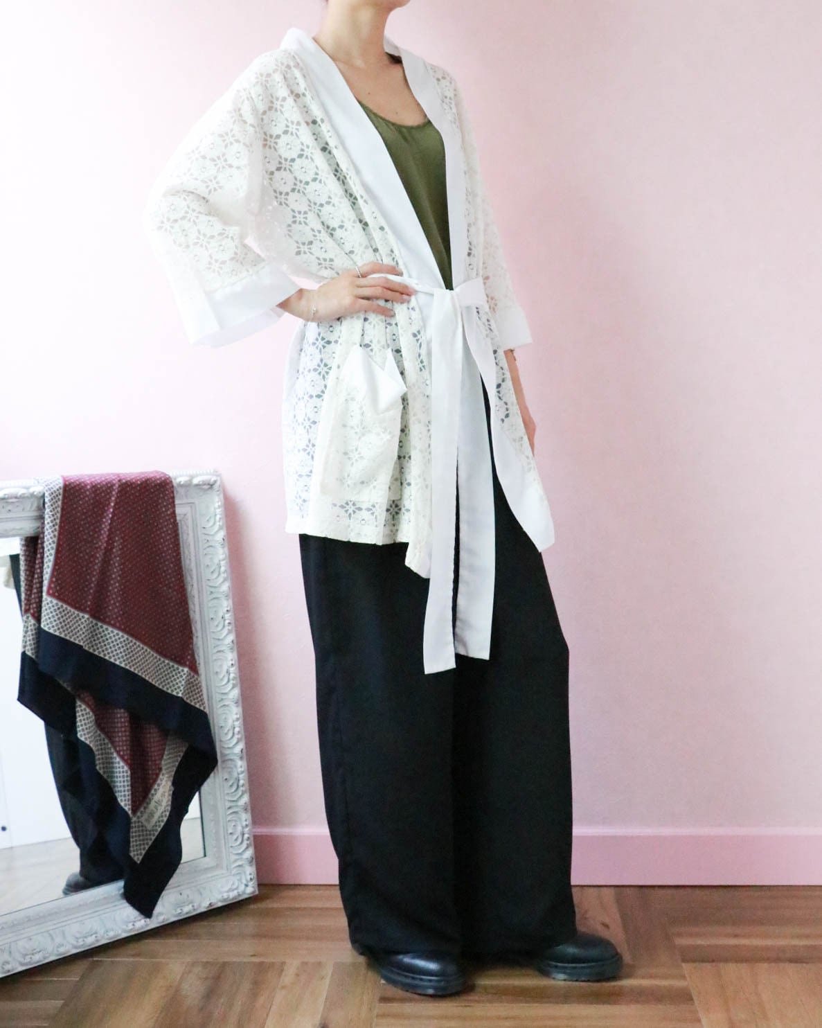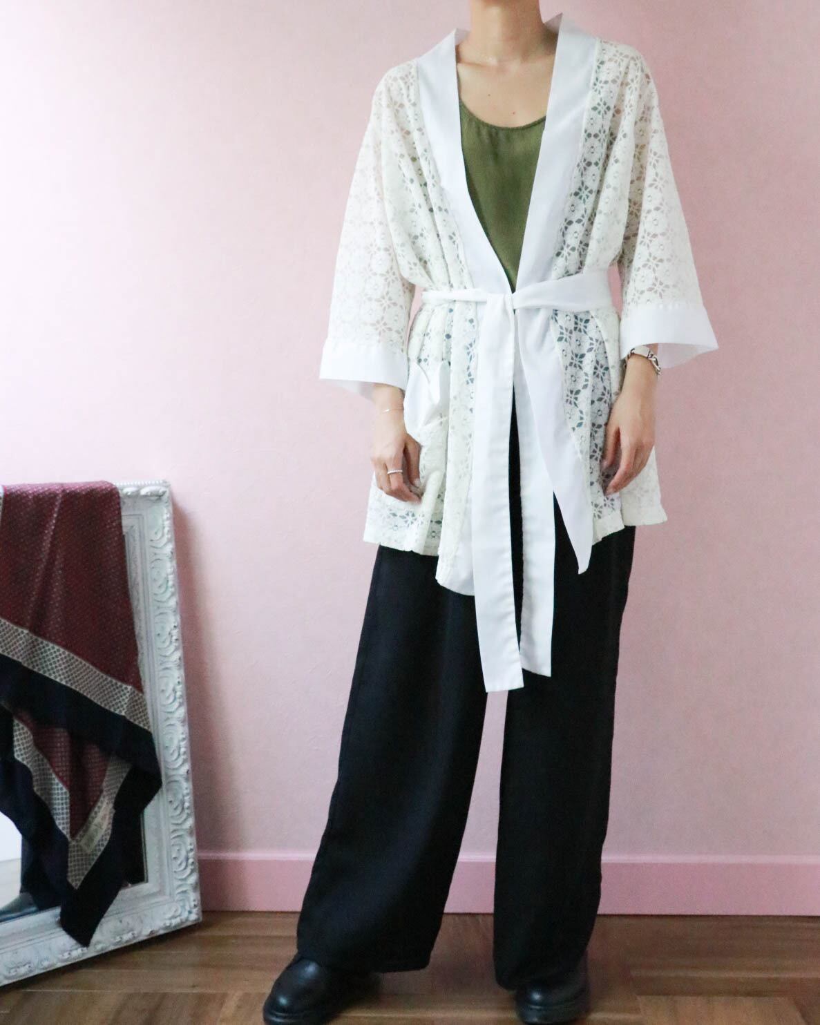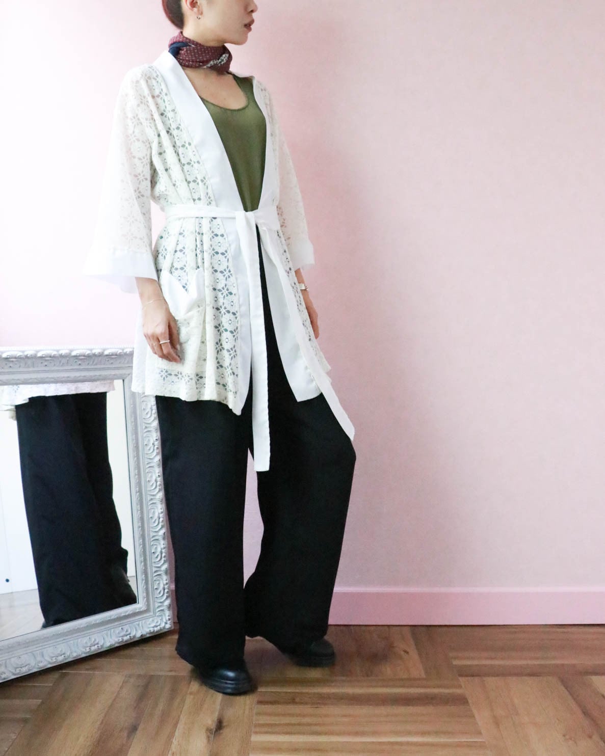 デニムや綺麗目スカートと合わせるのはもちろん、ワンピースと合わせ付属のウエストリボンをし、レイヤード風に着こなすのもオススメです。