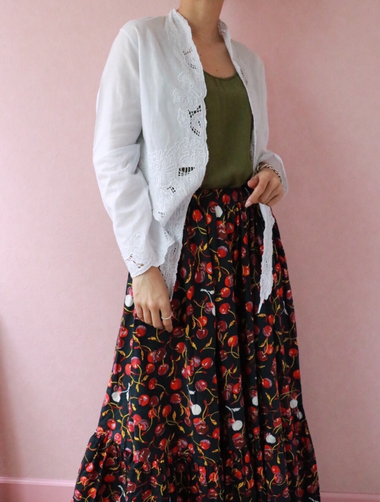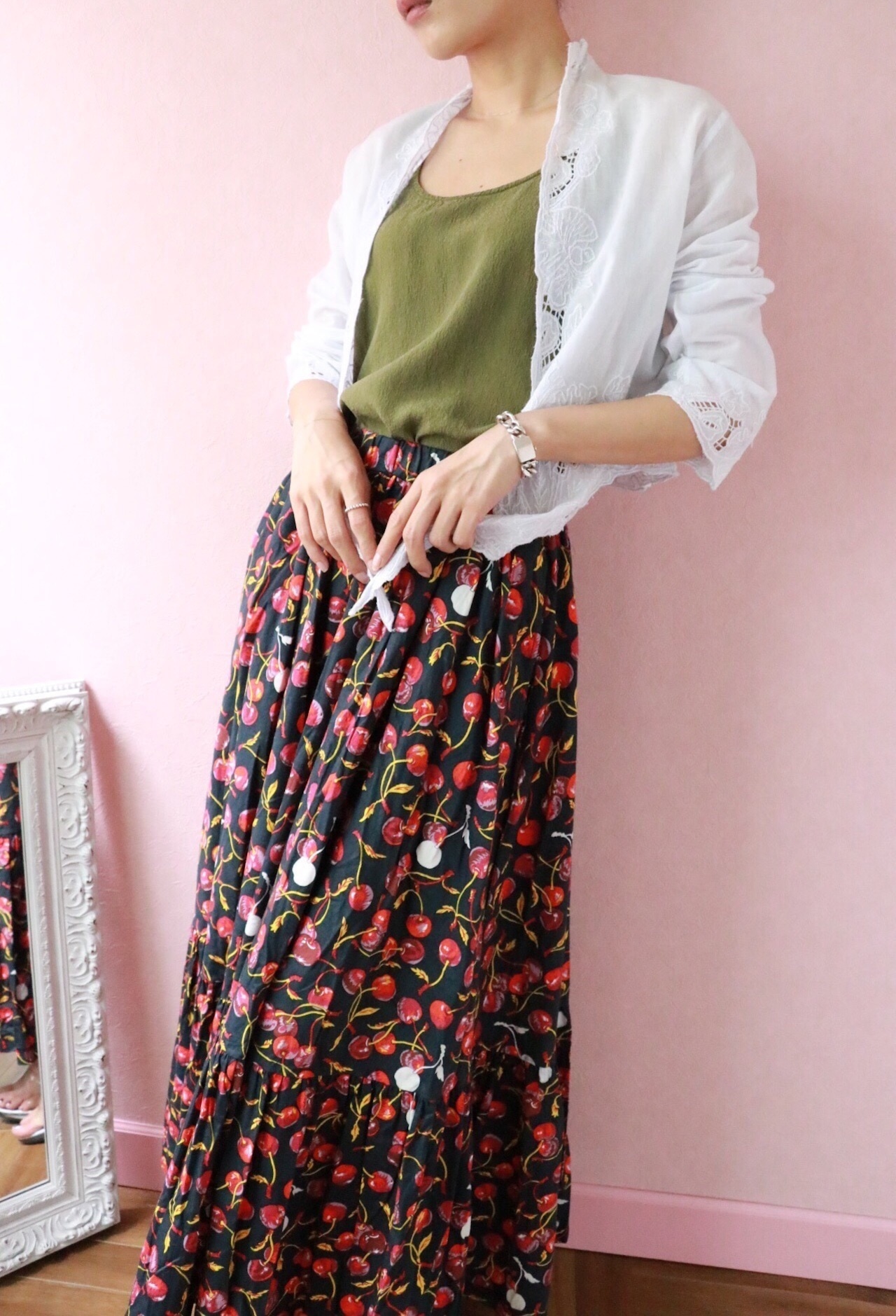 こちらのショート丈のボレロはTシャツやキャミソール、ワンピースの上などにサラッと羽織るだけで普段のコーディネートが違ったものになります。