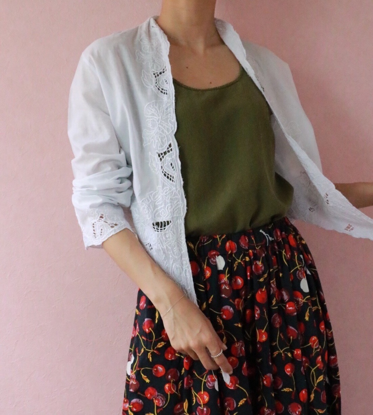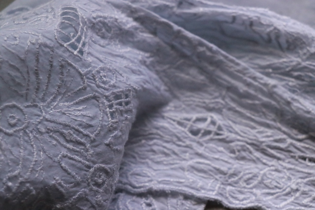 カットワークは布地に刺繍を施し、内側を切り抜いてレース模様を作る手法。