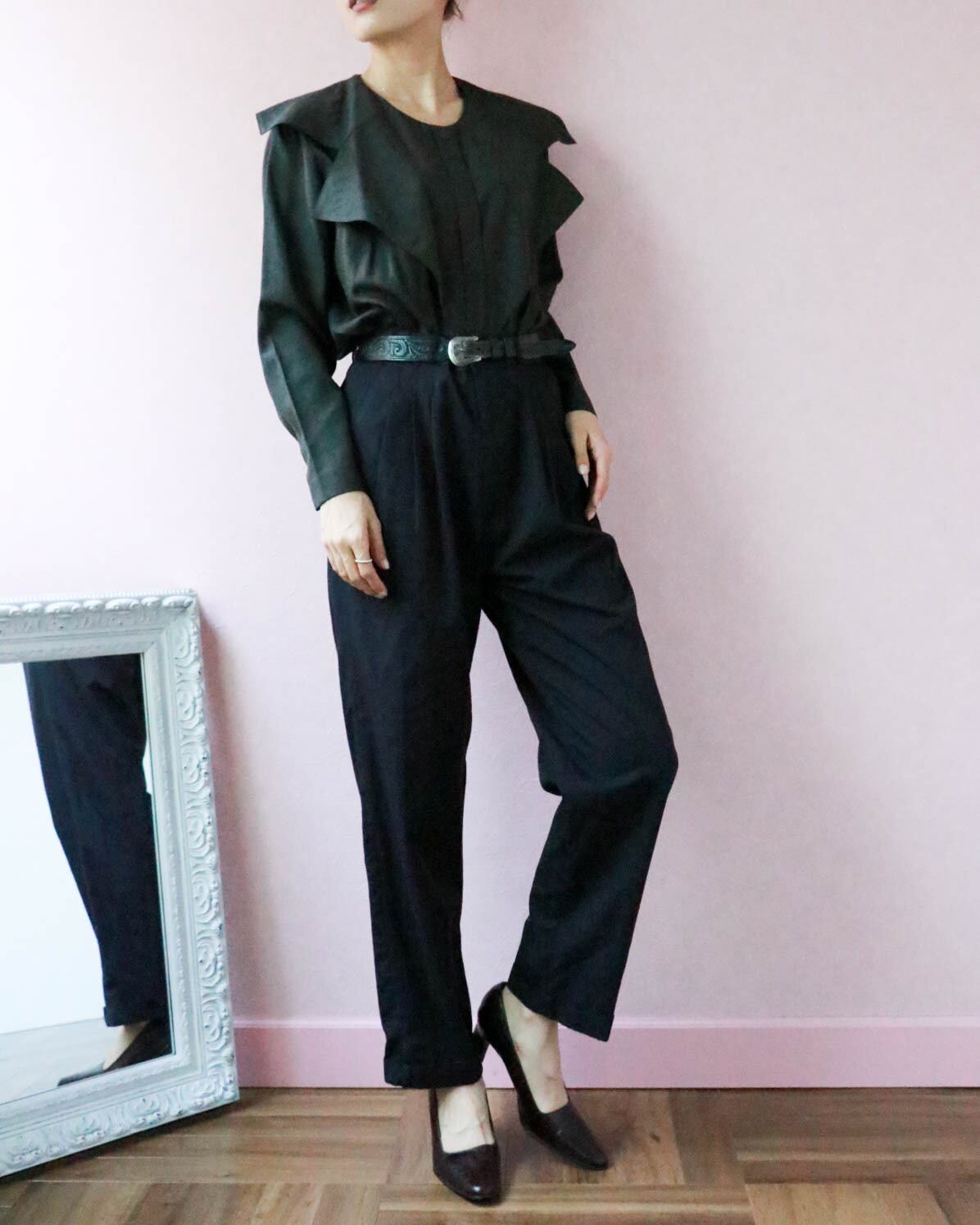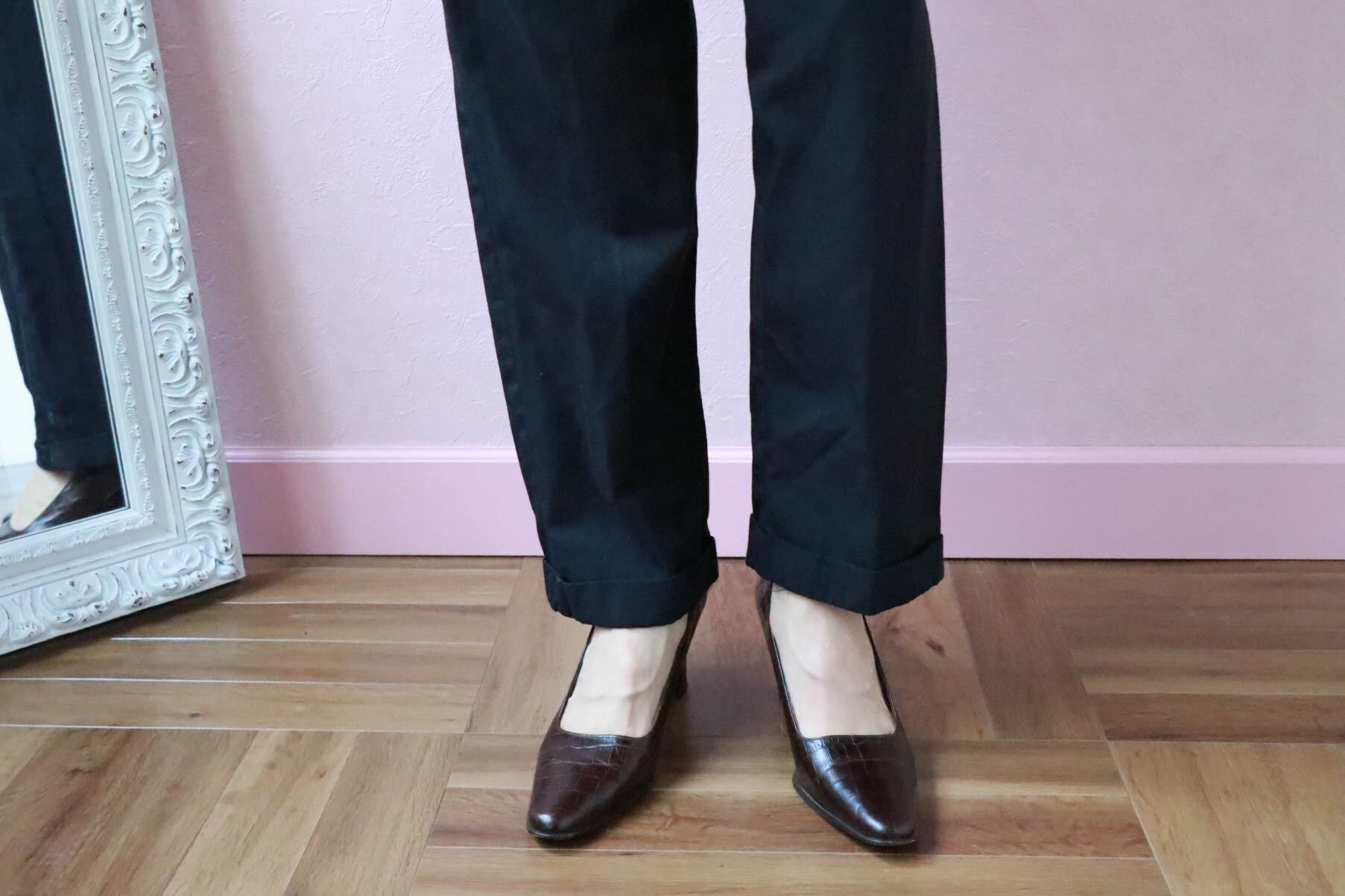 フェミニンなトップスを合わせれば女性らしいスタイルにも。
