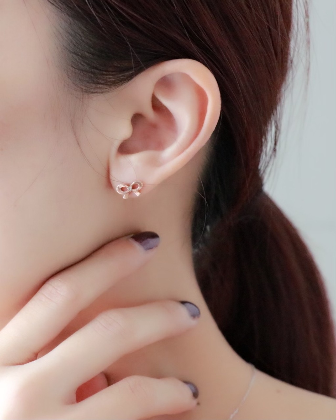 ピンクゴールドカラーでリボンの真ん中に小さなストーンがバランス感のあるデザイン