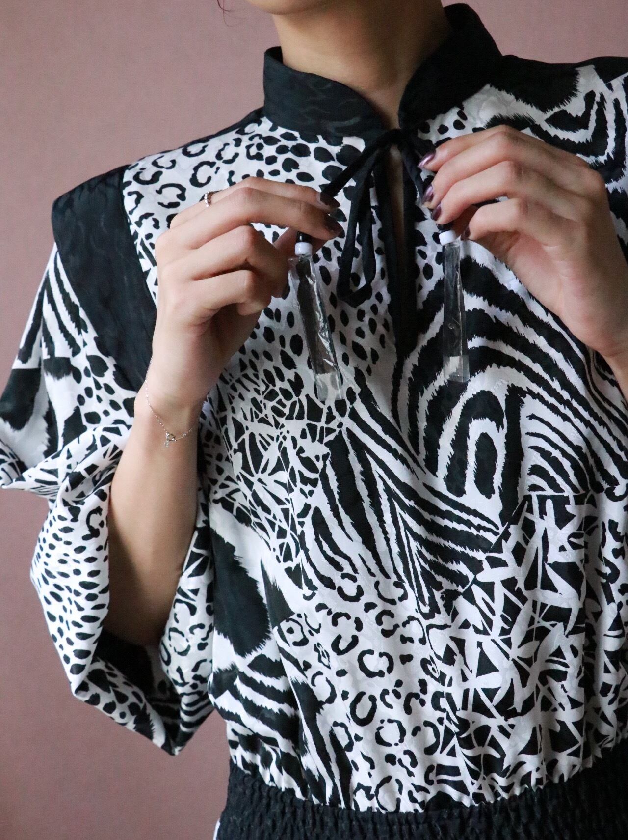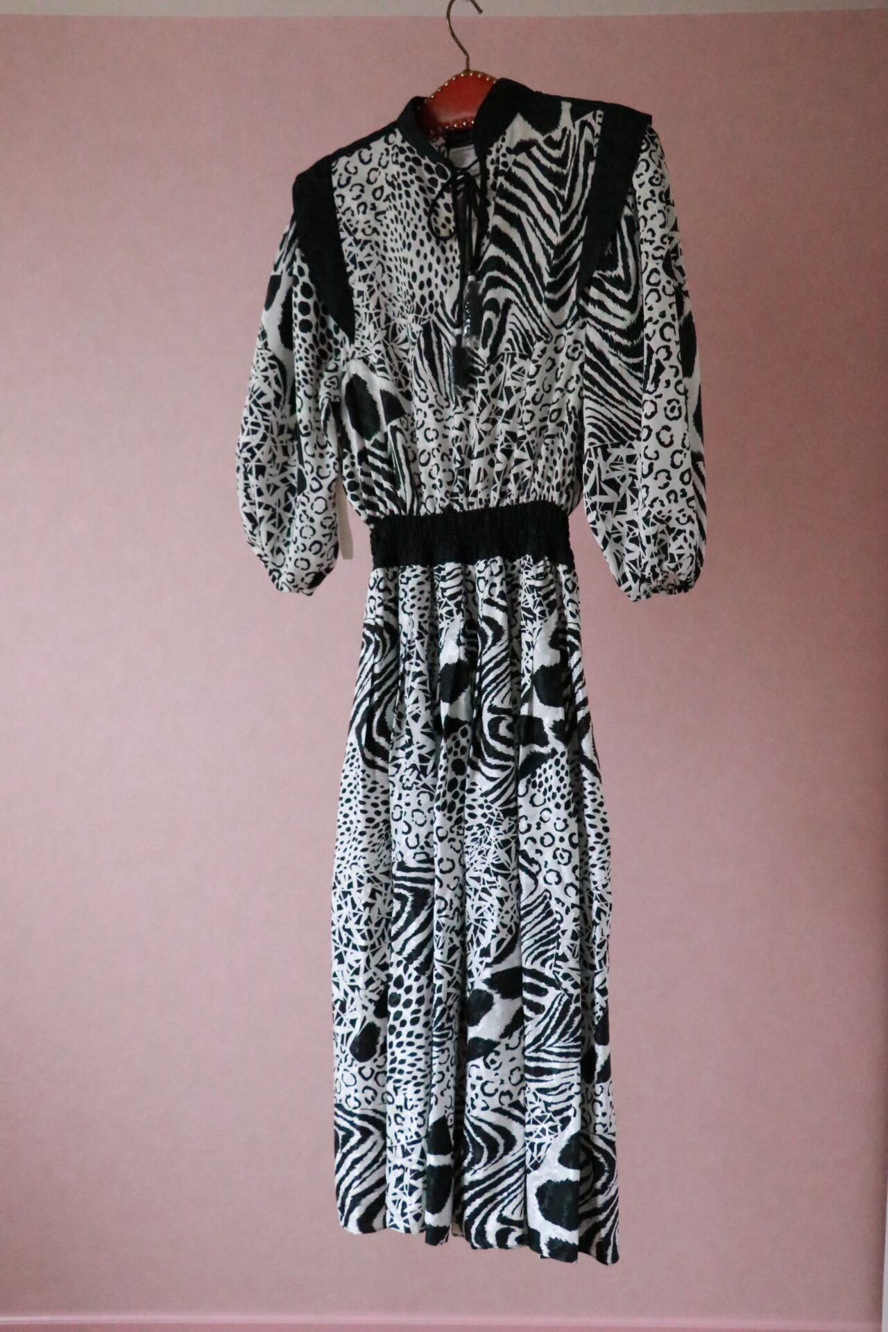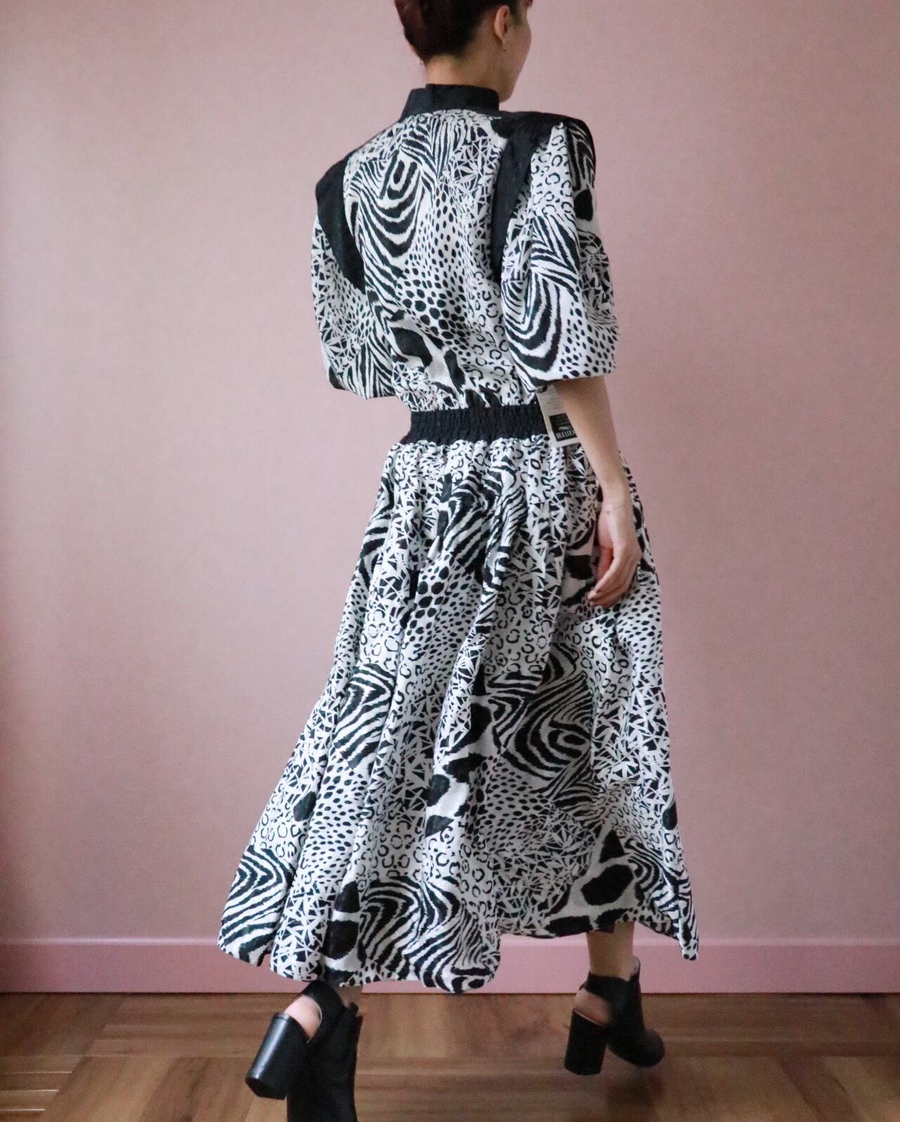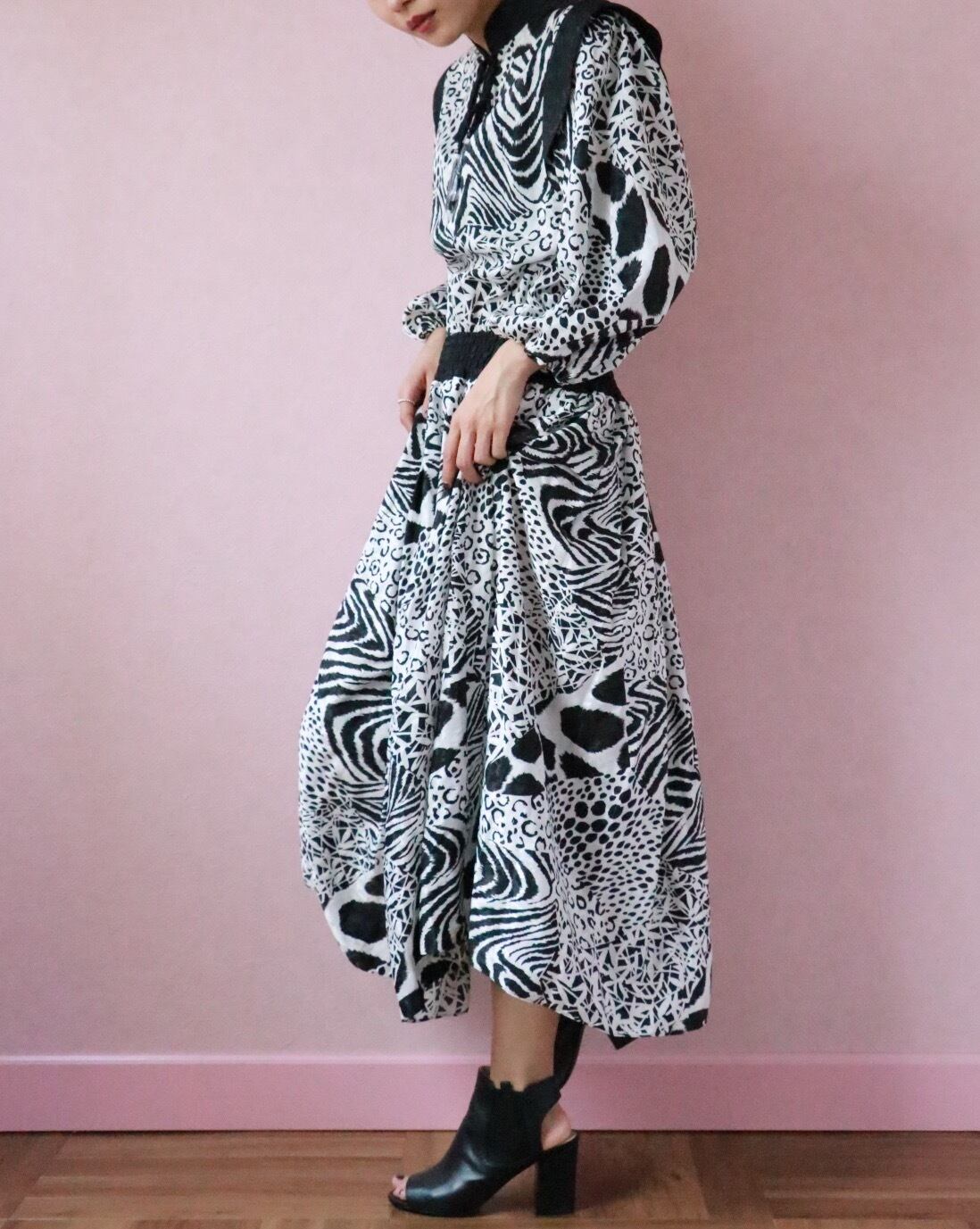 vintageダイアンはカラフルなドレスのイメージが多い中、こちらは珍しい白黒でシックな印象に