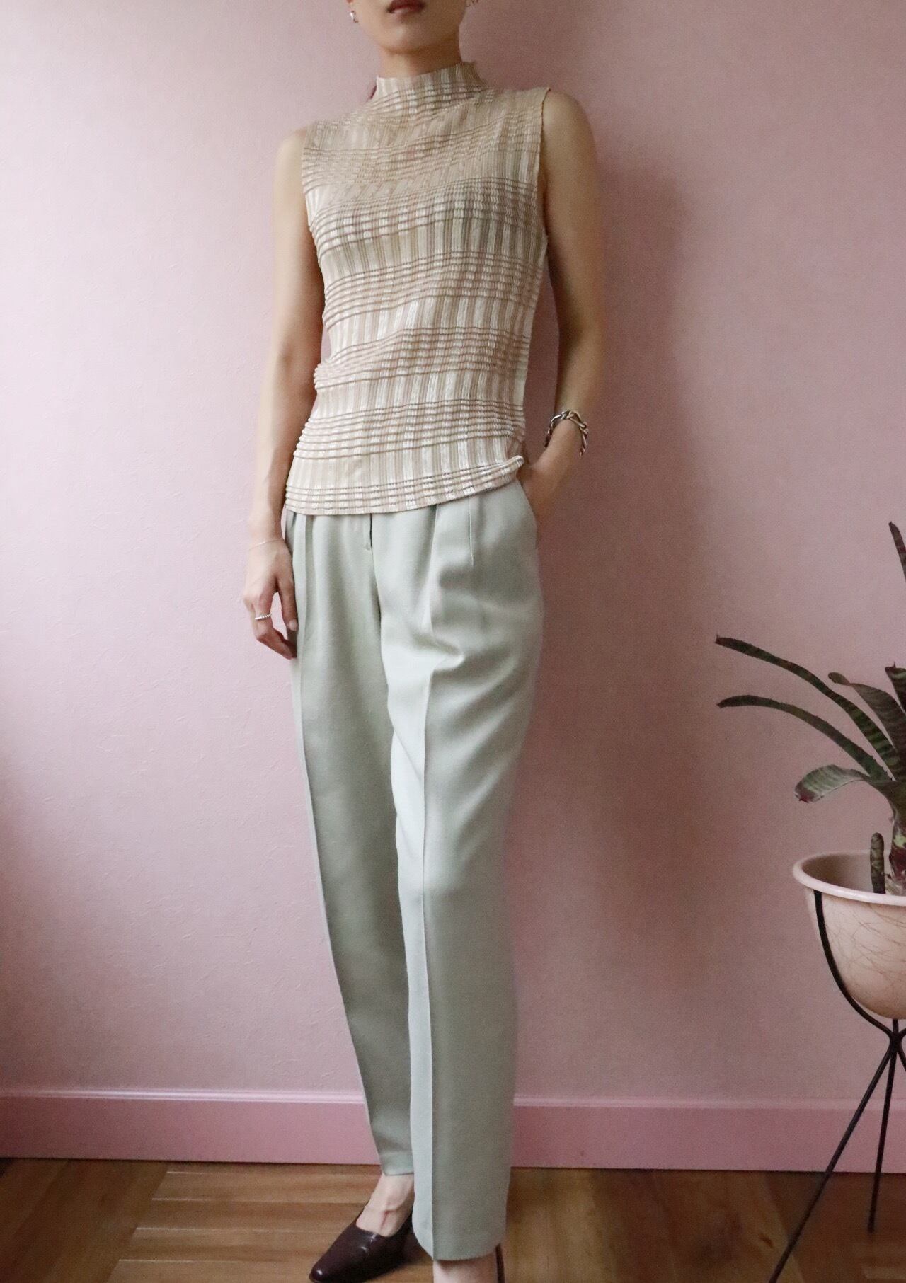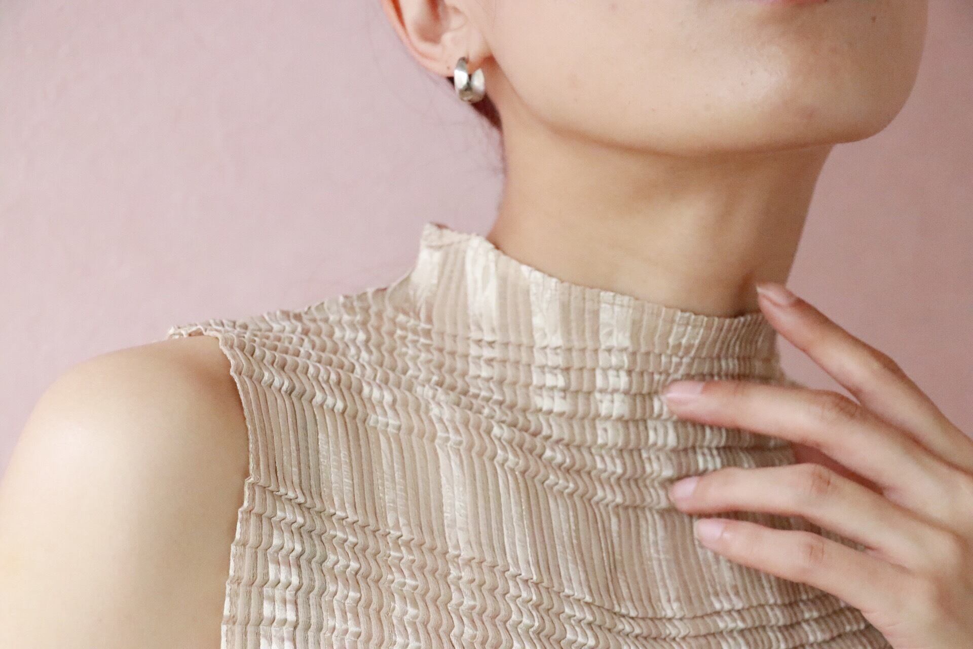 縦ラインの細やかなプリーツが織りなす光沢感が美しく