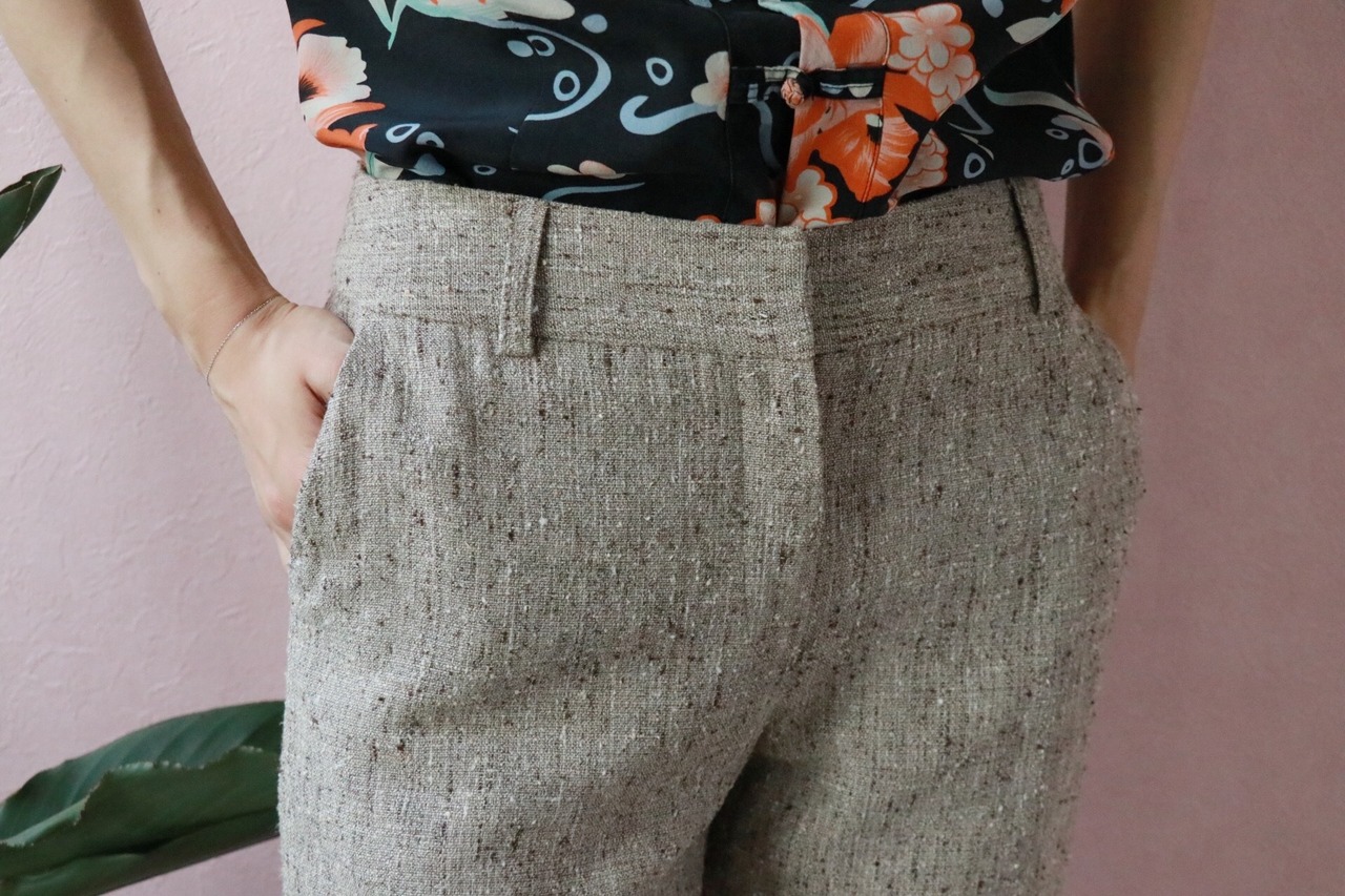 ノータックのエレガントなシルエットが特徴的なサマーパンツが入荷。
